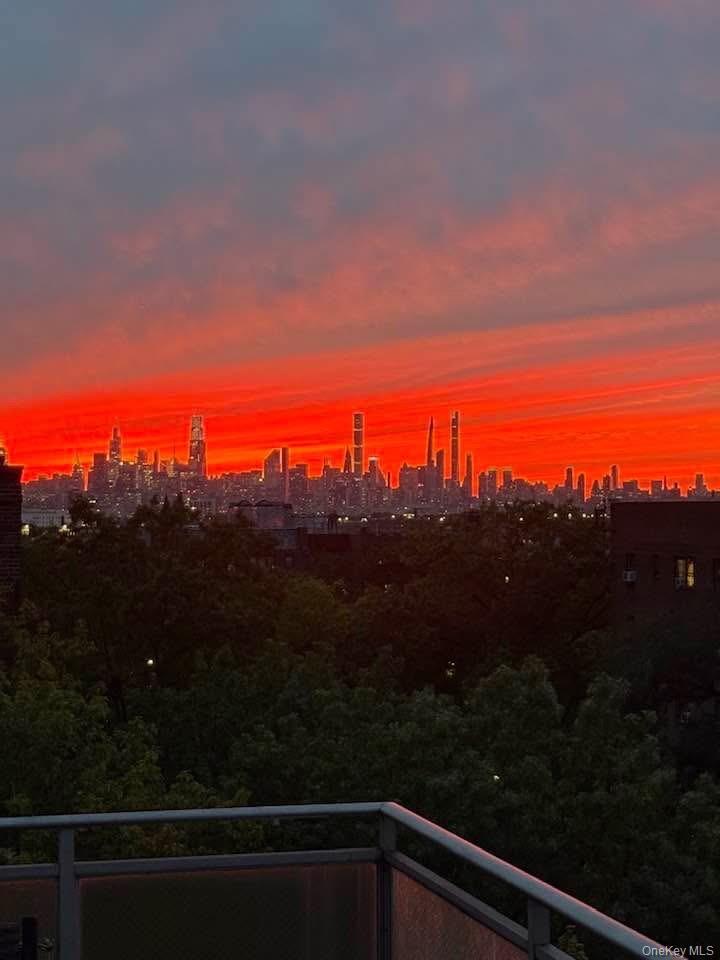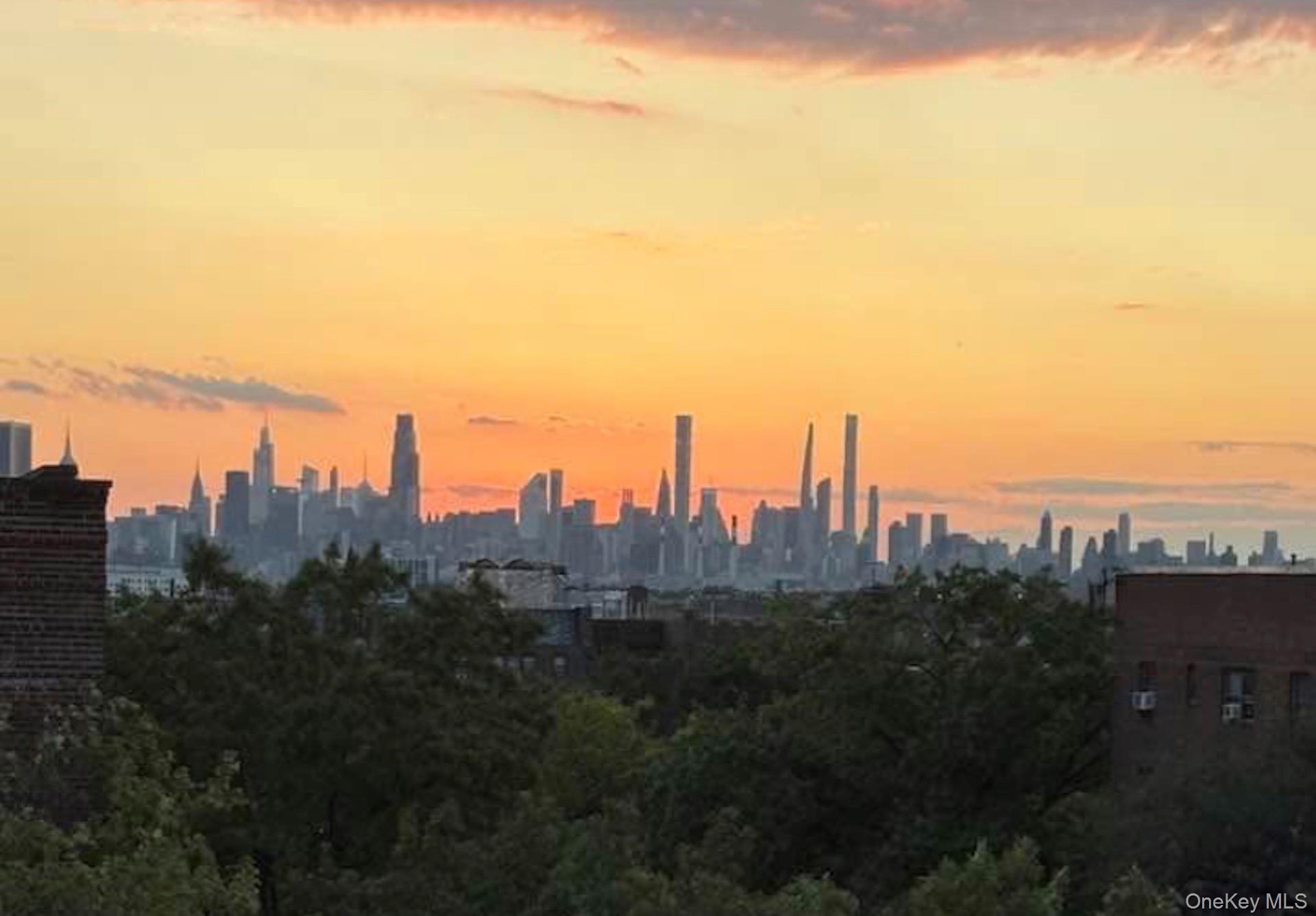 TOP FLOOR CORNER RESIDENCE WITH PRIVATE TERRACE, SKYLINE VIEWS, CENTRAL AIR CONDITIONING AND OPTIONAL GARAGE PARKING. This spectacular 7th floor 2-bedroom, 2-bath corner home at the Terrace View in the Jackson Heights Historic District offers refined living with space, style, and light. From the gracious entry hall, you are welcomed into a dramatic sunken living room with expansive northwestern exposures and unobstructed Manhattan skyline views from your private terrace. Enjoy glowing sunsets and sweeping city vistas — an extraordinary setting for both everyday living and entertaining. The beautifully renovated, windowed galley kitchen has been designed with both function and elegance in mind complemented by Brazilian granite countertops and stainless steel appliances. Just beyond the kitchen is a wall of custom built cabinetry housing an espresso bar, wine fridge, and microwave oven, all premium appliances by Miele. The adjoining formal dining area creates a seamless flow for hosting. Generously proportioned bedrooms provide comfort and privacy, each featuring abundant closet space with the primary bedroom having a walk-in closet with custom sliding doors and ensuite bathroom. Refinished hardwood floors, central A/C, and exposed metal-framed doors enhance the home’s sophisticated design. The Terrace View is a full-service, pet-friendly cooperative offering a 24-hour doorman, fitness center, private storage, and on-site 24/7 reserved parking (available with fee). Ideally situated in the Historic District, you’ll enjoy the charm of tree-lined streets alongside unmatched convenience to dining, shopping, and transportation. With its combination of stunning skyline views, timeless design, and premier amenities, this home is truly one of a kind. Additional Features: * Live-in Super * Security Cameras * Storage Room, Bicycle Room * Verizon Fios & Spectrum Available * Two Laundry Rooms * Nearby: Shopping; Dining; Farmer’s Market; Travers Park; E, F, M, R & 7 Trains