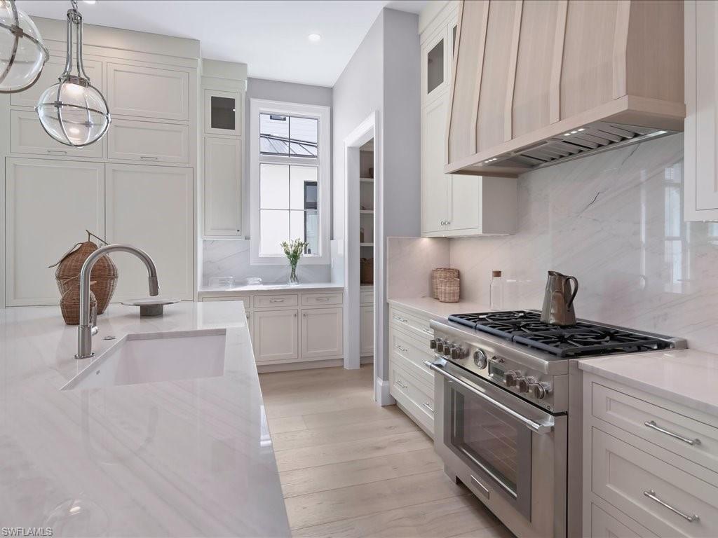 Experience refined coastal living at 1179 Broad Ave N, a brand-new custom home in Naples’ prestigious 34102 zip code. This 5-bedroom, 5-bath residence spans over 4, 600 square feet and blends timeless elegance with modern sophistication. Built with solid concrete block construction, the home offers enduring strength, security, and peace of mind. Each bedroom enjoys a private en-suite, ensuring comfort and privacy for family and guests, while a first-floor office provides a dedicated retreat for work or study. At the heart of the home, the chef’s kitchen shines with striking quartzite countertops, premium Thermador appliances, and a spacious walk-in pantry. Wide-plank wood flooring flows throughout the open-concept layout, seamlessly connecting kitchen, dining, and living spaces—ideal for both everyday living and grand entertaining. Smart lighting and integrated surround sound elevate the atmosphere, setting the stage for gatherings of every scale. The serene primary suite features a spa-inspired bath with dual vanities, a soaking tub, and bespoke finishes. Upstairs, a versatile second living room offers an additional gathering space. Outdoors, a covered patio with roll-down screens overlooks the sparkling pool, creating a private oasis for year-round enjoyment. Additional highlights include soaring 11-foot ceilings, a custom staircase, a 3-car garage with alley access, abundant storage, a whole-house generator, and a buried propane tank, with an elevator option for future convenience. Perfectly situated on a quiet, low-traffic street, this architectural gem fuses style, comfort, and craftsmanship—one of Naples’ newest treasures.