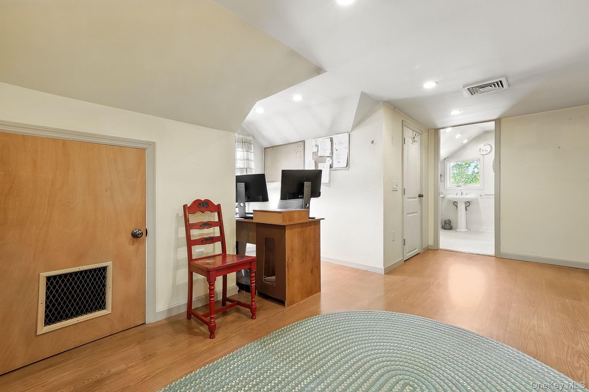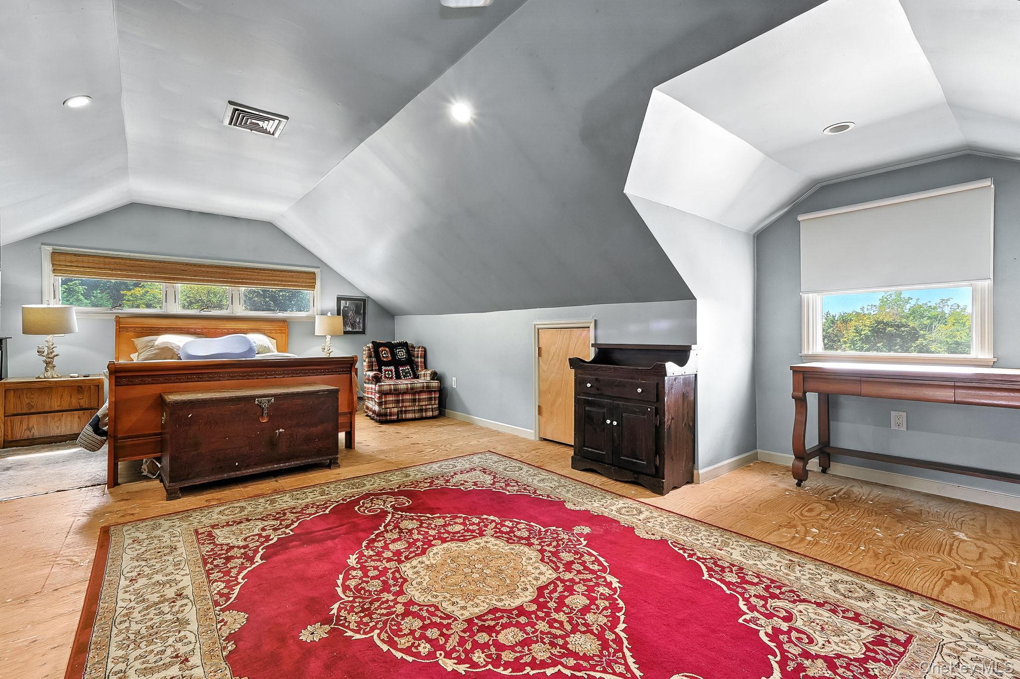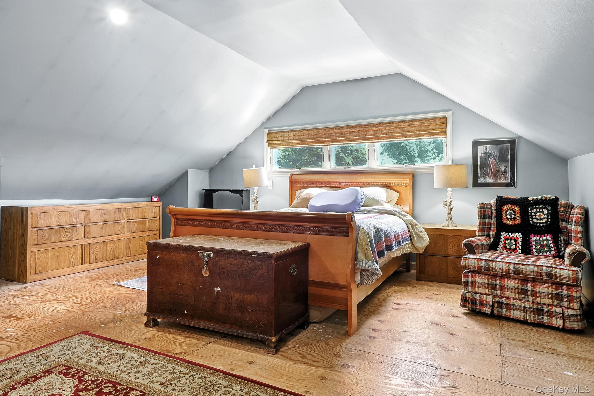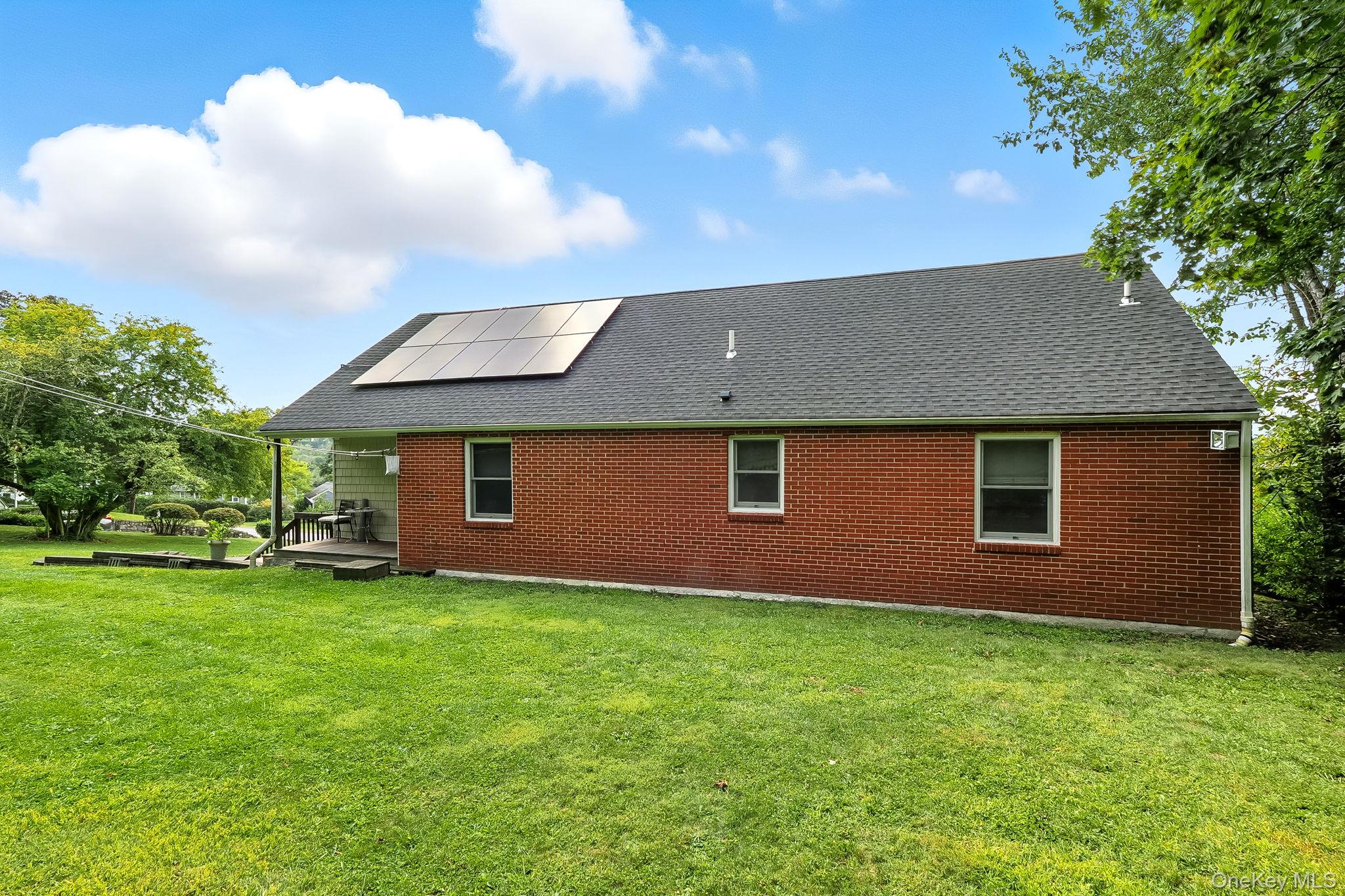 Stylish and unique ranch style home featuring the ultimate open-concept living experience. Enjoy a bright and airy feel with a kitchen showcasing white cabinets and a breakfast bar flowing into the dining room and an inviting living room complete with charming French doors and a cozy brick fireplace. The main floor boasts two comfortable bedrooms accompanied by a full bath. Upstairs, you will find an additional bedroom and versatile office space or family room, as well as another full bath, making it perfect for entertainment. Bask in the picturesque vistas of the Hudson Valley landscape, visible from many areas of the home. This home is quipped with city water, cedar closets, 3 zone heating, new architectural roof and solar panels that the seller is paying off prior to closing. Enjoy the serenity of your new home with Pella and Anderson windows ensuring both aesthetic appeal and energy efficiency. Relax and entertain on the 50 ft expansive cedar deck perfectly positioned to enjoy the views. Close proximity to TSP, shopping and more.