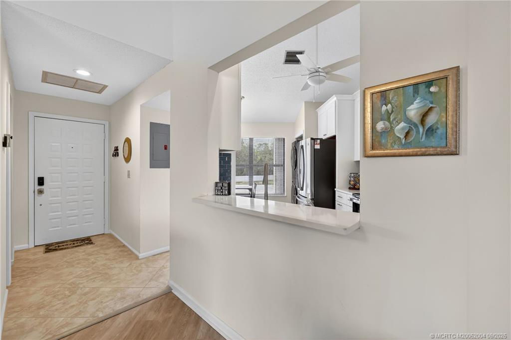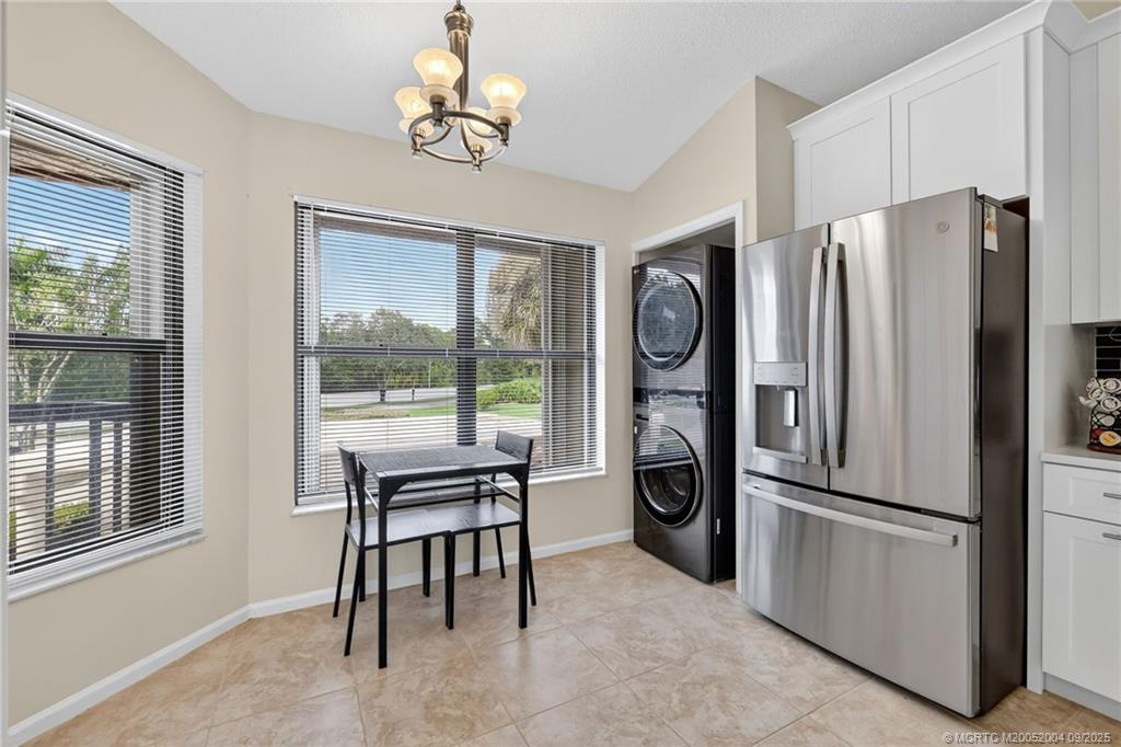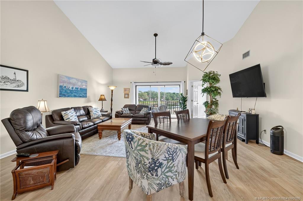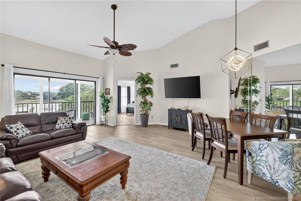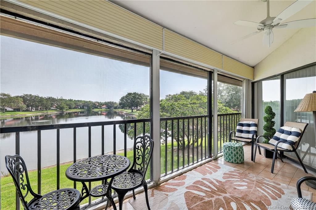 Stunning long lake view from this beautiful 2nd floor, fully furnished condo in Montego Cove, Stuart’s premier 55+ community! Just imagine relaxing on the screened porch while enjoying the lake view or on the covered balcony with its view of the beautifully landscaped grounds. A gorgeous, newly updated kitchen, new flooring and high-end furnishings add to the desirability of this condo. The ground floor patio with the storage area is perfect for your plants, bike storage, b-b-q grill & other outdoor living accessories. Montego Cove residents enjoy the over 50 acres of grounds, 2 lakes, 2 pools, a hot tub spa, a lovely clubhouse, tennis & pickleball courts and many recreational and social activities. Located in the south Stuart area, with only a short drive to historic downtown Stuart on the St. Lucie River or to the beaches. No smokers, no pets. Available for annual lease only, starting 12/8/2025 or later.