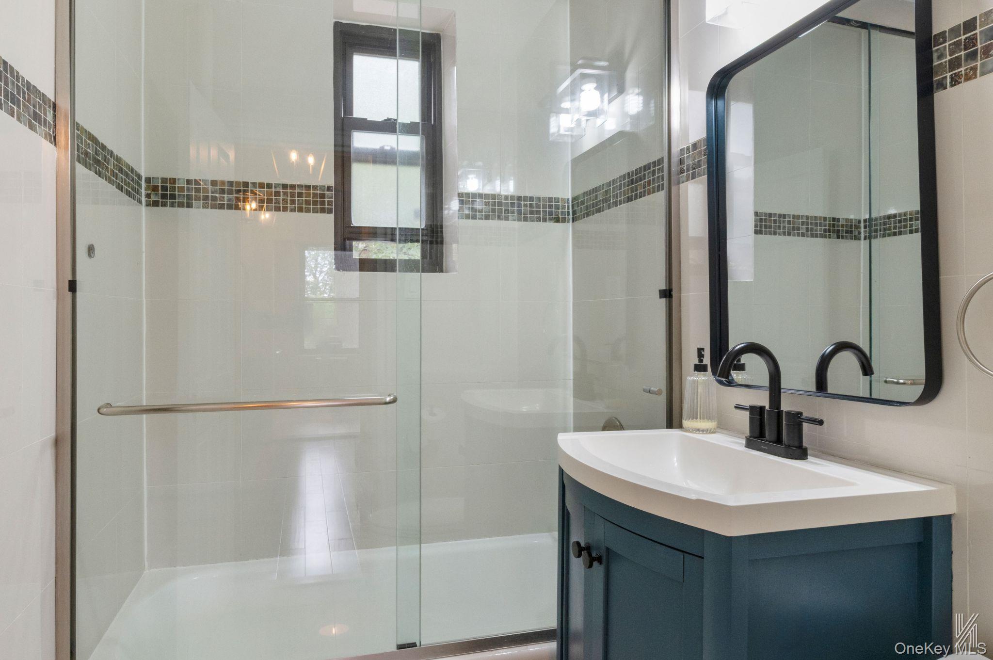This beautifully renovated one-bedroom unit impresses with its crown moldings, cherry hardwood floors, and arched doorways. The crisp, clean paint, recessed lighting, and modern fixtures throughout create a cohesive and inviting atmosphere. Upon entering the condo, you will notice two large closets in the foyer, which are perfect for storing coats, shoes, and other items. Additionally, there is a double-wide closet in the hallway near the bathroom, ensuring that storage never becomes a concern. The spacious living room and dining area feature East and West-facing windows, providing a delightful cross-breeze and plenty of natural light. The double-wide window in the dining area overlooks the beautifully maintained back courtyard. This expansive space is ideal for entertaining and can comfortably accommodate a table for six. Two pendant lights hang above the half-wall pass-through breakfast bar, which features charming beadboard paneling. In the kitchen, you will find a Frigidaire Gallery five-burner gas stove with a microwave above it. Light wooden cabinetry extends to the ceiling, offering ample storage above the quartz countertops, which showcase elegant grey and gold veins. The vertical subway tile backsplash enhances the overall sophistication of the space. The bedroom boasts an oversized window that floods the room with light and overlooks a serene, tree-lined street. This space can easily accommodate a queen-sized bed, a vanity or desk, as well as a dresser and side tables. The windowed bathroom features floor-to-ceiling tile with a horizontal accent stripe in blue, grey, and bronze. The glass-enclosed shower/tub combination is equipped with Allen and Roth fixtures and a rain shower head. The dark blue painted cabinets beneath the sink provide additional storage and add a pop of color. Garden Bay Manor is a well-maintained condo complex that spans several square blocks in the highly desirable Upper Ditmars/Astoria Heights neighborhood. It is known for its beautifully landscaped grounds and low common charges and annual real estate taxes. Street parking is plentiful, and various transportation options, including the M60, Q69, and others, are nearby. Shops, cafes, restaurants, and LaGuardia Airport are just minutes away.