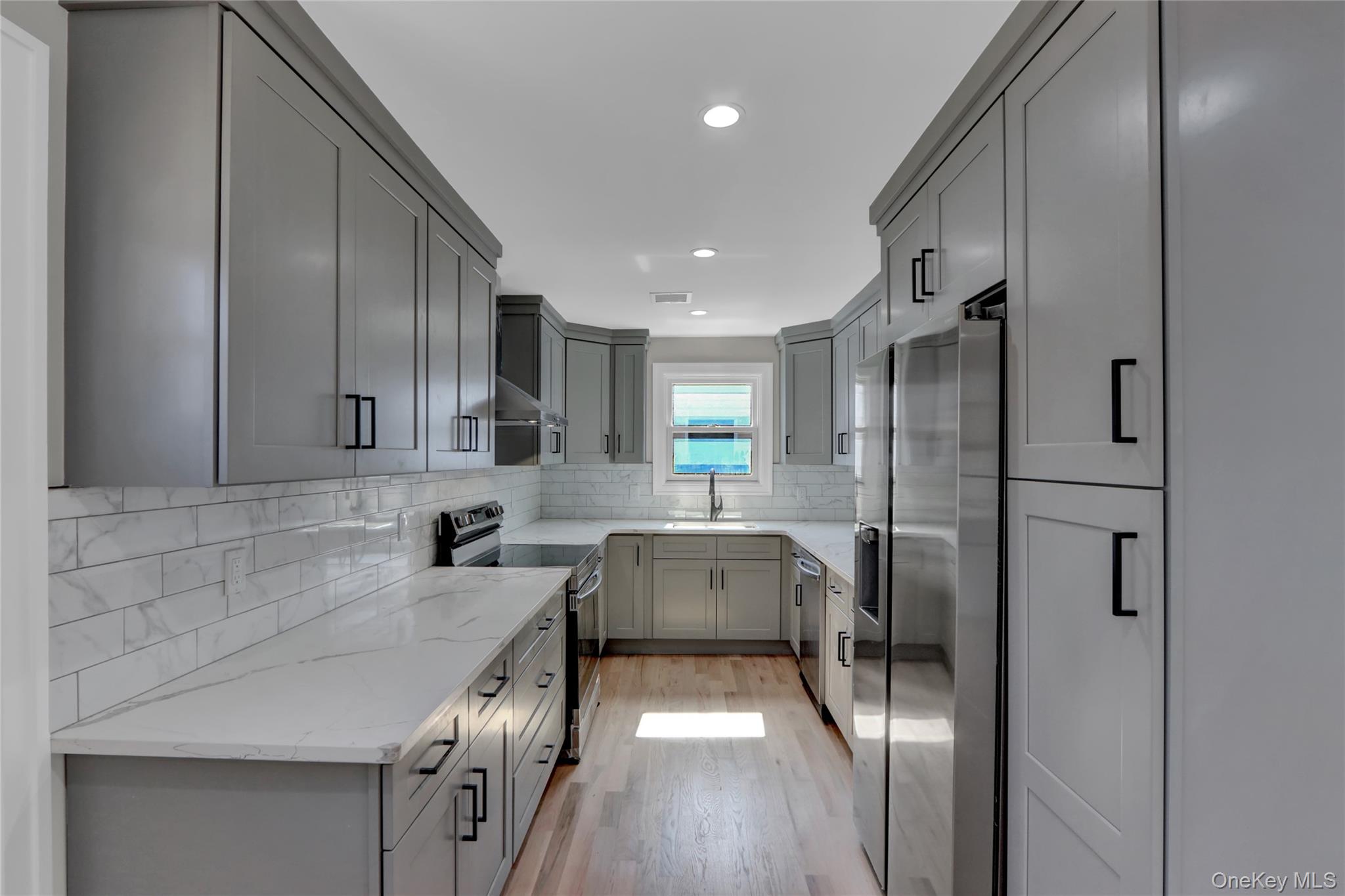 Welcome home to this beautifully renovated 4-bedroom, 2-bathroom Colonial, where classic charm meets modern elegance. Step inside to find gleaming hardwood floors and exquisite moldings throughout. The brand-new gourmet kitchen is a true showstopper, featuring quartz countertops, custom wood cabinetry, and stainless steel appliances. Both full bathrooms have been thoughtfully updated with sleek, modern finishes, while the second-floor laundry room adds everyday convenience. A first-floor bedroom offers flexibility—perfect for guests, a home office, or additional living space. Step outside to a spacious backyard, complete with a large detached garage providing ample storage and parking. Enjoy peace of mind with brand-new windows, roof, siding, HVAC system, hot water heater, and stainless-steel appliances! Nestled in a prime location, this home is just minutes from shopping, schools, public transportation, and major highways. Move right in and start making memories in this truly turn-key home!