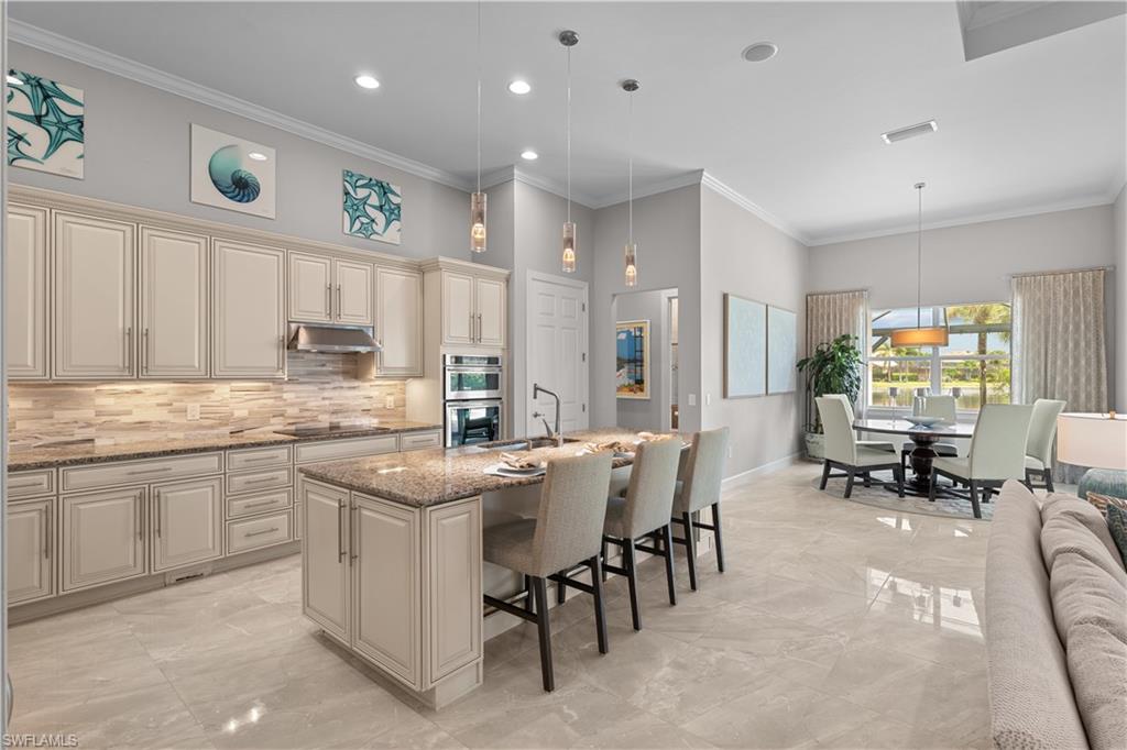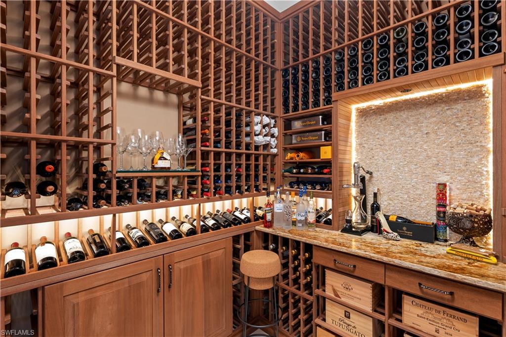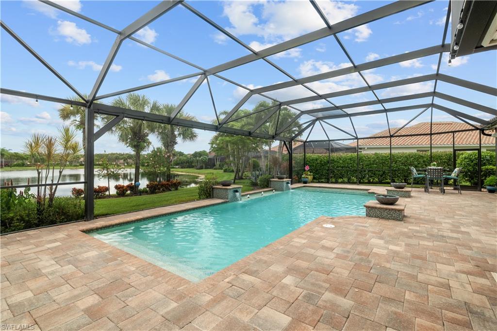 Welcome to this stunning, light-filled and ever so popular "Windsor" floorplan home, featuring 4 bedrooms plus den, 3 full baths, and a spacious 3-car garage. Nestled on an oversized, pie shaped lot with an extra long driveway, this home offers a wide-open Great Room layout that’s perfect for entertaining and everyday living. As you step inside, you’ll be greeted by a bright and airy atmosphere, highlighted by zero-corner pocketing sliding glass doors to the lanai that seamlessly connect the indoor and outdoor living spaces. The sliding doors lead to the expansive lanai, where you'll find an outdoor kitchen and an oversized electric (brand new pool heater) and solar heated salt water pool with picture window screen cage overlooking the lake – your personal oasis. The chef’s kitchen is a dream, complete with raised panel cabinetry, KitchenAid appliances including wall oven, convection microwave, and beverage cooler. The large eat-in kitchen area offers the perfect spot to gather and enjoy meals with family and friends. Retreat to the luxurious primary suite, which boasts a tray ceiling, a spacious bath featuring a soaking tub & walk in shower, and two spacious walk-in closets with built-in cabinetry. For those wine enthusiasts, the custom climate controlled walk in wine room will be the envy of your family and friends. Storm ready with HURRICANE IMPACT WINDOWS/DOORS! Enjoy boating, golf, tennis, pickleball, bocce, a tiki bar, restaurant, poolside food and drink service, a fitness center, and social activities. The recently renovated $18M Lake Lodge & Beach Club offers over 500 acres of navigable lakes, boat slips available for lease, and a private 18-hole golf course (full golf memberships available/optional). In addition, The Quarry Golf Club offers a variety of membership opportunities. Designed in 2007 by the world-renowned architectural team of Dr. Michael Hurdzan and Dana Fry, this Par 72 championship course delivers a truly exceptional golf experience framed by breathtaking views. Water comes into play on every hole, creating both beauty and challenge, while the thoughtful design ensures an engaging round for golfers of all skill levels. With five sets of tees and a distinctive layout from hole to hole, this course offers endless variety—inviting you to enjoy the challenge again and again. Don’t miss the chance to experience a lifestyle like no other in The Quarry – schedule your private showing today!