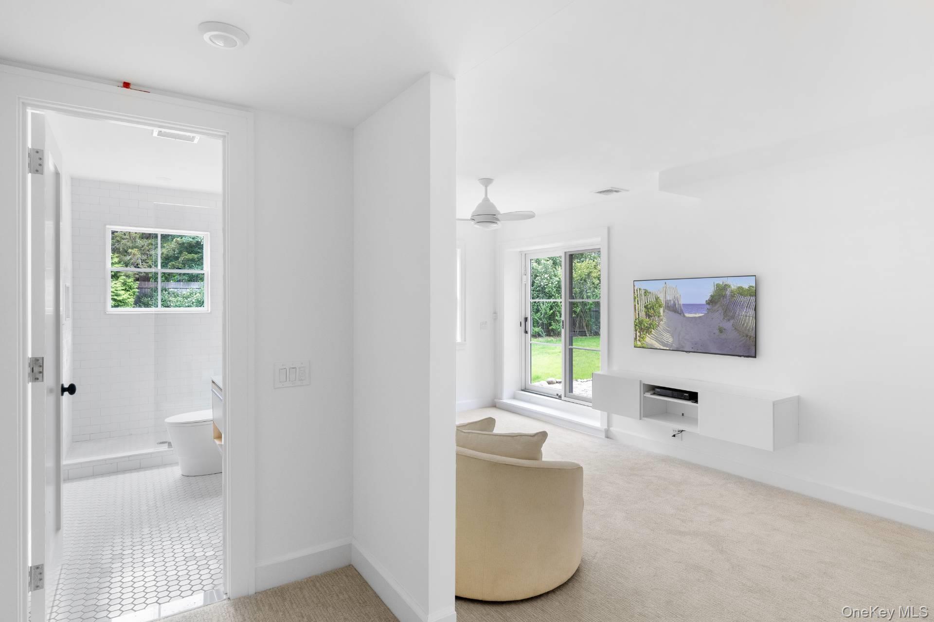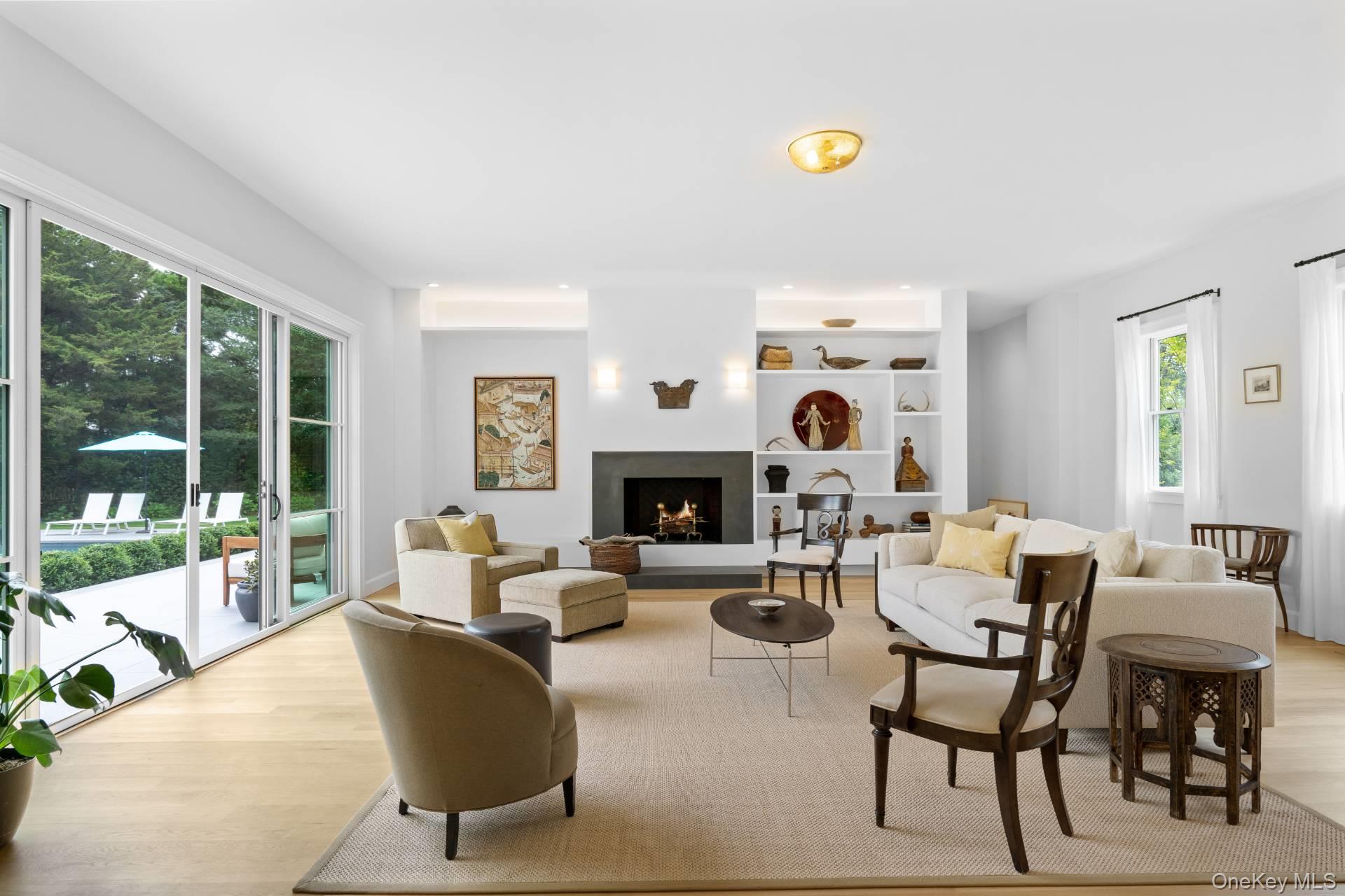 Located in Water Mill, South of the Highway, with access to Mecox Bay, on a coveted, private lane, this luminous, new shingle-style construction features 6 bedrooms, 6. 5 baths and 2 fireplaces across 5, 400+ sf of living space. A light-filled entry leads to an open, spacious living room in a home featuring modern Asian decor. Five ample sliding glass doors open directly to the bluestone back patio, a heated gunite 20x40 pool, and a beautifully-landscaped backyard. The home also offers 2 primary suites with separate showers and soaking tubs, 4 ensuite bedrooms, including one with its own private entrance and patio. On the second floor, there are a library/meditation room and a private office space. The ground floor includes a recreation room with a ping-pong table and one bay within the 2-car attached garage. Additional amenities include multiple outdoor areas for dining and entertaining, a gas-fired grill, a covered loggia, outdoor shower, and solar panels with backup electric storage. Just a few hundred feet down the road is water access to Hayground Cove and Mecox Bay beyond, perfect for kayaking, canoeing, or paddle boarding. The pristine Flying Point Beach is just a short distance away on the quiet back roads of quaint Water Mill.