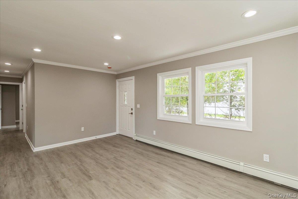 Welcome to this beautifully renovated 3-bedroom, 2-bath ranch, perfectly positioned on a spacious corner lot in the heart of Bellport. Thoughtfully updated throughout, this home blends modern style with everyday comfort. The bright, open layout features brand-new appliances, granite countertops, crown molding, and sleek, contemporary finishes that make every room feel fresh and inviting. The fully finished basement adds exceptional versatility — ideal as entertainment space, home office, etc. Step outside to a large deck, perfect for entertaining or simply enjoying your private outdoor retreat. As an added bonus, this home comes with extremely low taxes, making it not only stylish and functional; — but true long-term value. Whether you're a first-time buyer or looking to upgrade, this move-in ready gem is the perfect place to call home.