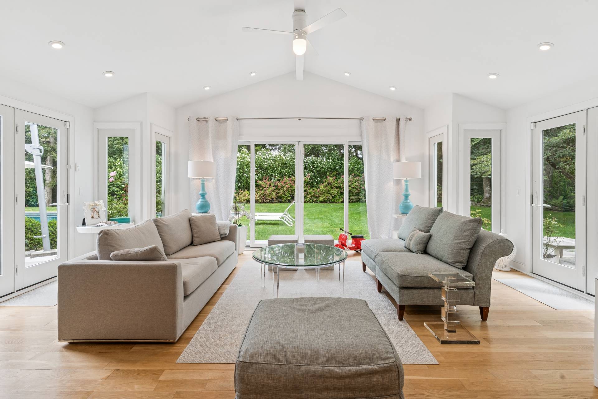 Stunning 5-Bedroom, 5-Bath Hamptons Retreat. Perfectly situated between East Hampton and Amagansett's beaches and shops, this beautifully decorated home is designed for the ultimate summer escape. Sunlight floods the open floor plan, offering seamless views of the landscaped grounds and sparkling pool. Enjoy total connectivity with high-speed Wi-Fi throughout the home and property, along with a premium sound system controllable right from your smartphone. Both indoors and outdoors are fully wired with Hi-Fi audio and video-whether you're relaxing by the in-ground pool and spa, grilling at the BBQ island, or unwinding in the lush sunken garden. The fully finished lower level provides another incredible space for recreation, featuring an 85" high-definition Apple TV with Sonos surround sound, a bar, game area, and ping pong table. From here, step out to the private sunken garden-beautifully landscaped and outfitted with a brand-new outdoor gas fireplace, plush seating, and the perfect ambiance for evening gatherings. This home combines modern luxury with relaxed Hamptons charm, creating an ideal setting for family and friends to enjoy all summer long.
