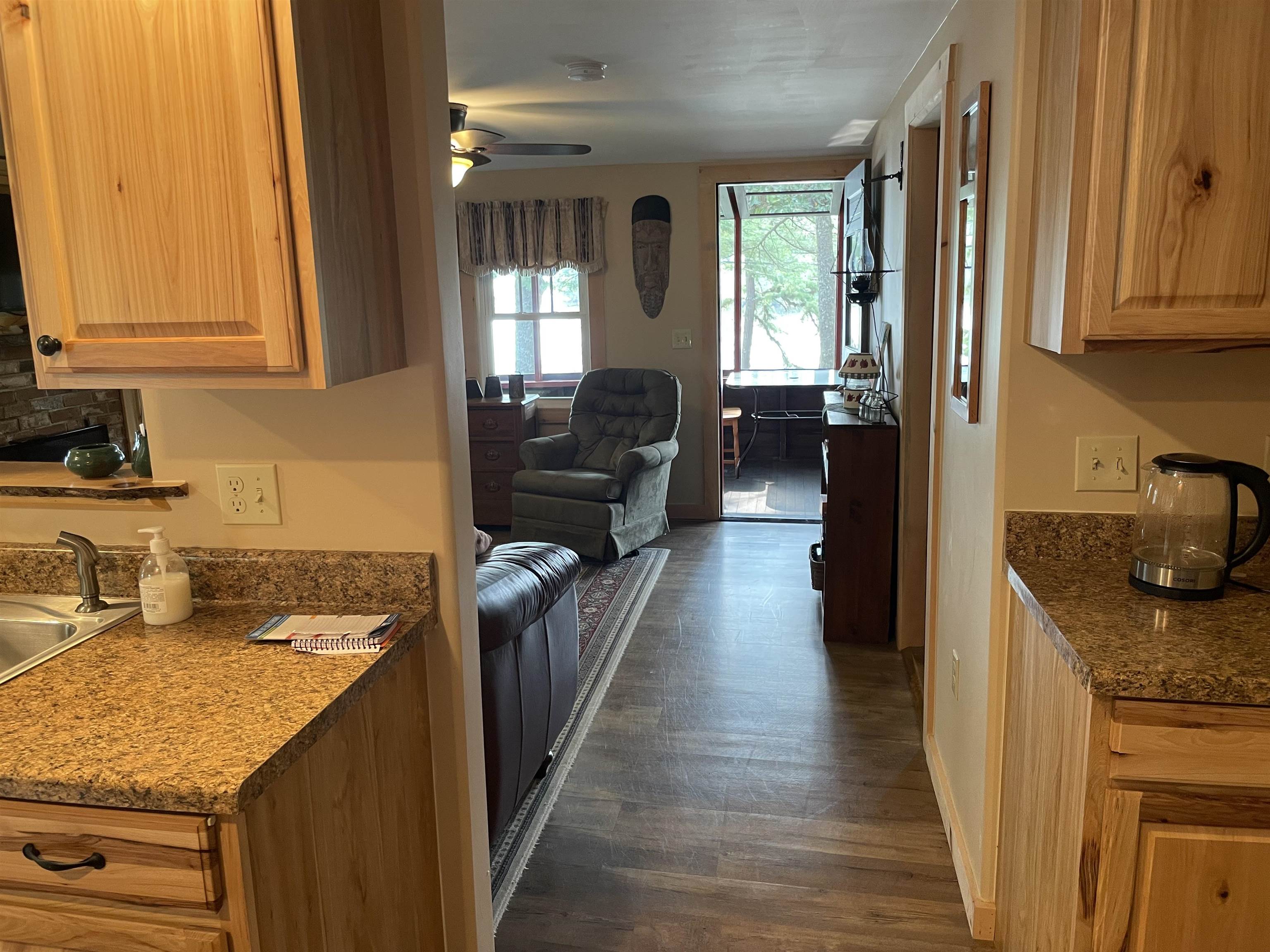 Welcome to the PIXIE HOUSE - Your Waterfront Retreat on Silver Lake! Recent updates include two Samsung mini-split heating and air conditioning units, durable new metal roof, new floor in the family room, new wondows, freshly painted exterior. A brand new walkway that leads to your private dock, while the inviting porch offers a perfect spot to relax and take in the scenery. This quaint home sits across the street from 78 feet of direct lake frontage on . 28 acres complete with a detached one car carport, storage shed, and inviting patio overlooking the Silver Lake. Inside warmth is provided by a gas insert, woodstove, and the energy efficient mimi-splits. Outdoor enthusiasts will love the direct access to cross-country skiing, and snowmobile trails right from the property. Come enjoy swimming, boating and fishing from this beautifully manitained home!