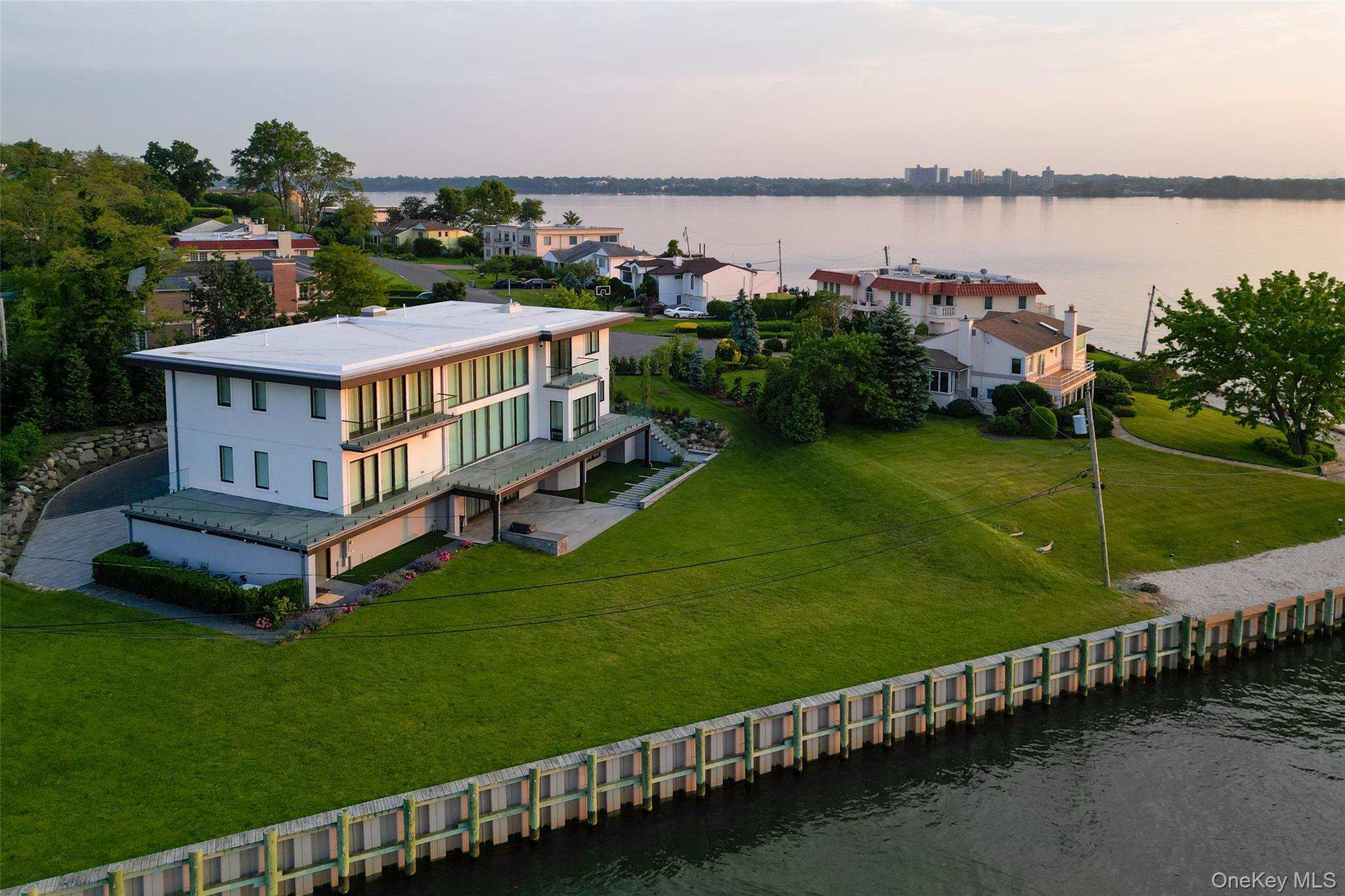 70 Candy Lane is a one-of-a-kind waterfront mansion located in the prestigious Saddle Rock community of Great Neck. Positioned on a rare 24, 300 sq. ft. lot and offering approximately 8, 000 sq. ft. of interior space, this estate was designed to balance timeless European elegance with modern functionality. The property rises three levels above ground and is bathed in natural light throughout, with soaring windows and multiple terraces that showcase panoramic views of the Atlantic Ocean, the Manhattan skyline, and the serene waters of Little Neck Bay. With nine bedrooms, six full bathrooms, and two half bathrooms, this residence is as versatile as it is grand, accommodating both intimate family living and large-scale entertaining. The main floor of over 3, 000 sq. ft. begins with a dramatic foyer that flows into a formal dining room, cocktail bar with secondary dining area, expansive living room, and private office. Dual kitchens — a Western-style kitchen and a separate Asian kitchen — are equipped with premium European appliances and designed for both everyday living and formal gatherings. A VIP guest suite with walk-in closet and full bath, plus a powder room, complete this level. The second floor offers approximately 2, 300 sq. ft. and includes a luxurious primary suite with spa-inspired bath and custom closets, two additional en-suite bedrooms, a nanny’s room, and an independent full bathroom. The garden level adds 2, 400 sq. ft. of lifestyle amenities, including a professional-grade home theater, temperature-controlled wine cellar with private tasting lounge, fitness center with wet and dry saunas, butler’s quarters, and both a full and half bathroom. An elevator provides seamless access to all three levels, and a double garage with dual driveways enhances convenience. Outdoor spaces are equally impressive, featuring landscaped grounds, a barbecue area, outdoor shower, and terraces perfectly positioned to capture both sunrise and sunset views over the water. As part of the exclusive Saddle Rock community, residents benefit from 24/7 gated security and patrol, a private clubhouse, swimming pool, tennis and basketball courts, and access to a private beach. The property also falls within the highly acclaimed Great Neck school district, providing access to some of the top-rated public and private schools in the country. 70 Candy Lane offers a rare opportunity to own a true waterfront mansion that combines architectural sophistication, resort-style amenities, and a location that delivers both tranquility and proximity to New York City. It is not just a home, but a generational estate designed for those who value space, elegance, and a lifestyle of prestige.