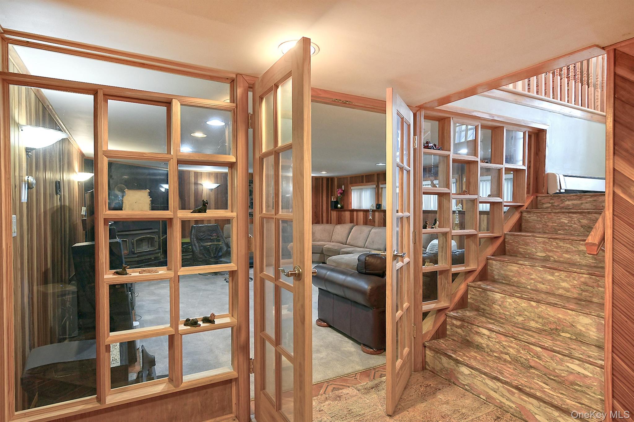 Welcome to this Expanded Hi ranch home in Woodbury hills area, Located in Syosset school district, It's a really big house with 5-6 bedrooms and 3 full baths, On the upper level, sunny and bright living room, huge extended eat in kitchen with vaulted ceilings, 3 sky lights and sliding door to the back yard, large primary bedroom with full bath, 2 more nice size bedrooms, hallway bathroom with jacuzzi, On the lower level, cozy family room with wood burning fireplace, 2 spacious bedrooms, full bath, room for Gym or office, laundry, utilities, Hardwood floors, Hi-hats throughout, Ductless high quality aircon unit in each room, 50 gal hot water tank, 200 amp, Oversized fenced property is perfect for outdoor entertainment, swimming pool(As Is), 2 tiers wood deck, Detached 2 car garage, very wide driveway