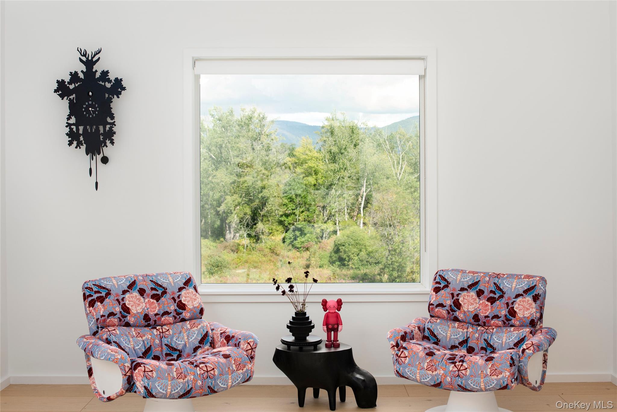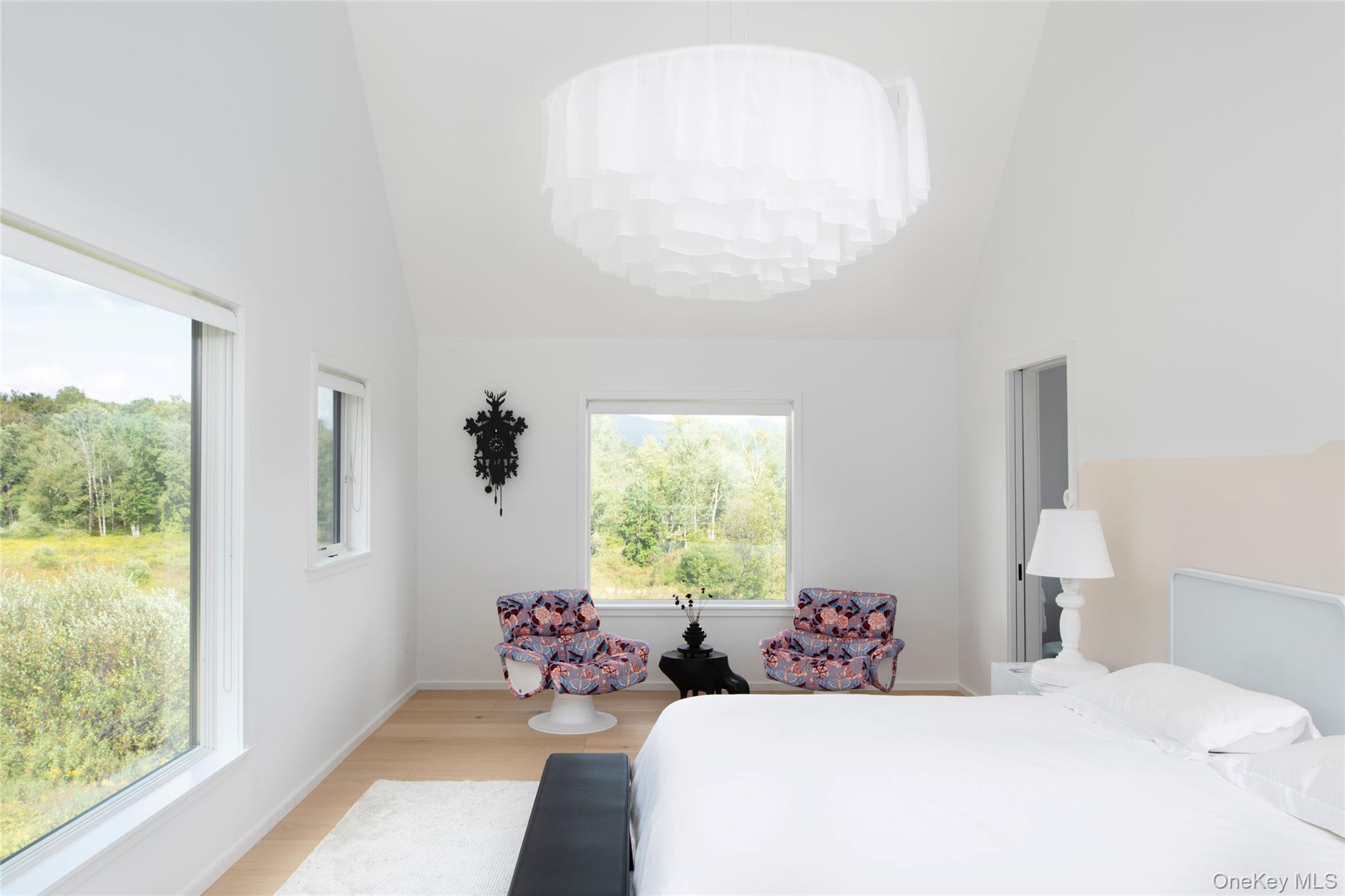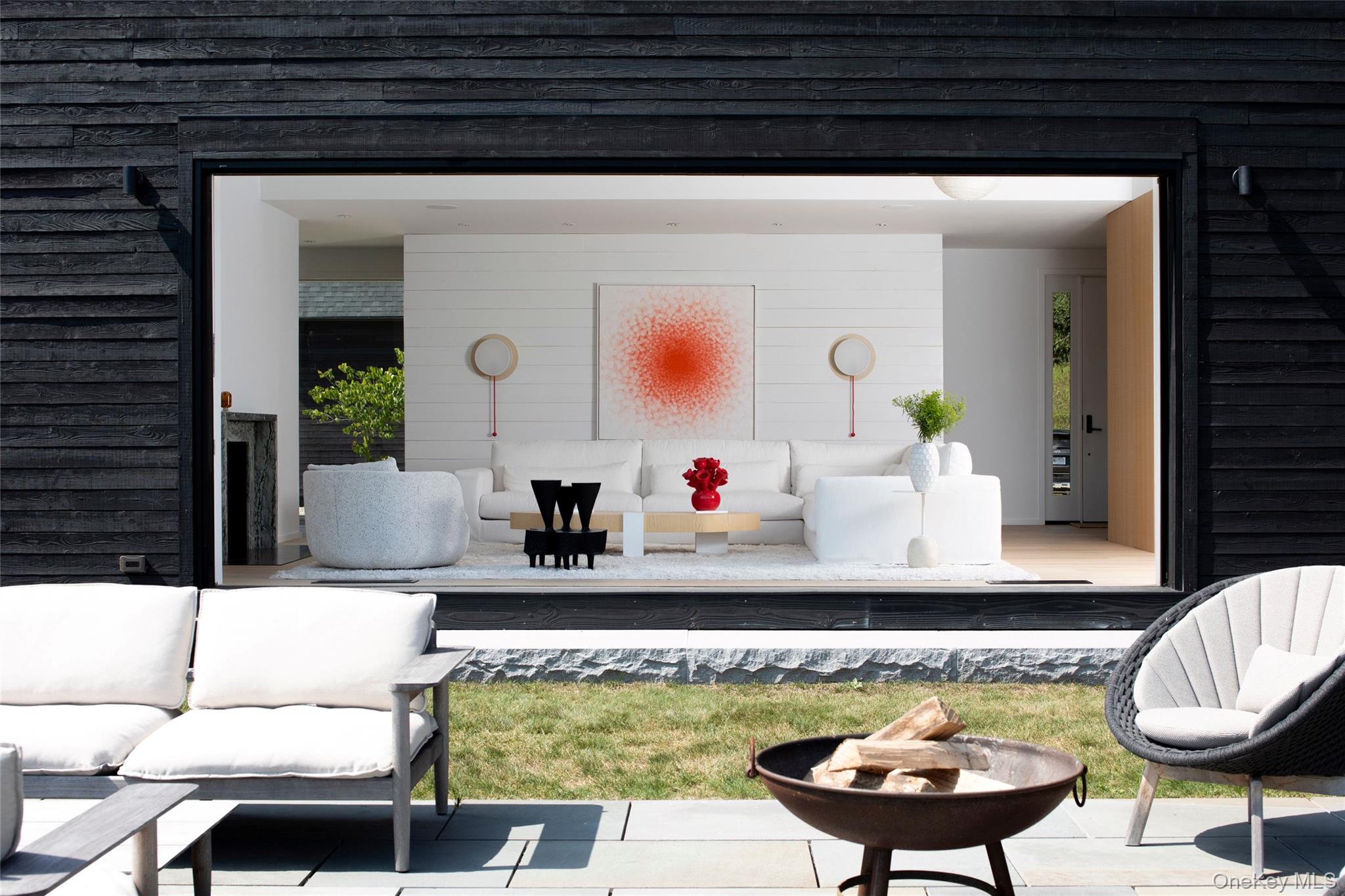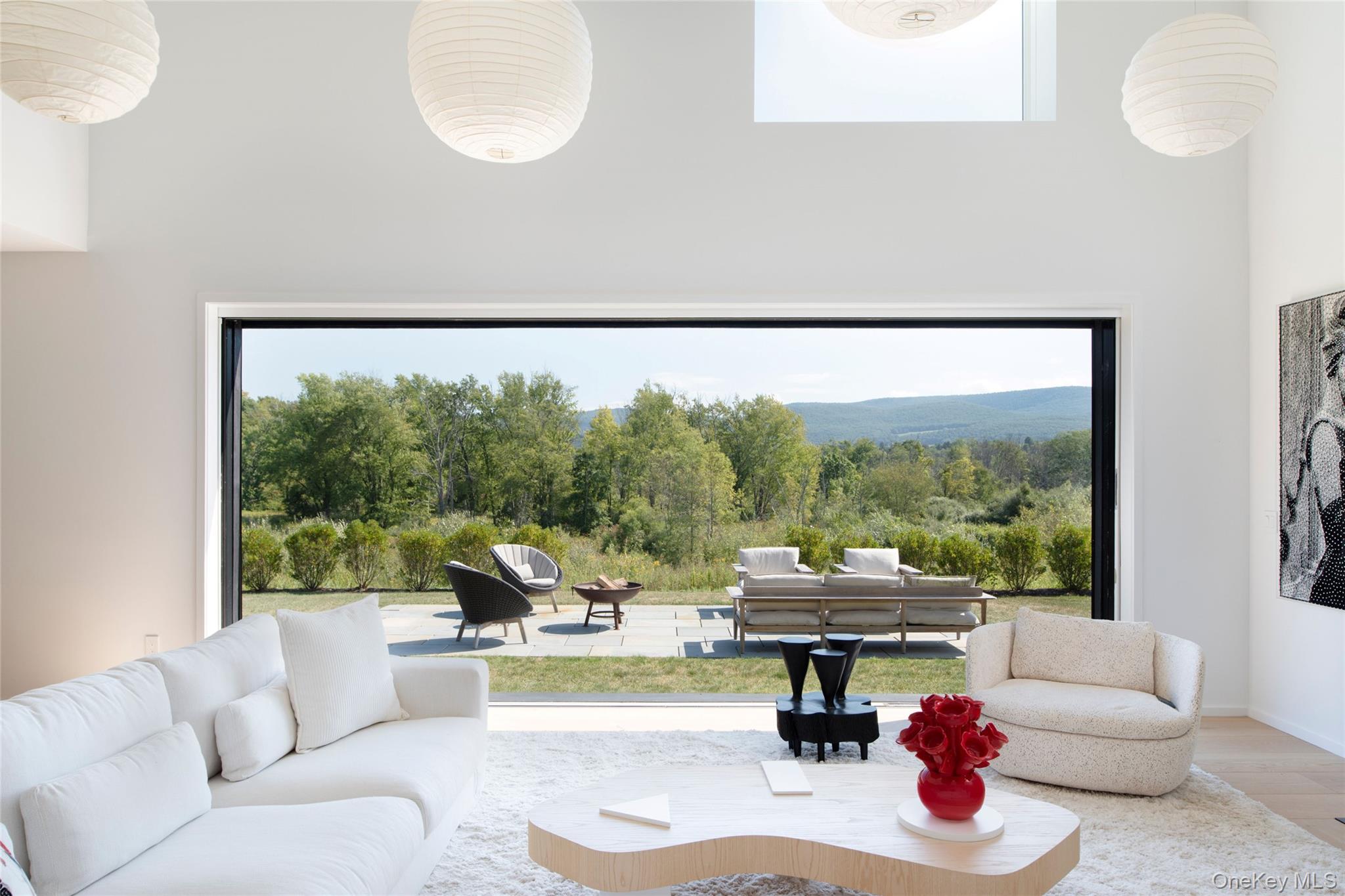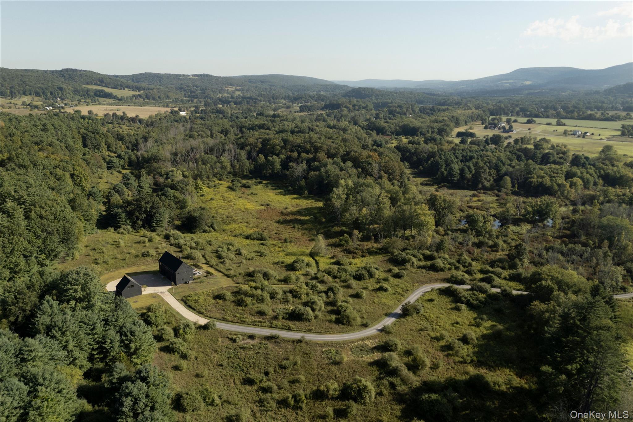 Tucked away in total privacy, this 2023 architectural stunner is set on 34+ acres of rolling landscape with panoramic views of the Taconic Range and the Ro Jan Kill stream flowing through the property, complete with natural swimming holes perfect for warmer months. A picturesque long driveway winds through undulating open fields, setting the stage for the home’s striking architectural presence featured in AD. Clad in Shou Sugi Ban cedar siding, the exterior is both artful and enduring. This 18th-century Japanese preservation method involves charring the wood and sealing it with natural oil, resulting in a richly textured charcoal-black finish that is visually striking and built to last. Inside, the 3, 900 sqft residence offers 3 spacious bedroom suites, 2 with walk-in closets, and each with private full baths. A convenient powder room on the first floor adds thoughtful functionality, complementing the main-level suite’s privacy and flexibility. Upstairs, two additional suites offer elevated views and serene separation. At the heart of the home, a double-height living room features a dramatic wood-burning fireplace and opens directly to the outdoors through a 16-foot-wide retractable glass wall, creating a seamless indoor-outdoor living experience. The adjacent open kitchen is ideal for entertaining or peaceful everyday living, all set against the backdrop of surrounding nature. Since the initial 2023 construction, many new upgrades have been made, such as the finished 900 sqft basement, which includes a den, a second kitchen, and a dedicated space for a home gym, offering versatile room for wellness, hobbies, or guests—all with the same clean, modern design as the rest of the home. A 2-car detached garage sits nearby with unfinished space above, ready to be transformed into a studio, guest suite, or home office. Importantly, the septic system is approved for a fourth bedroom, making expansion both easy and valuable. Ideally located just minutes from Hillsdale, Copake Lake, and Catamount Ski Area, and equidistant from Hudson, NY, and Great Barrington, MA, this property offers unmatched privacy without sacrificing access to culture, dining, and outdoor adventure. Whether enjoying a fire in winter, a swim in the stream during summer, or simply taking in the mountain views, this is a home that celebrates modern architecture, natural materials, and the quiet luxury of space.