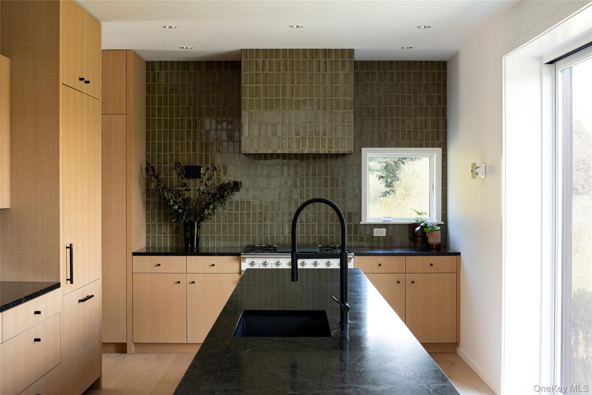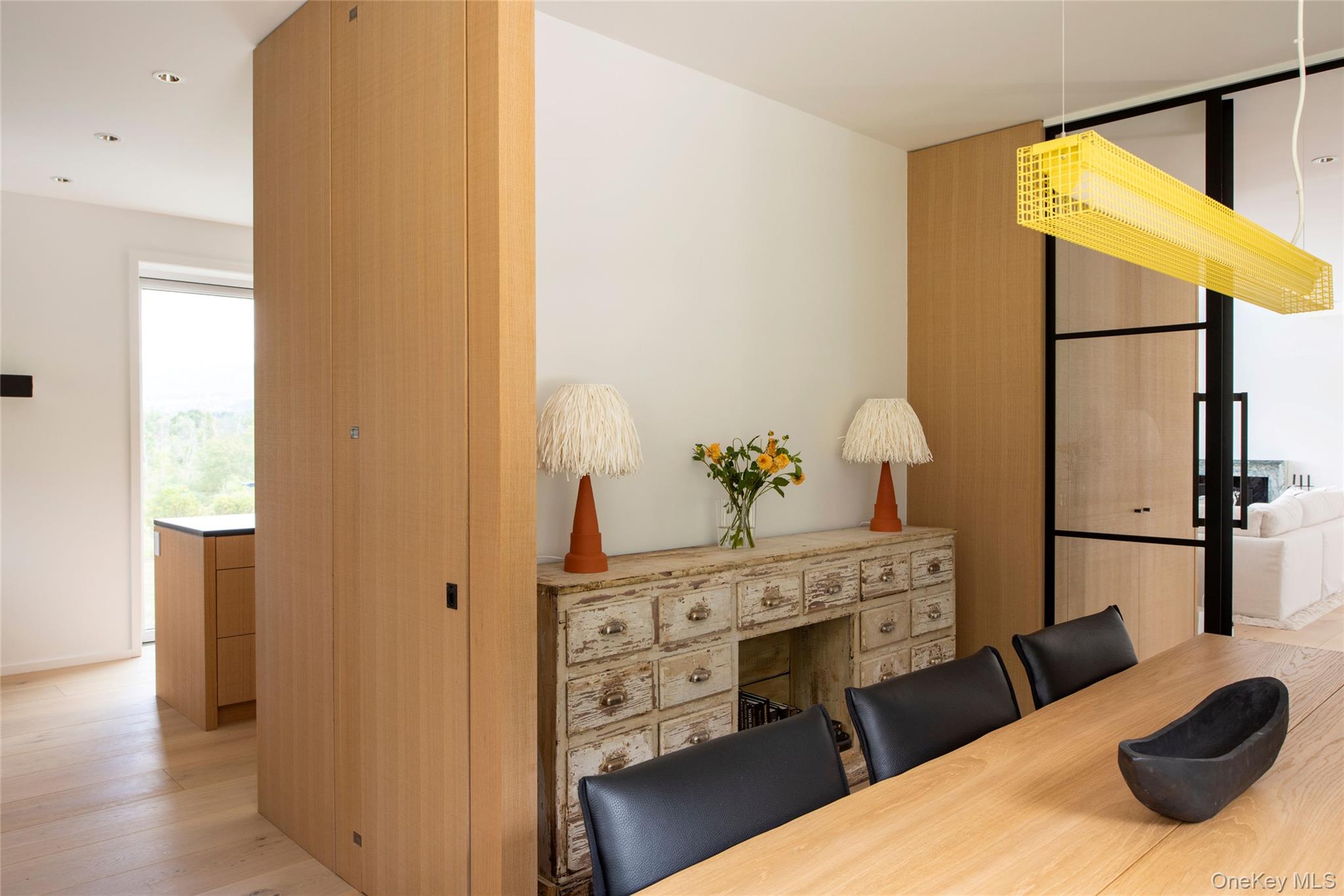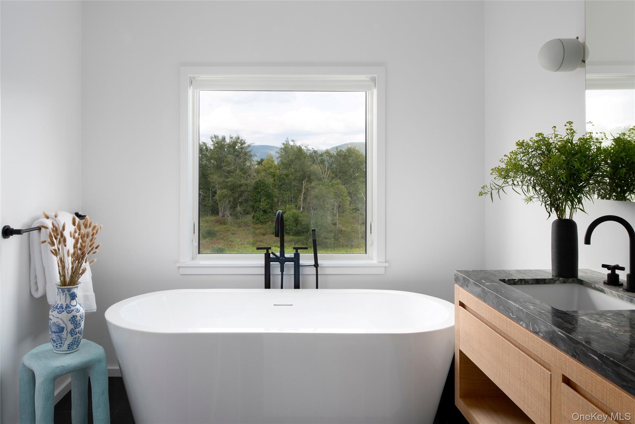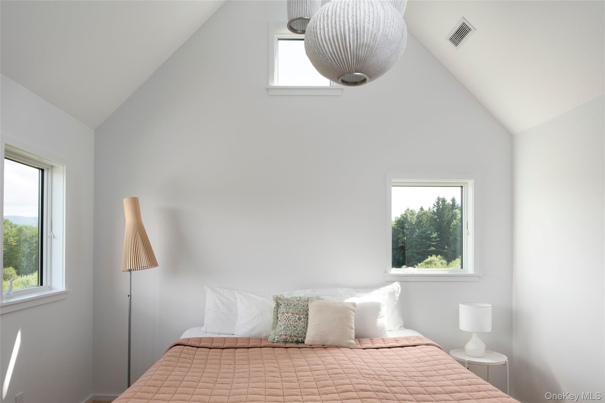 Tucked away in total privacy, this 2023 architectural stunner is set on 34+ acres of rolling landscape with panoramic views of the Taconic Range and the Ro Jan Kill stream flowing through the property, complete with natural swimming holes perfect for warmer months. A picturesque long driveway winds through undulating open fields, setting the stage for the home’s striking architectural presence featured in AD. Clad in Shou Sugi Ban cedar siding, the exterior is both artful and enduring. This 18th-century Japanese preservation method involves charring the wood and sealing it with natural oil, resulting in a richly textured charcoal-black finish that is visually striking and built to last. Inside, the 3, 900 sqft residence offers 3 spacious bedroom suites, 2 with walk-in closets, and each with private full baths. A convenient powder room on the first floor adds thoughtful functionality, complementing the main-level suite’s privacy and flexibility. Upstairs, two additional suites offer elevated views and serene separation. At the heart of the home, a double-height living room features a dramatic wood-burning fireplace and opens directly to the outdoors through a 16-foot-wide retractable glass wall, creating a seamless indoor-outdoor living experience. The adjacent open kitchen is ideal for entertaining or peaceful everyday living, all set against the backdrop of surrounding nature. Since the initial 2023 construction, many new upgrades have been made, such as the finished 900 sqft basement, which includes a den, a second kitchen, and a dedicated space for a home gym, offering versatile room for wellness, hobbies, or guests—all with the same clean, modern design as the rest of the home. A 2-car detached garage sits nearby with unfinished space above, ready to be transformed into a studio, guest suite, or home office. Importantly, the septic system is approved for a fourth bedroom, making expansion both easy and valuable. Ideally located just minutes from Hillsdale, Copake Lake, and Catamount Ski Area, and equidistant from Hudson, NY, and Great Barrington, MA, this property offers unmatched privacy without sacrificing access to culture, dining, and outdoor adventure. Whether enjoying a fire in winter, a swim in the stream during summer, or simply taking in the mountain views, this is a home that celebrates modern architecture, natural materials, and the quiet luxury of space.