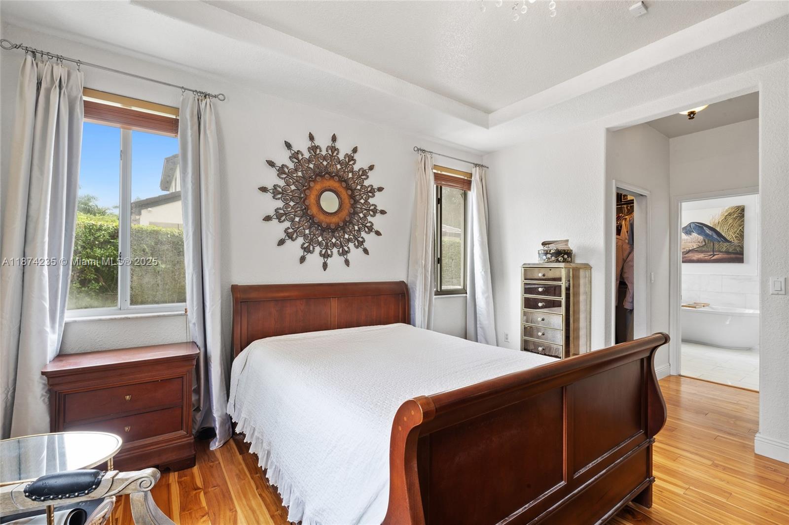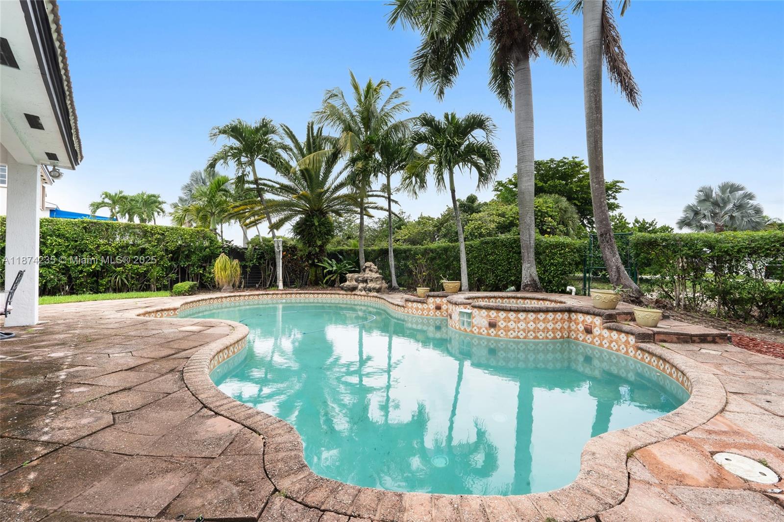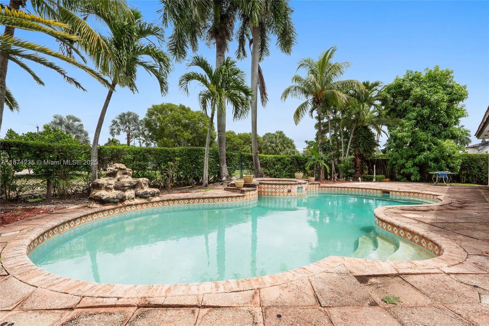 Located in a secure, guard-gated community in Miami Lakes, this home offers exclusivity and peace of mind. With nearly 2, 200 interior square feet, this home features 4 bedrooms, 2. 5 baths, and an inviting pool and jacuzzi on a 9, 700 square feet lot. Primary suite features two walk-in closets and a completely updated bathroom suite. The home also has a covered patio, low-maintenance landscaping, and a 2-car garage with additional driveway parking. No backyard neighbors thanks to a canal, ensuring complete privacy. Bright living spaces flow to a spacious kitchen. Prime location near top schools, shopping, dining, and highways.