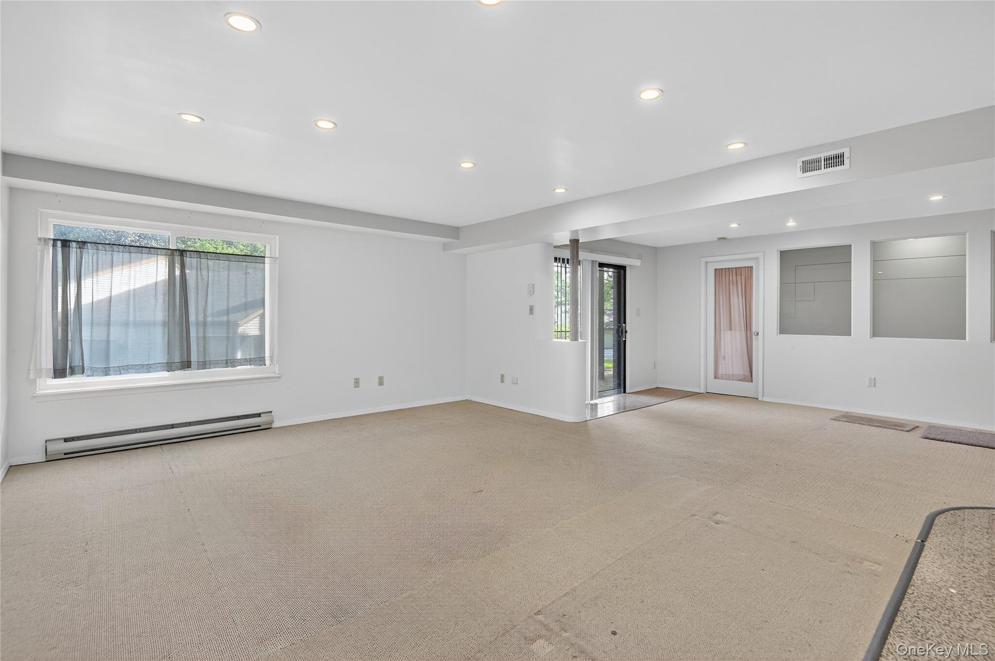 Welcome to this well-maintained Emerald Bay largest model in the desirable gated community of Estates II at North Hills. This spacious, sun-filled unit offers the perfect blend of comfort and convenience, with the primary suite located on the main floor for easy living. It features 2 separate dressing areas in the primary bath. The two additional bedrooms on the 2nd floor are ideal for guests or a home office, with one bath and ample closet space. The full walk-out lower level offers flexible use and access to private patio. Residents of Estates II enjoy the exceptional resort living amenities including 24/7 gated security, newly renovated clubhouse, gym, 3 tennis courts, heated pool, basketball, and pickleball courts. Conveniently located near Manhasset Americana shopping center, park, and 25 minutes to NYC.