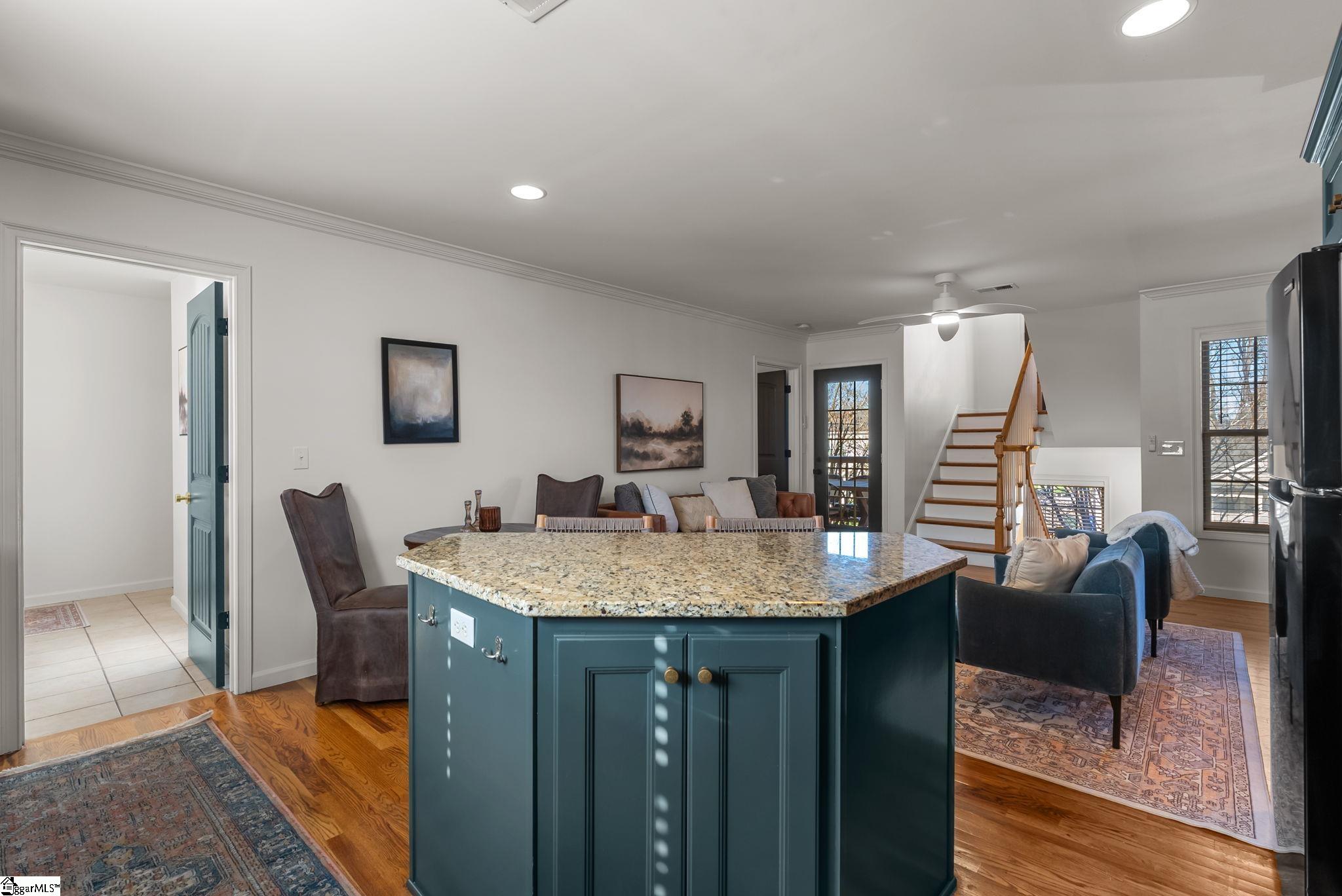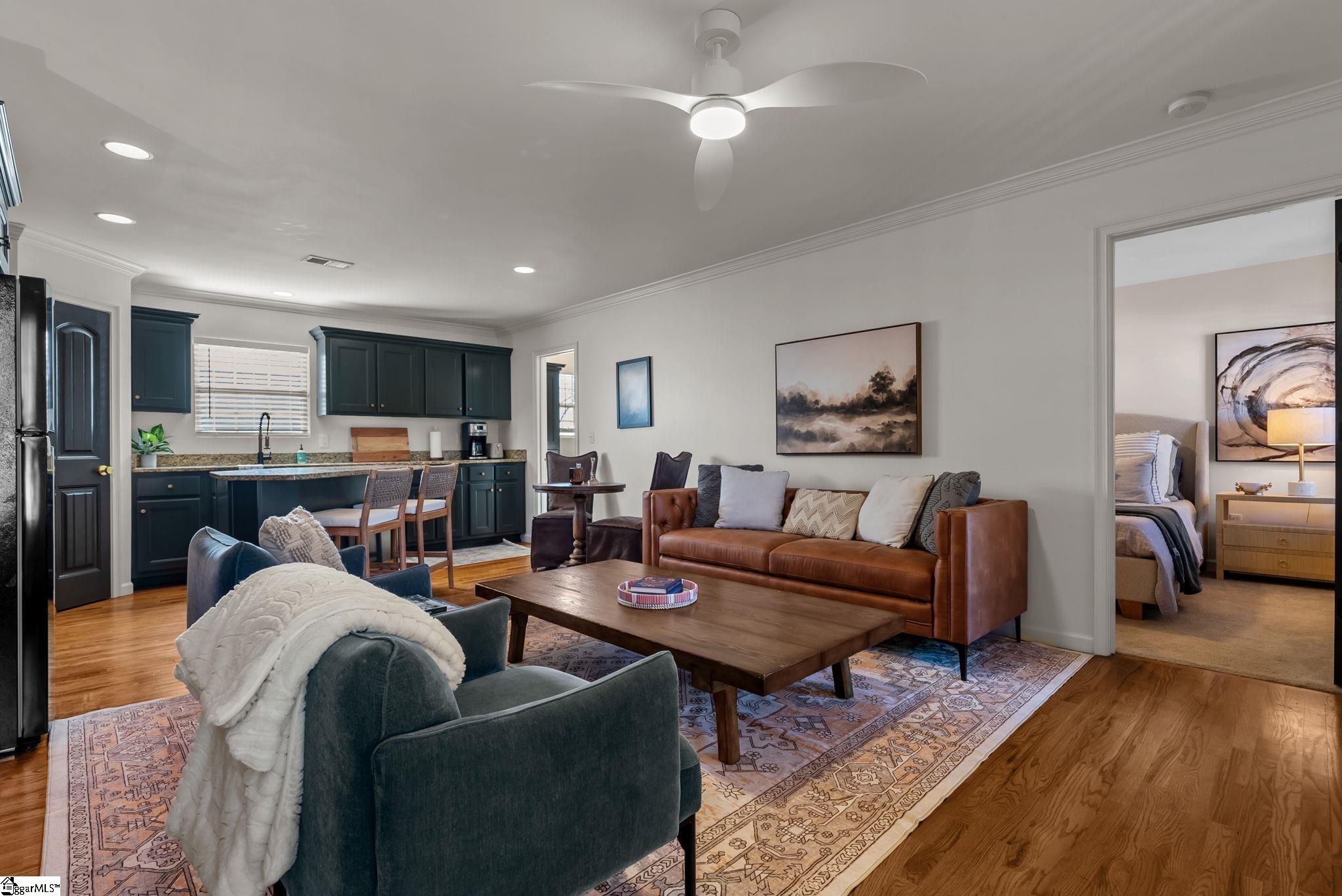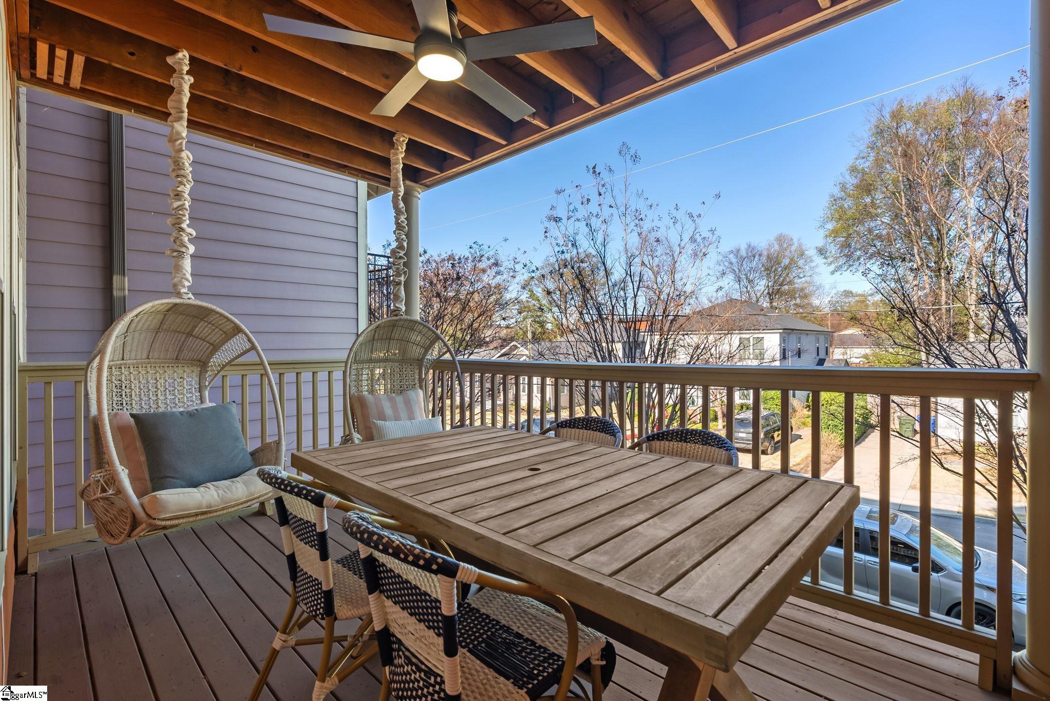 Fantastic lock and leave in the west end of downtown Greenville SC. New furniture, paint and appliances with a cozy interior design. Two large porches and a balcony gives way to outdoor living and allows for breezy fresh air when opened up. The master on the first level has a full bathroom attached and two bedrooms upstairs one with a queen and one with two twin beds each have their own bathroom attached as well. patio on the street level with a porch swing and covered storage area add to the usable outdoor space. Granite counter tops in the kitchen and quartz counters in the bathrooms add to the high-quality feel of this townhome. Enjoy gated entry and a two-car garage with a new epoxy floor with additional storage in the garage for bikes. This unit is accompanied with a 4-seater electric golf cart with a new lithium battery to allow the tenant to get around downtown within 3 miles radius of the address. This rental has a 30-night minimum, and all utilities and internet are included. Come and experience downtown Greenville at its finest!