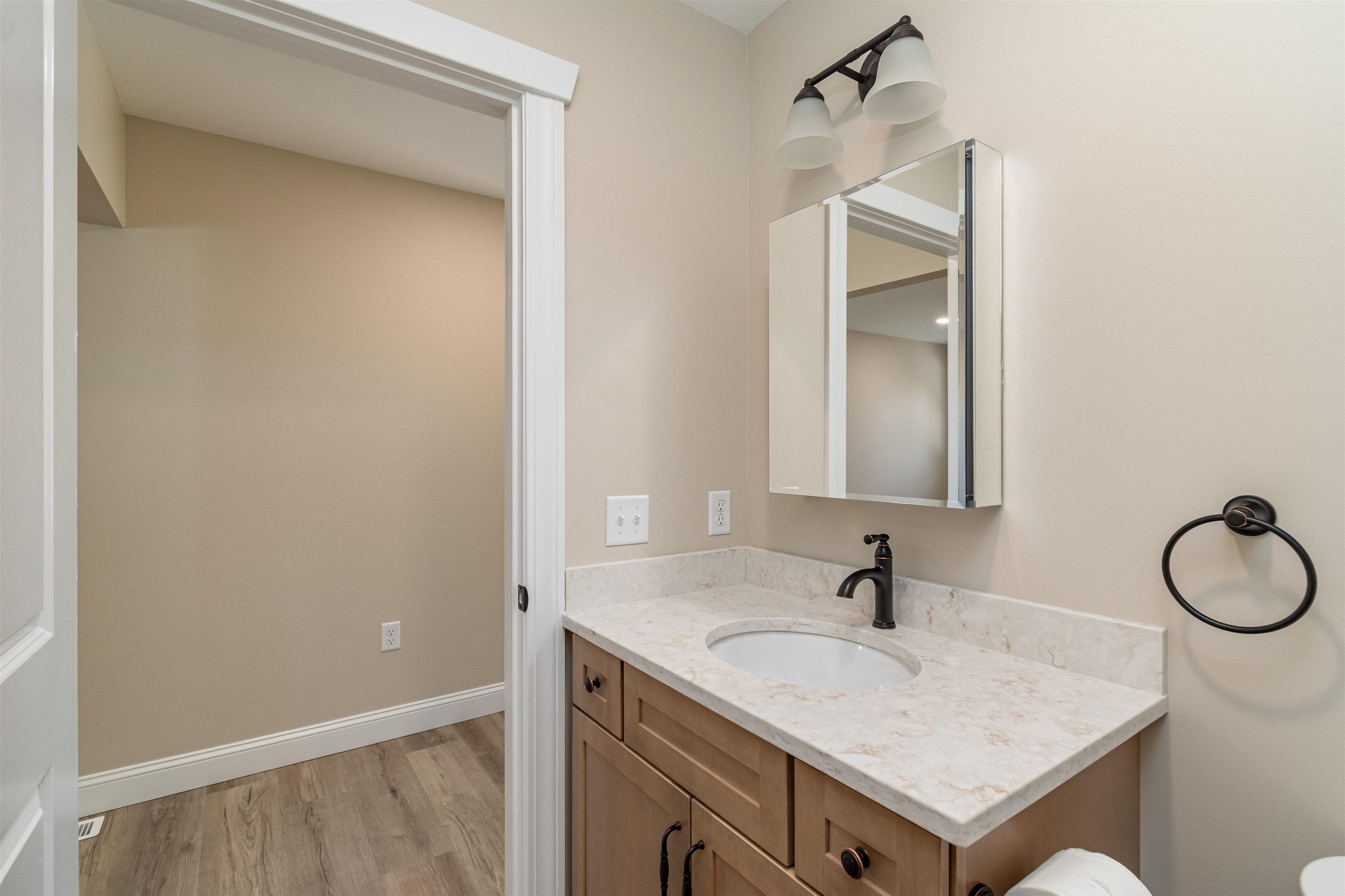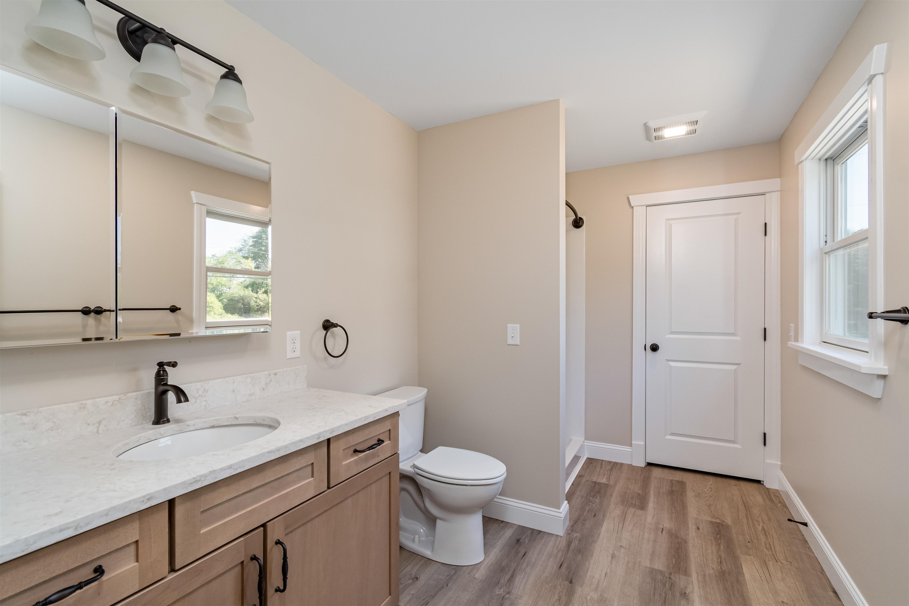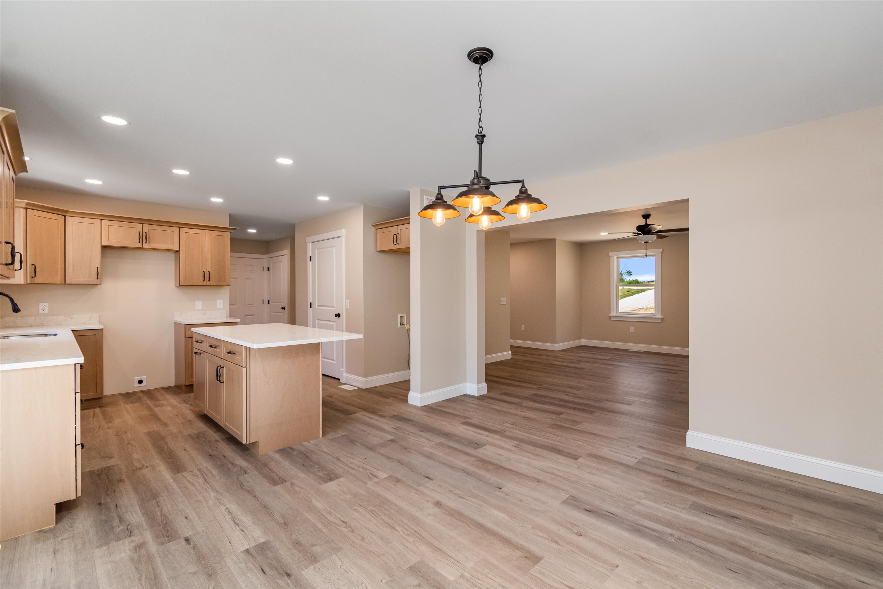 New construction meets Vermont lake views at this thoughtfully designed 3-bedroom, 3-bath colonial in St. Albans Town. Set on nearly a half-acre lot, this home blends classic style with modern comfort. The open-concept first floor showcases luxury vinyl plank flooring, abundant natural light, and a spacious kitchen featuring an oversized island, quartz countertops, and warm natural wood cabinetry—perfect for both casual meals and entertaining. A welcoming dining area flows seamlessly to the living room and out to the back deck for effortless indoor–outdoor living. Upstairs, the private primary suite impresses with a vaulted ceiling, large walk-in closet, and an en-suite bath. Two additional bedrooms and a second full bath complete the upper level. The second floor also boasts an unfinished bonus area awaiting the new owner’s personal touch, providing the opportunity for approximately 274 additional square feet of above-grade living space. A full insulated basement offers excellent storage or future expansion options as well, while a two-car attached garage provides convenience year-round. Energy-efficient construction with an appliance package offered. Enjoy beautiful glimpses of Lake Champlain from the property and quick access to the public boat launch just down the road. Hathaway Point is minutes from Bayside Pavilion, St. Albans Bay, and vibrant downtown St. Albans amenities.