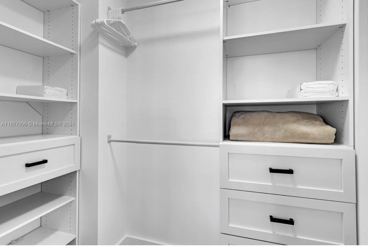 2 queen size beds in the bedroom. Security 24/7 self parking garage renovated pool area . Sauna and gym also a deli onsite Laundry room on each floor.