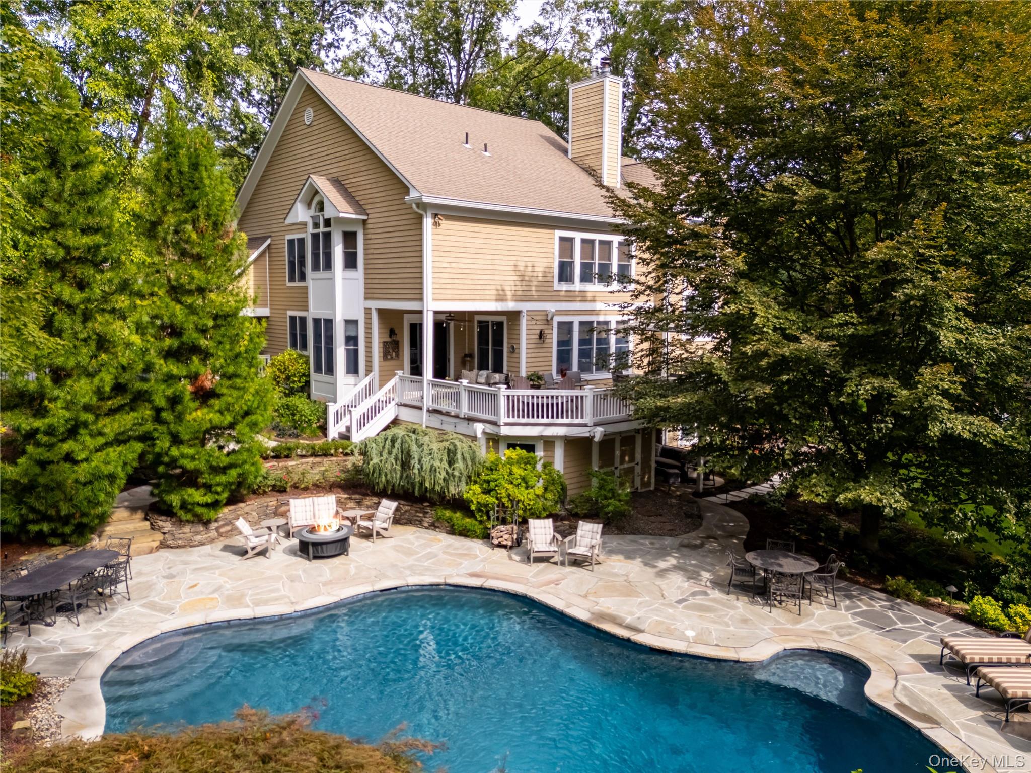 Exquisite custom built Colonial in the heart of the Hudson Valley. A truly unique property with charm and character, well designed for luxury living. This completely renovated 4 bedroom, 4. 5 bath Colonial with balcony and beautiful curb appeal boasts approximately 6, 750 square feet of living space, great for entertaining or as a perfect weekend home. The grand living room welcomes you with 14 foot ceilings, a stunning stone fireplace, and a shiplap ceiling. The elegant mezzanine home office adds sophistication, and the expansive formal dining room, with mahogany inlay flooring, is perfect for family gatherings. The beautiful chef’s kitchen features custom solid wood cabinetry, granite countertops, a center island, high-end commercial-grade appliances including a 48 inch Wolf double oven, Sub-Zero refrigerator, and a butler’s pantry with a beverage center, second sink, ice maker, and beverage fridge. The kitchen opens to a cozy family room with a second stone fireplace, shiplap walls, and large windows overlooking a spacious L-shaped deck, partially covered. The luxurious primary suite includes mahogany hardwood floors, a double sided gas fireplace, two custom walk in closets, a built-in dresser, a tray ceiling with lighting, and a private sitting room with a picture window. The en suite bathroom offers double sinks, a makeup vanity, soaking tub, seamless glass shower, and dramatic cathedral ceilings. A second primary suite features a cozy sitting room, a large bedroom with custom window seats, and a brand new full bath. The fully finished walkout basement offers high ceilings, a beautiful new second kitchen featuring a large quartz breakfast bar, updated full bath, second washer/dryer, spacious family room, dining area, new banister, and herringbone tile flooring ideal for extended family or guest quarters. Outdoor features include a newly refinished saltwater gunite pool with waterfall, Tennessee Crab Orchard stone patio, professional landscaping with lighting, circular driveway, another covered porch area, an oversized, heated 3-car garage with custom mahogany doors and electric car charger, and a covered storage area off the pool. Additional amenities include a full home generator, recessed lighting, crown moulding, alarm system, new pool cover, shed, and much more. Situated on over 3/4 of an acre of beautifully manicured property, and mature trees. Just one mile to the Palisades Parkway and only 45 minutes to NYC, this home offers the perfect combination of luxury, comfort, and convenience with nearby hiking, boating, golf, and access to the scenic 7 Lakes region. A truly one of a kind home schedule your private tour today.