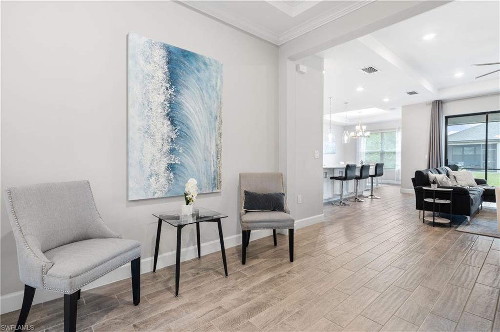 As you step inside, you’ll be greeted by an impressive oversized foyer that sets the tone for the sophistication within. The expansive great room draws you in with its open design, while wide sliding glass doors lead to a large screened lanai—ideal for entertaining or enjoying serene evenings outdoors.