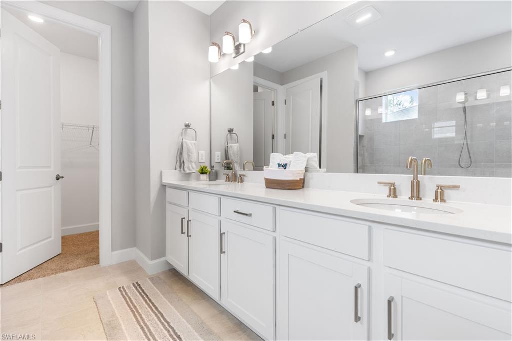 Your private retreat awaits in the luxurious primary suite, featuring a spa-like walk-in glass shower, dual sinks, and a spacious walk-in closet. Throughout the home, refined details—porcelain tile, tray ceilings, 8' tall doors, crown moldings, and designer lighting—enhance the modern elegance.