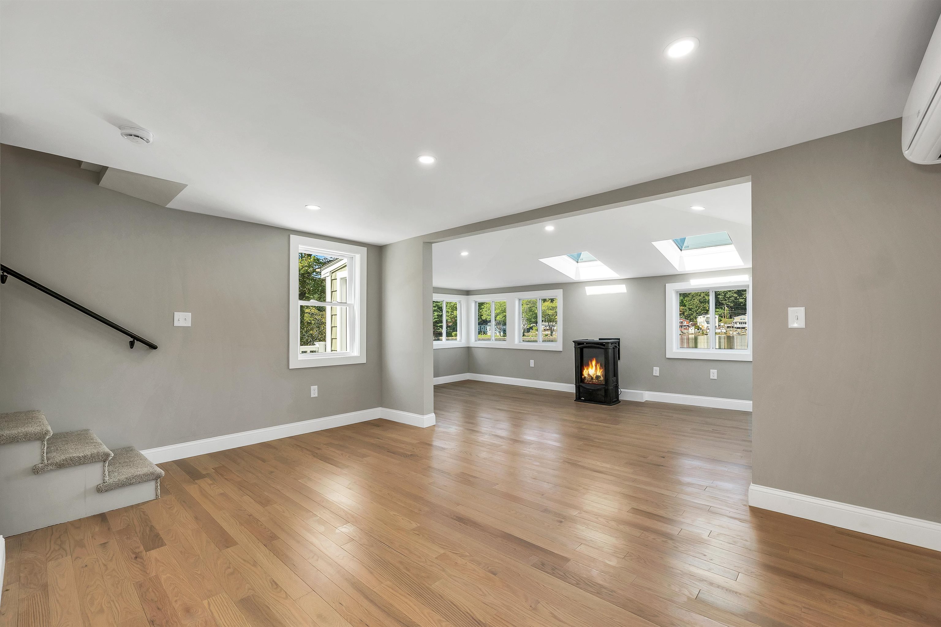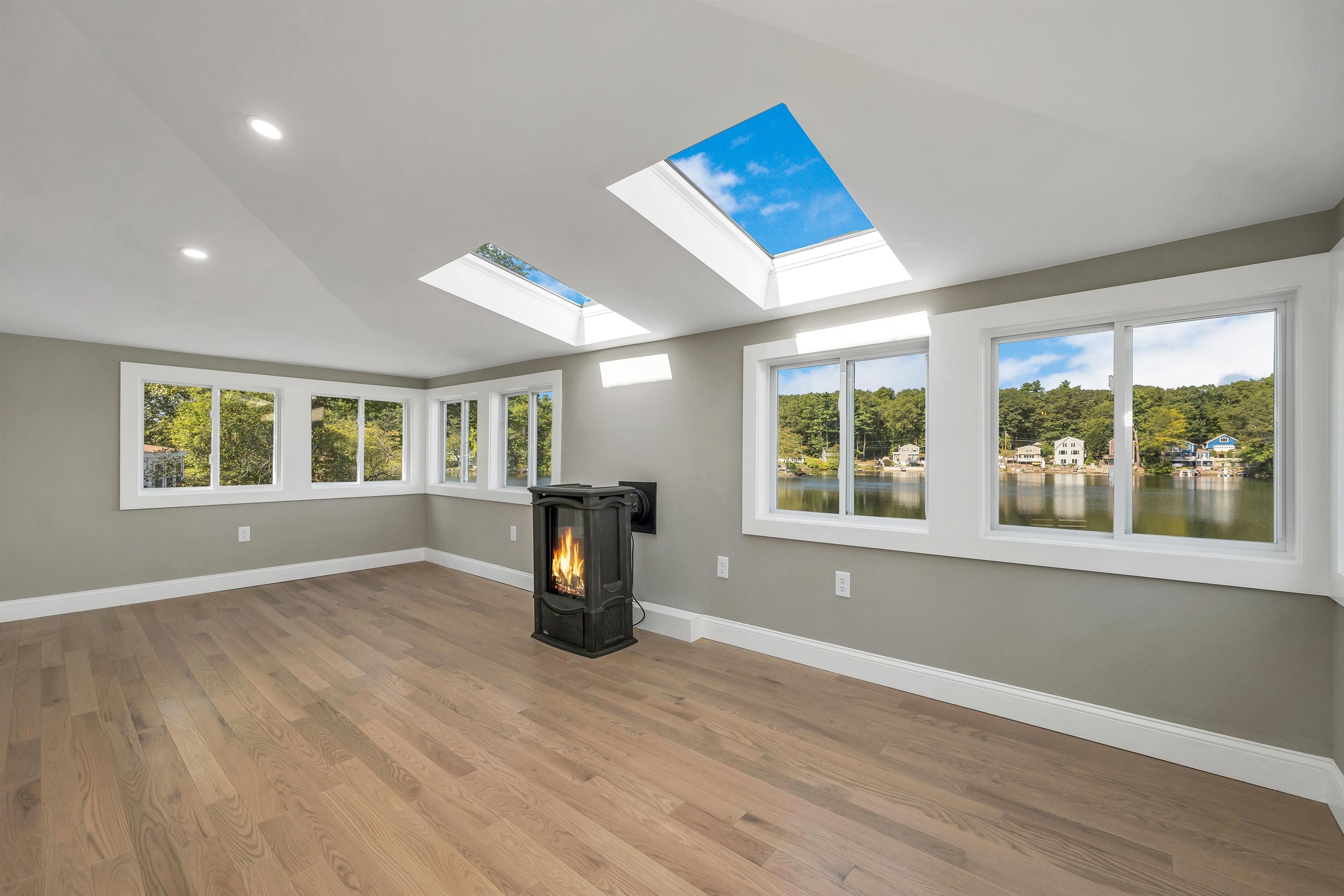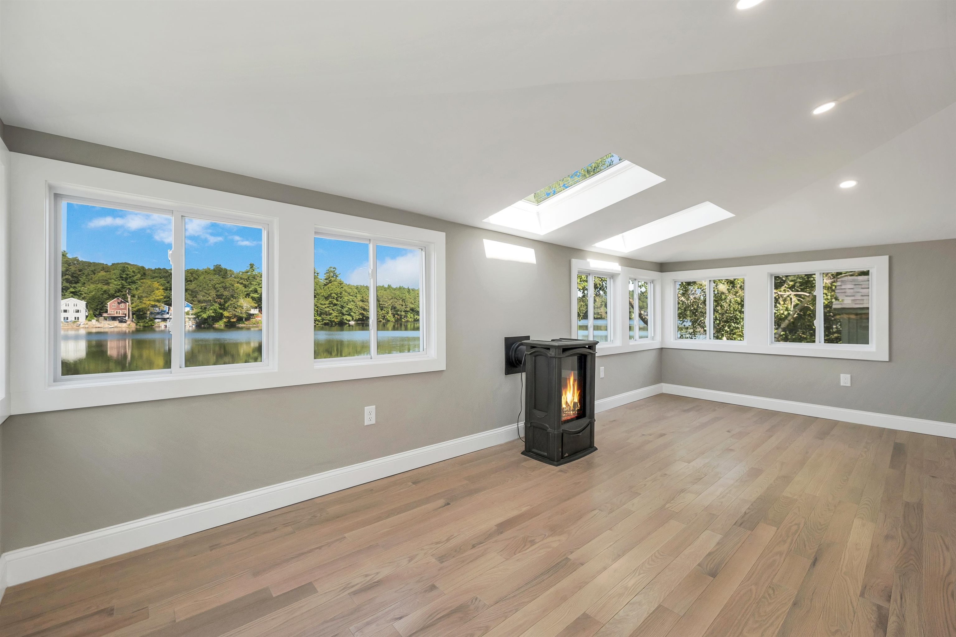 Welcome to Shadow Lake in Salem, NH! This stunning waterfront home has been completely remodeled from top to bottom and is truly move-in ready. Updates include a brand-new roof, siding, windows, driveway, septic system, skylights, doors, trim, and fresh paint throughout. Inside you’ll find all new flooring—wood, carpet, and tile—plus a gorgeous new kitchen with modern appliances, stylish bath with laundry, updated electrical, and efficient mini-split heating/cooling systems. A cozy Napoleon gas stove adds warmth and charm. Step outside to your private retreat with approximately 80 feet of water frontage, stone walls, a firepit, your own landscaped shoreline, and space for a dock. Enjoy boating, swimming, and year-round lakefront living right from your backyard. All this just 3 miles to Tuscan Village with endless dining and shopping, and only minutes to Route 93 for easy commuting. A rare opportunity to own a like-new waterfront property in one of Salem’s most convenient locations!