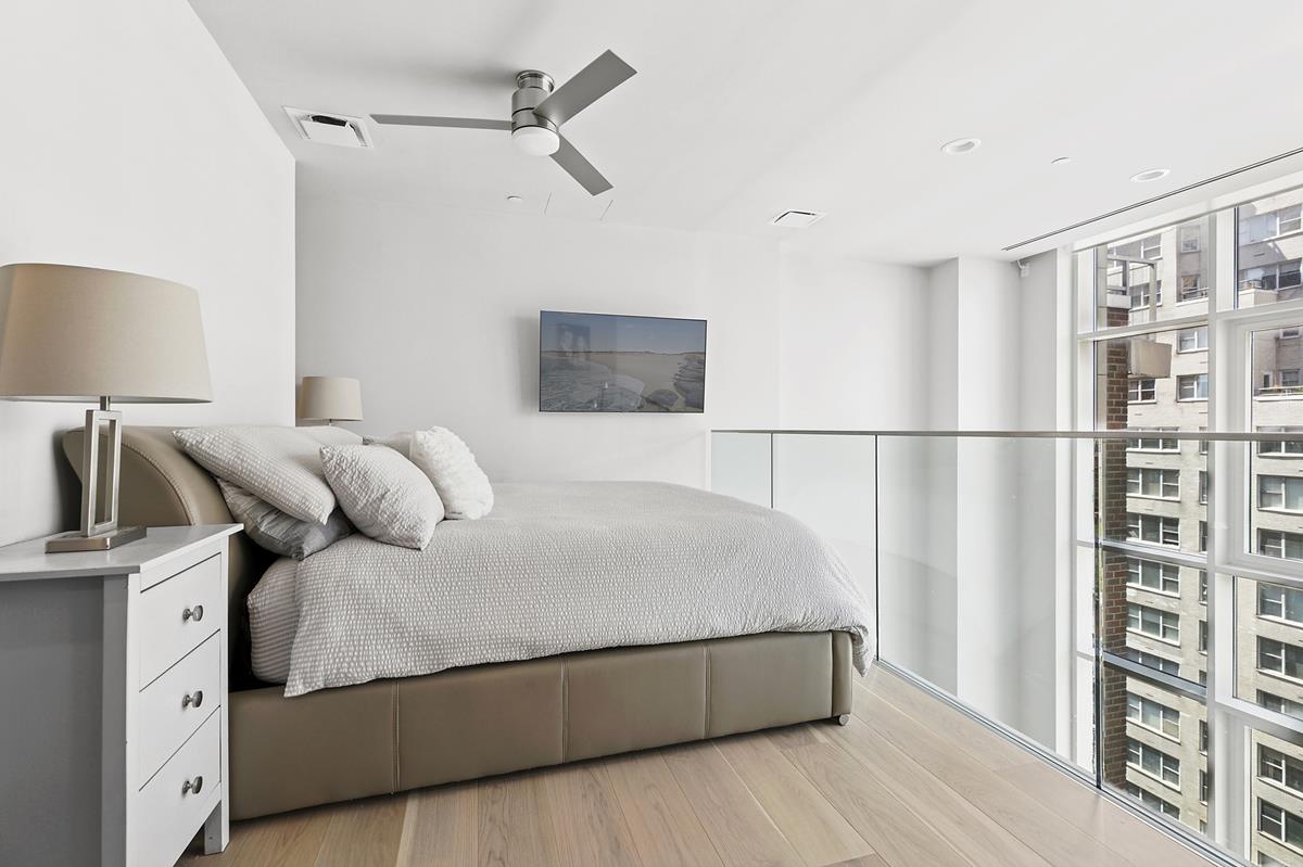 Welcome to an incredibly rare offering at The Leyton. This one-bedroom duplex residence is defined by soaring 19'6" ceilings, dramatic scale, and luminous floor-to-ceiling windows. This architecturally striking home combines loft-like proportions with sophisticated design details by renowned interior designer Elena Frampton. lt;brgt;The open-concept layout features a custom Poggenpohl kitchen outfitted with polished marble countertops and a full suite of integrated Gaggenau appliances, ideal for both everyday living and elevated entertaining. The lofted primary bedroom offers space for a king-sized bed and includes a spacious walk-in closet and a 5-piece ensuite bathroom finished with radiant heated floors and refined fixtures. A secondary full bathroom on the first floor is clad in Aged Dark Nature stone, accented by Fantini hardware. lt;brgt;lt;brgt;Framed by panoramic exposures, this one-of-a-kind residence captures beautiful city views. The light moves effortlessly through the home from sunrise to sunset. Every detail has been considered for modern comfort, with high-performance windows, bespoke air systems, and hydronic radiant floor heating throughout. lt;brgt;Residents of The Leyton enjoy access to a suite of refined amenities curated by Alexandra Champalimaud, whose work draws inspiration from the grand boutique hotels of the Upper East Side. On the 24th floor, the Brandy Room offers a series of indoor and outdoor spaces for entertaining, including a cocktail terrace, a private dining room with a fully equipped butler's pantry, a solarium, views of Central Park and an expansive Sun Terrace amp; Grille overlooking the East River. lt;brgt;Apartment comes with a licensed storage unit. lt;brgt;lt;brgt;The building also features a private fitness studio with top-tier equipment, a 24-hour attended lobby, concierge services provided by BHB, and conveniences such as private storage, bicycle storage, mail/package rooms, and a dedicated Paw Spa for four-legged residents. lt;brgt;lt;brgt;Positioned just off East 63rd Street, The Leyton stands as a distinctive new landmark on the Upper East Side. Designed by architect Manuel Glas, the building evokes a timeless elegance with Art Deco influences, offering just 38 finely crafted residences in one of Manhattan's most exclusive enclaves.