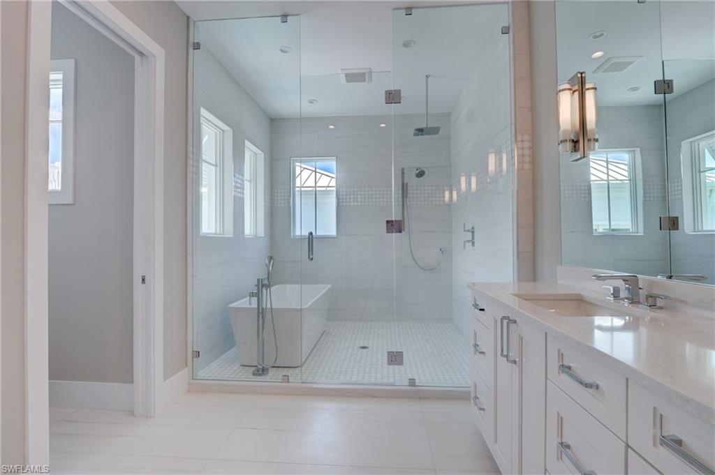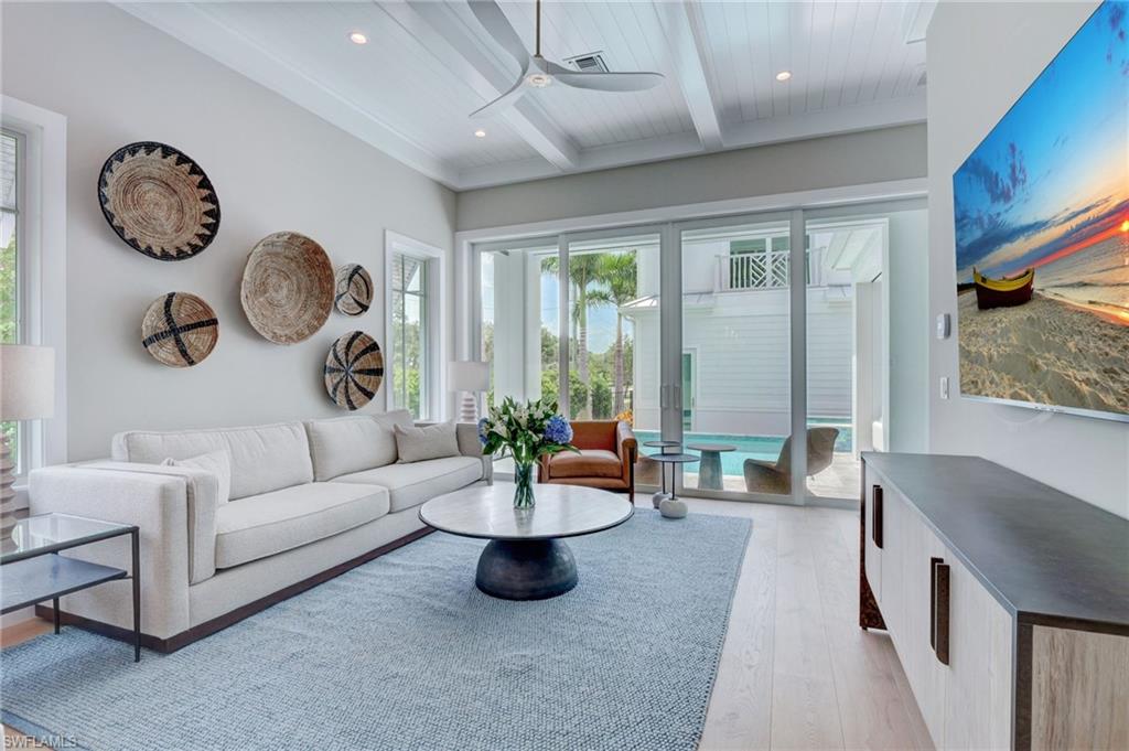 Enjoy the heart of Olde Naples in fantastic 888 10th Ave S! The home features four bedrooms in the main house and a separate private guest cabana above the garage. This spacious floor plan can easily accommodate a large family as well as your guests. Many of the stunning features of this home include 11 foot ceilings, Legno Bastone Flooring, UMI quartz countertops, Thermador Professional Series Kitchen appliances. Generous master bedroom suites and laundry facilities are located on both the first and second floors. The outdoor living space includes an outdoor kitchen that has a grilling area, a gas fireplace, retractable screens and sundeck which wraps the beautiful pool and raised spa. Three additional balconies provide some views of Naples Bay as well as the surrounding area and add additional space to this already fabulous floor plan. Located in truly one of the best areas in Olde Naples. From here, one can easily walk a few short blocks to Historic 5th Ave, 3rd Street S, and The City Dock.