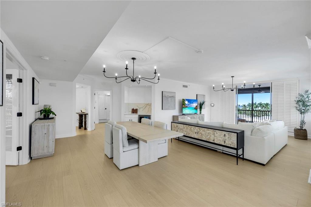 Rare Annual Rental! Exquisitely updated and elegantly appointed, this spacious 3-bedroom, 3-bath corner residence is located in the highly sought-after Mansion La Palma within Bay Colony, one of Naples’ most prestigious guard-gated enclaves. Offering over 2, 500 square feet of light-filled living space, this end unit showcases an open great-room floor plan with walls of windows that invite in natural light and capture peaceful views of the surrounding lush tropical landscape. The residence has been thoughtfully renovated with timeless style and modern comforts, featuring a chef’s kitchen with custom cabinetry, quartz countertops, and premium appliances, along with designer lighting, fresh paint, and no-carpet flooring throughout. The spacious living and dining areas flow seamlessly to an expansive screened lanai, ideal for entertaining or relaxing while enjoying the evening sunsets. Two additional private balconies extend the indoor-outdoor lifestyle, providing multiple spaces to unwind. The generous primary suite includes a spa-inspired bath and custom walk-in closets, while two well-appointed guest suites ensure privacy for family and friends. Mansion La Palma residents enjoy their own private amenities, including a pool, spa, and outdoor grilling area, all within a boutique mid-rise setting. Bay Colony offers an unparalleled lifestyle with the Bay Colony Beach Club, a private beachfront retreat with elegant dining, a poolside bar, and exceptional service. The community also features a state-of-the-art tennis facility, while residents additionally enjoy access to Pelican Bay’s two beachfront dining clubs, attended fitness and wellness centers, and miles of pristine private beach. With its prime location just minutes to world-class shopping, dining, and the cultural attractions of Naples—including the upscale Waterside Shops—this residence represents a rare opportunity to enjoy resort-style living in one of the area’s most coveted communities.