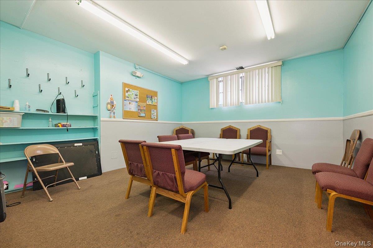 This unique commercial property offers a rare opportunity to own a well-maintained, freestanding building currently operating as a church. Situated in a high-visibility and easily accessible location in Hicksville, this property is ideal for continued religious use or conversion to a wide range of commercial or community-oriented purposes. The building is approximately 10, 044 sqft. and sits on a generous 36, 154 sqft lot, featuring 33 parking spaces for staff and visitors. Inside, you'll find a spacious sanctuary with seating for 270, multiple private offices, classrooms, a fellowship hall/multi-purpose room, restrooms, and a fully equipped commercial kitchen. The building has a security system that includes keycard entry, security cameras and alarm. Updates include brand new 50 ton CAC for heating and cooling (only 3 years old), and phone-controlled light system. Whether you're an organization looking for move-in ready space or a developer seeking a distinctive property with history and potential, this building is a must-see.