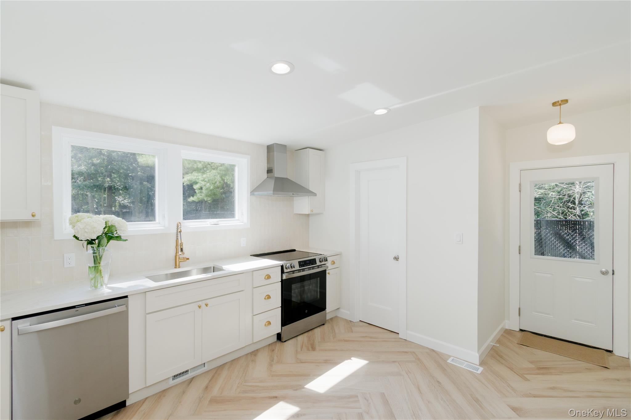 Welcome to this beautifully renovated historical colonial in East Moriches, surrounded by the charm of farms, nurseries, and vineyards. This three-bedroom, two-and-a-half-bath home combines timeless architecture with modern updates throughout. Inside, you’ll find all-new oak floors, a bright farm kitchen, and a primary suite with private bath. The home has been completely refreshed with a new roof, new windows, all-new sheetrock, and insulation for efficiency and comfort. Mechanical upgrades include 200-amp electric service, a new electric heat pump with forced hot air heat and central AC, all new re-built in-ground pool, all new pool equipment and liner . unfinished basement provides excellent storage space and houses the home’s utilities. Set in a desirable East Moriches location, close to beaches, marinas, and the East End’s renowned wine country, this home is truly move-in ready