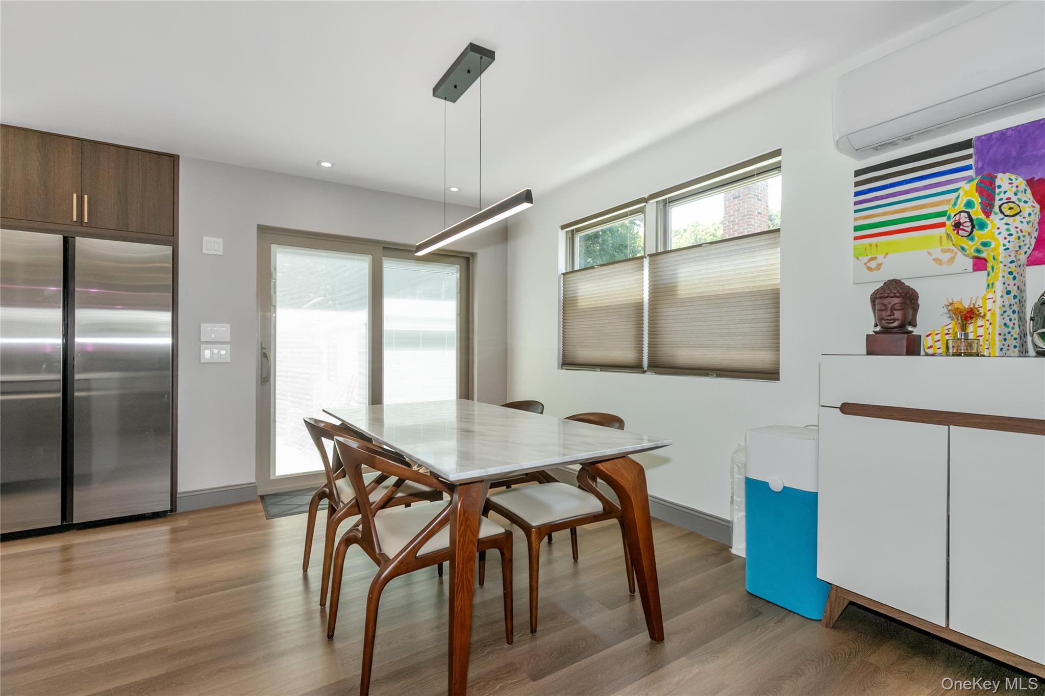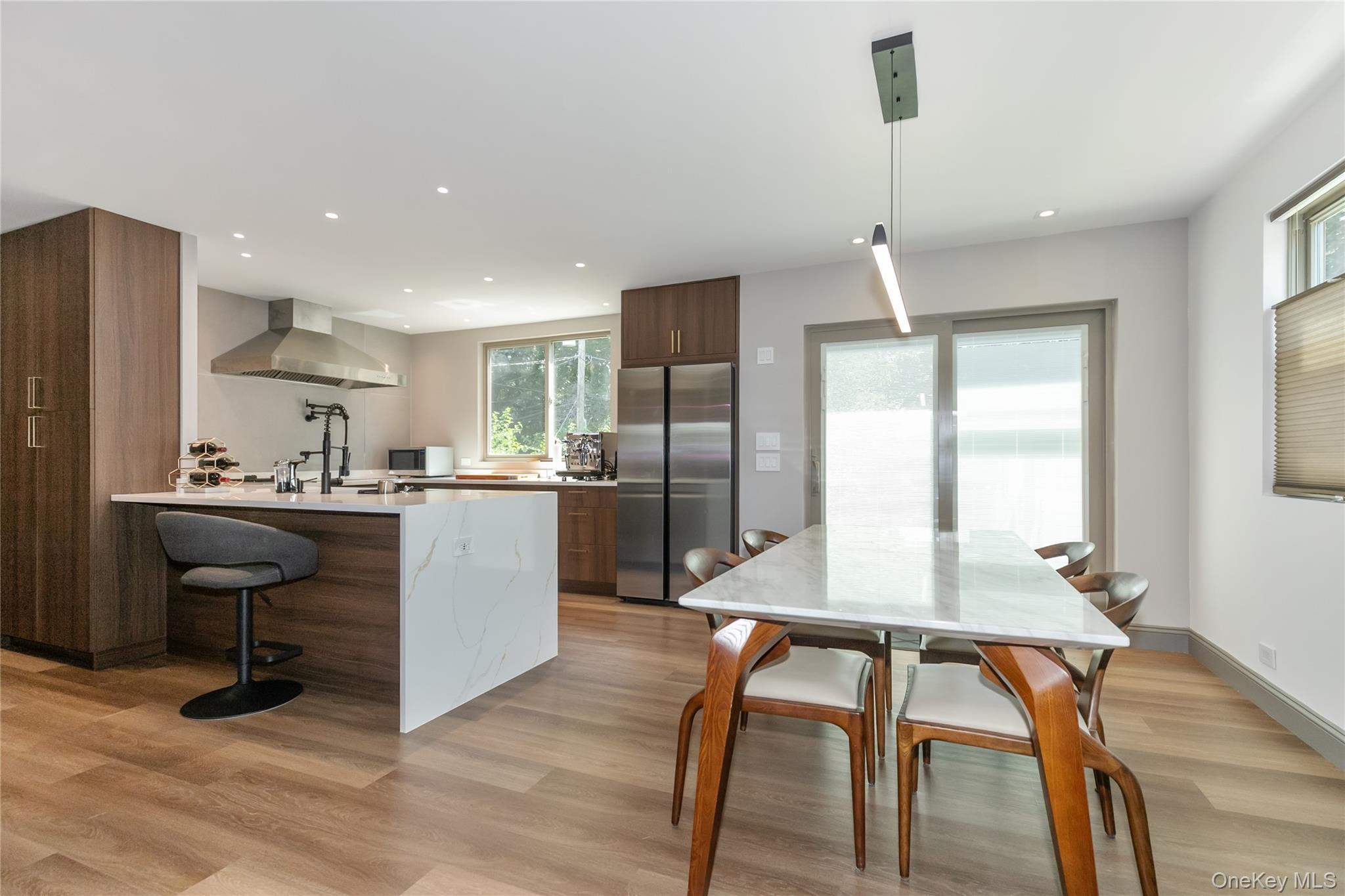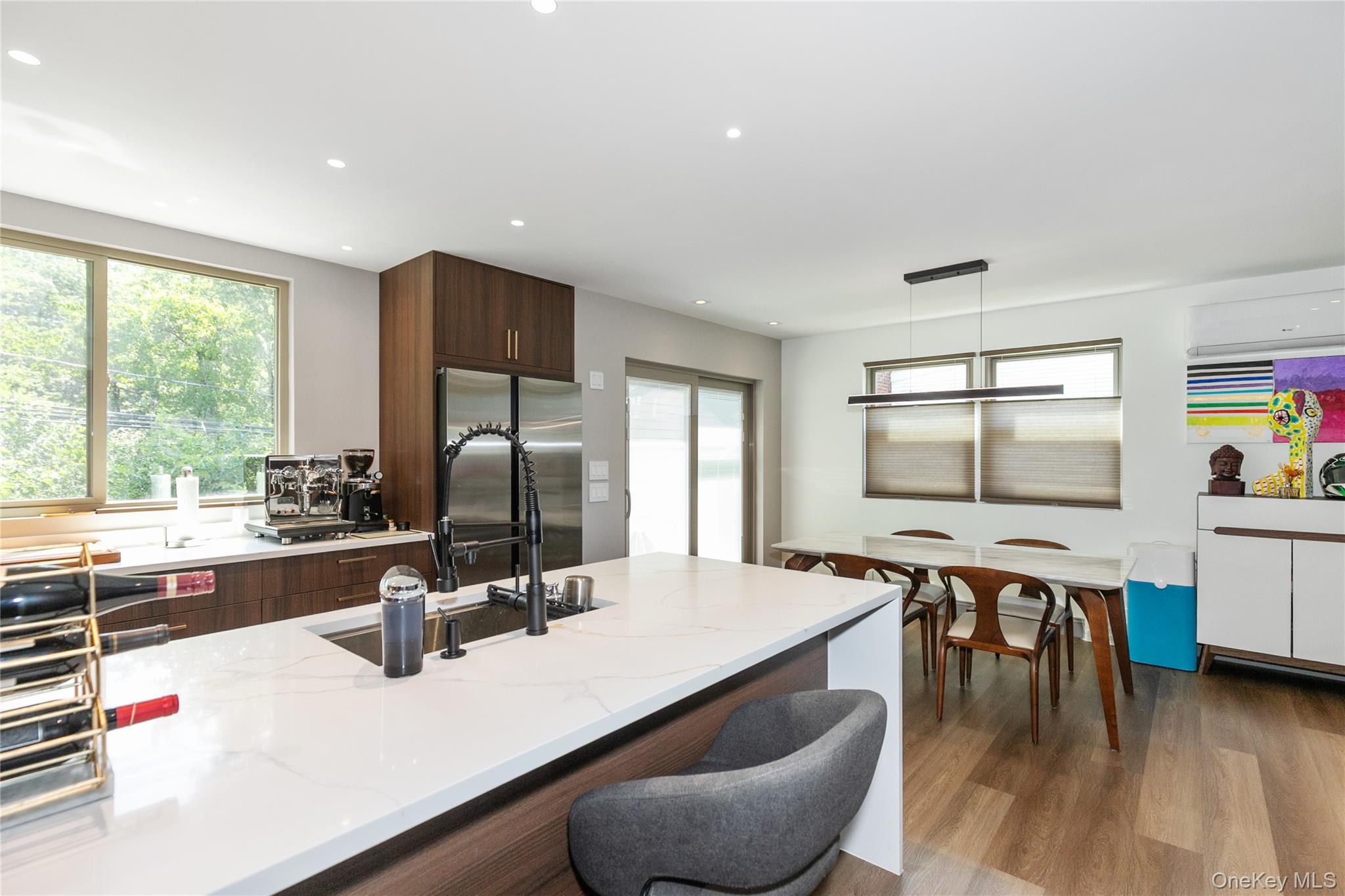 Fully Gut Renovated Cape in the Heart of Albertson Welcome to this beautifully renovated Cape, ideally located on a quiet, tree-lined street in the heart of Albertson. Every detail of this home has been thoughtfully upgraded, offering a perfect blend of modern comfort and timeless design. Inside, the home features new flooring throughout and 7-zone ductless split units for personalized climate control. The bathrooms are outfitted with radiant heat and smart toilets, combining comfort and convenience. The layout offers 3 spacious bedrooms, including a stunning first-floor primary suite with a spa-like en-suite bathroom complete with body jets and a cascade waterfall shower. The chef’s kitchen is a true showpiece — outfitted with a 48-inch exhaust hood, Miele gas wok burner, Wolf induction cooktop, and a single wall electric oven, providing the perfect setup for any cooking style. Additional upgrades include spray-foam insulation behind the walls and brand-new plumbing and electrical systems throughout the home. The recessed lighting has been updated with efficient 2-inch fixtures, and a high-efficiency boiler ensures year-round comfort. Outside, the home boasts new vertical siding with ¾-inch foam insulation and a brand-new roof. Smart exterior lighting surrounds the property, adding both convenience and curb appeal. The location is just as impressive — a 5-minute walk to the LIRR and the nearby Botanical Gardens, perfect for peaceful strolls year-round. You’re also just minutes from two major parkways, as well as local shops, restaurants, and supermarkets, making daily living both easy and convenient. This is a move-in ready home with all the bells and whistles — a rare find offering efficiency, luxury, and location in one complete package. Showings are by private appointment only,