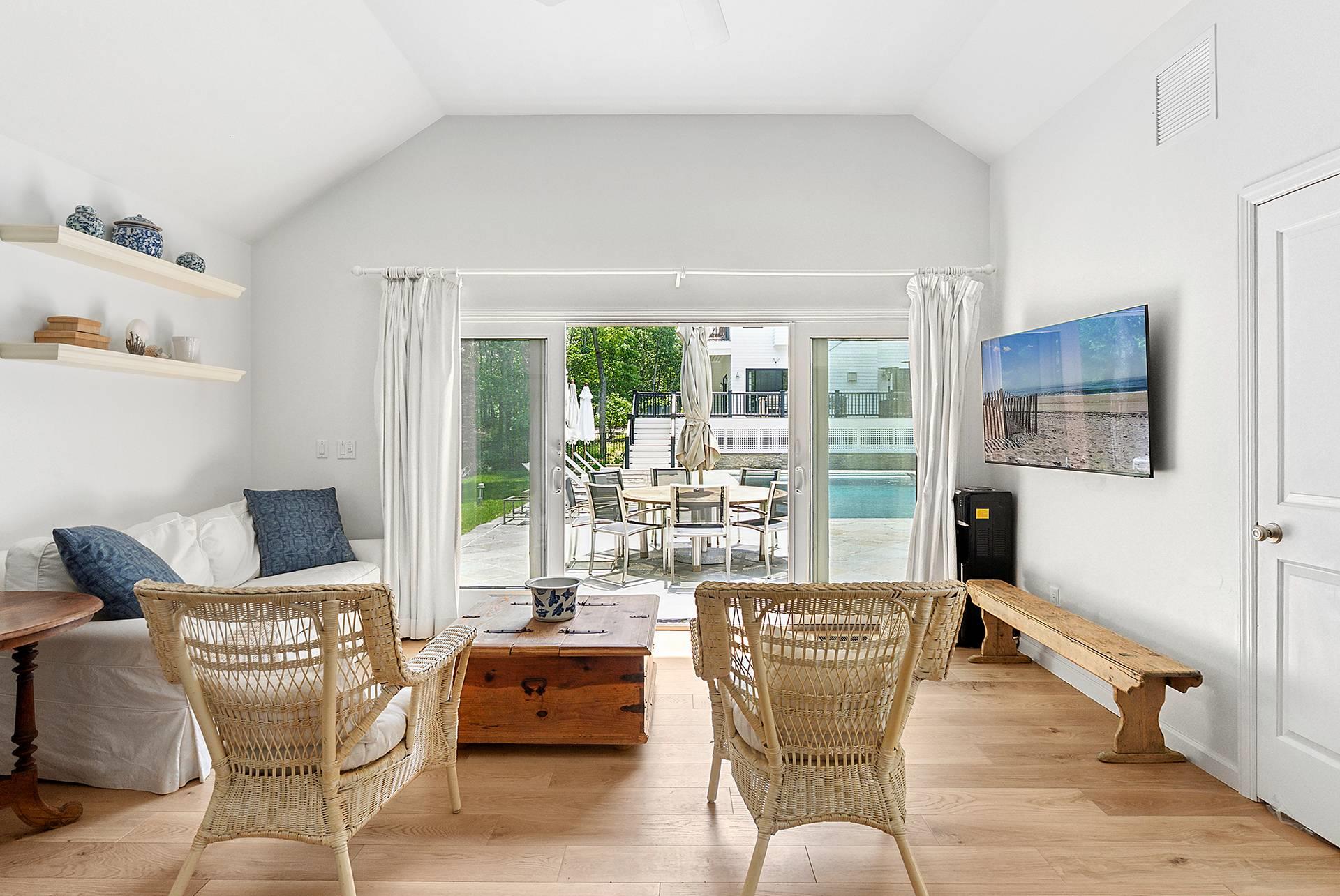 Down a long driveway, this wonderfully appointed home situated on 2. 5+/- acres, approximately 8, 000 sq. ft in total offers exceptional privacy and seclusion in Water Mill. The compound features a beautiful main house, a guest cottage, and a pool house, this newly-updated traditional offers 5 bedrooms and 8. 5 baths. The main house features an oversized gourmet kitchen with stainless steel appliances with an open floor plan to the spacious living room with a fireplace. The dining area features several French doors leading to the deck, which overlooks the pool area. Additionally, the main floor features a den with a fireplace, powder room, and a full bath with access to the backyard. The second floor features 2 primary suites. One features a fireplace, access to the balcony, a spa bath with a floating tub, and a 6-foot shower. The other spacious primary suite also features balcony access. Two additional ensuite bedrooms and a laundry room complete the second level. The 1900+/- sf finished lower level with 10ft ceilings features a large recreation room with a kitchenette, game/playroom, gym, a bedroom, full bath, and a laundry room. Additional and both separate, the 370 +/- sf cottage offers an office, yoga room and a full bath. The 370+/- sf pool house features a lounge, kitchen, laundry, and full bath, both with storage space on the lower level. The private and quiet backyard with an extensive blue stone patio surrounds a heated gunite pool with plenty of space for entertaining. An oversized 1. 130 sq. ft 3-car garage and an elevator shaft, all ready for an elevator installation, completes this lovely Hamptons home complete this lovely Hamptons home. Nestled between Water Mill and Southampton, just a short distance to ocean beaches, and moments away from top-tier Hamptons boutiques and restaurants, this home offers convenience and privacy. Listing ID: 907740