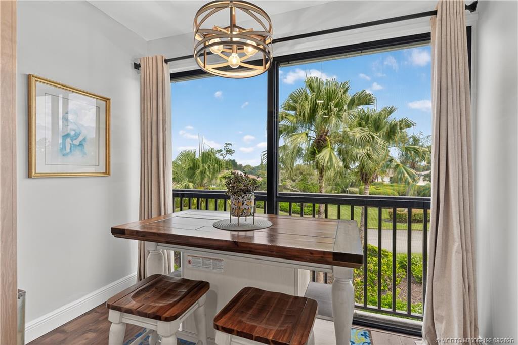 FURNISHED, fully updated, 3-bedroom, 2 bath, second floor condo, offering one of the best views overlooking Mile Lake and hole 15 of the Golden Marsh Course. Beautiful hard wood floors throughout, updated kitchen with stainless steel appliances, modernized baths, impact windows, custom interior doors, plantation shutters, ceiling fans throughout, wet bar in 3rd bedroom/den, high ceilings and so much more. Car port directly out the front door & walking distance to community pool. Harbour Ridge is a private, mandatory membership community featuring 2 beautiful 18-hole championship golf courses, 9 Har-Tru tennis courts, pickle-ball courts, impressive fitness facility w/ pool, sprawling waterfront clubhouse w/ 3 dining rooms, 2-mile riverfront walking path, biking, yacht club, and marina with boat slips available for additional fee. $125, 000 Equity ($1, 000 Refundable) due at closing. Monthly HOA Fee includes Club Dues, Trail Fees, POA, Village HOA, Capital Funds Fees & appropriate taxes.