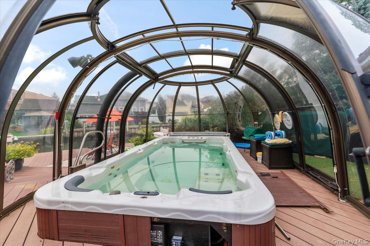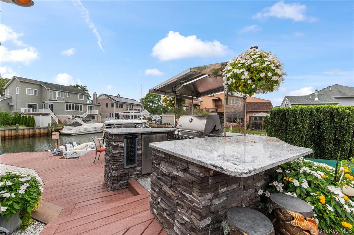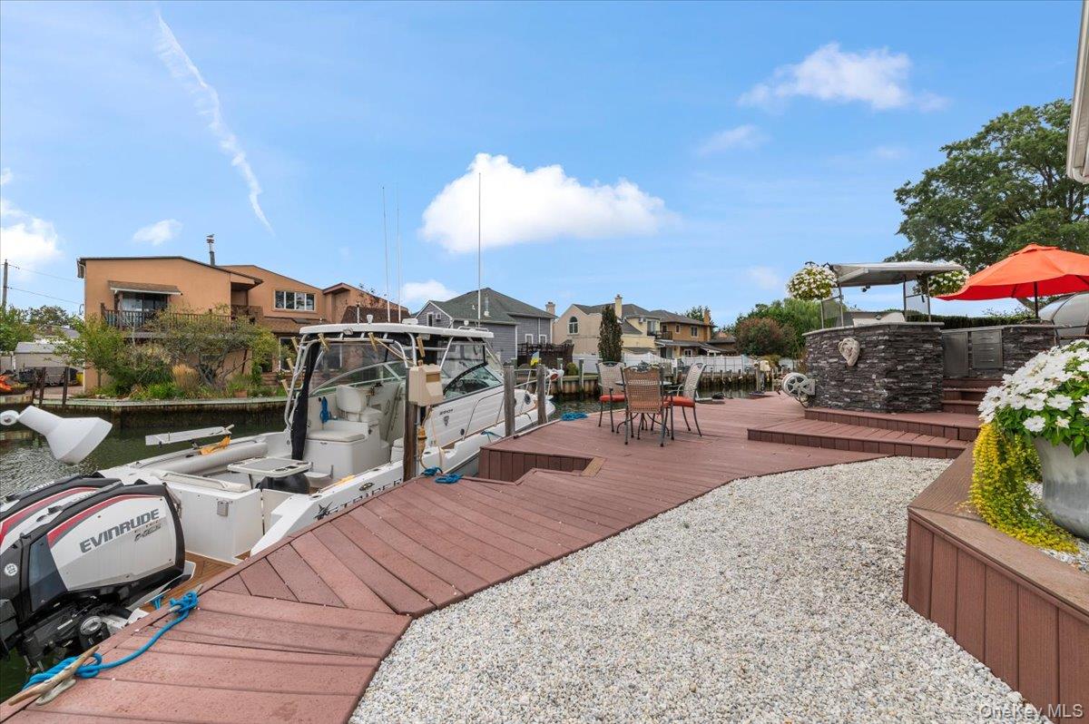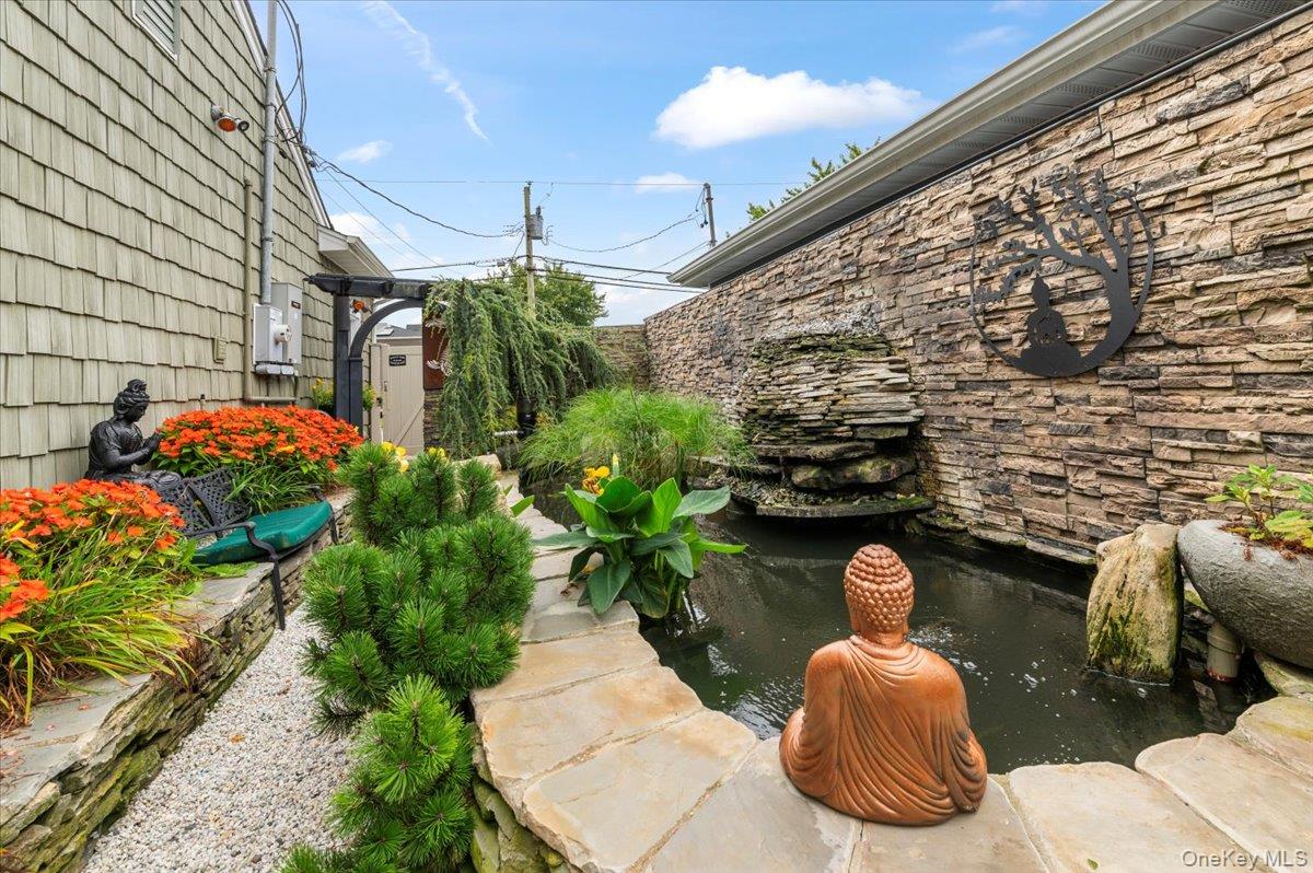 Waterfront Living in Massapequa Welcome to this two-bedroom waterfront retreat—an entertainer’s dream filled with natural light and stunning details throughout. The open-concept kitchen flows seamlessly into the living spaces, perfect for hosting gatherings large or small. This home offers two gas fireplaces, custom moldings, and porcelain tile floors with radiant heat, combining comfort with elegance. Three skylights brighten the home, while trex decking invites you to enjoy outdoor living with breathtaking water views and a private enclosed spa pool. Enjoy peace of mind with a 6-year-old roof, gas heating & cooking, and a 10-year-old bulkhead. The property spans 80x100 and features a serene koi pond, creating a true backyard oasis. With its unbeatable combination of modern updates, waterfront lifestyle, and timeless charm, this home is ready for you to move right in.