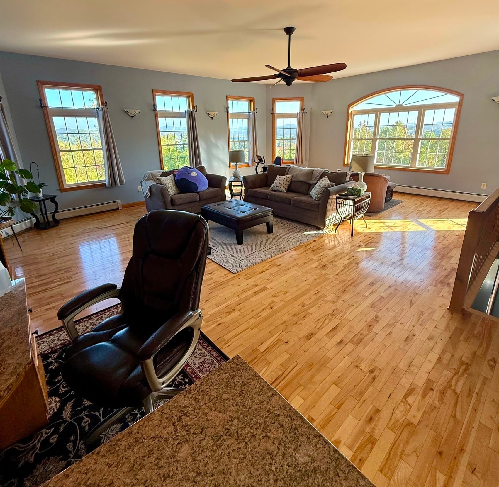 Views, Views, Views! See Willoughby Gap from your in-ground heated pool, powered by an electric heat pump and a 9. 6 kW DC ground-mounted solar array (owned outright, 2022 install). $35+/- average monthly electric bill for entire property. Too many features to list. This is a must-see home! 80 Roberge St in Memphremagog Views is a with a 2-story addition, featuring 4, 250+ SF of home with over 4, 000 SF finished, and 3-car garage. Sits on a double lot totaling 1. 1 acres. Expansive views looking out over South Bay of Lake Memphremagog towards the Willoughby Gap. 5 beds, 4 baths (3 full, 1 half), The main floor features a beautiful great room, eat-in kitchen/dining/den w/island, formal dining room w/outside deck, bedroom, full bathroom, and large mudroom. Formal dining flows into the great room which is the main level in the addition. Primary bedroom suite sits above the great room and features exposed beams, vaulted ceilings, whirlpool tub, walk-in closet, large bathroom, and a private balcony with incredible views. The rec room/wet bar is the lower level in the addition; 3-tap insulated keg room, 1/2 bath, wooden bar and stools included, pellet stove, walks out to patio/grill area with fire pit. Basement also includes 3 bedrooms, full bath, laundry, den. The backyard features a fully fenced in-ground heated pool, large patio, multiple gathering areas. Very well maintained and landscaped.