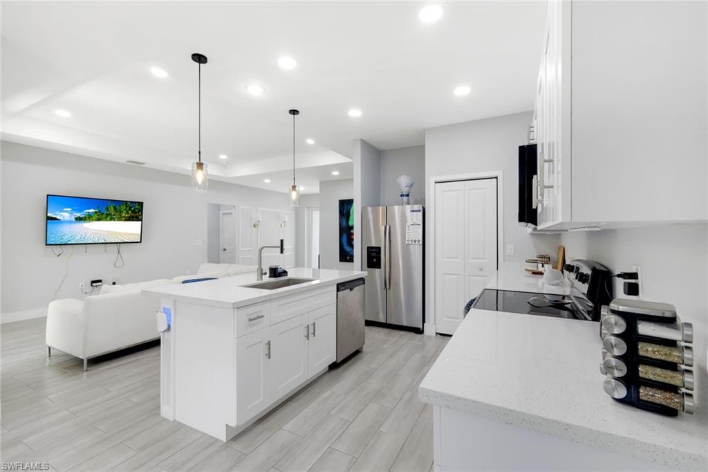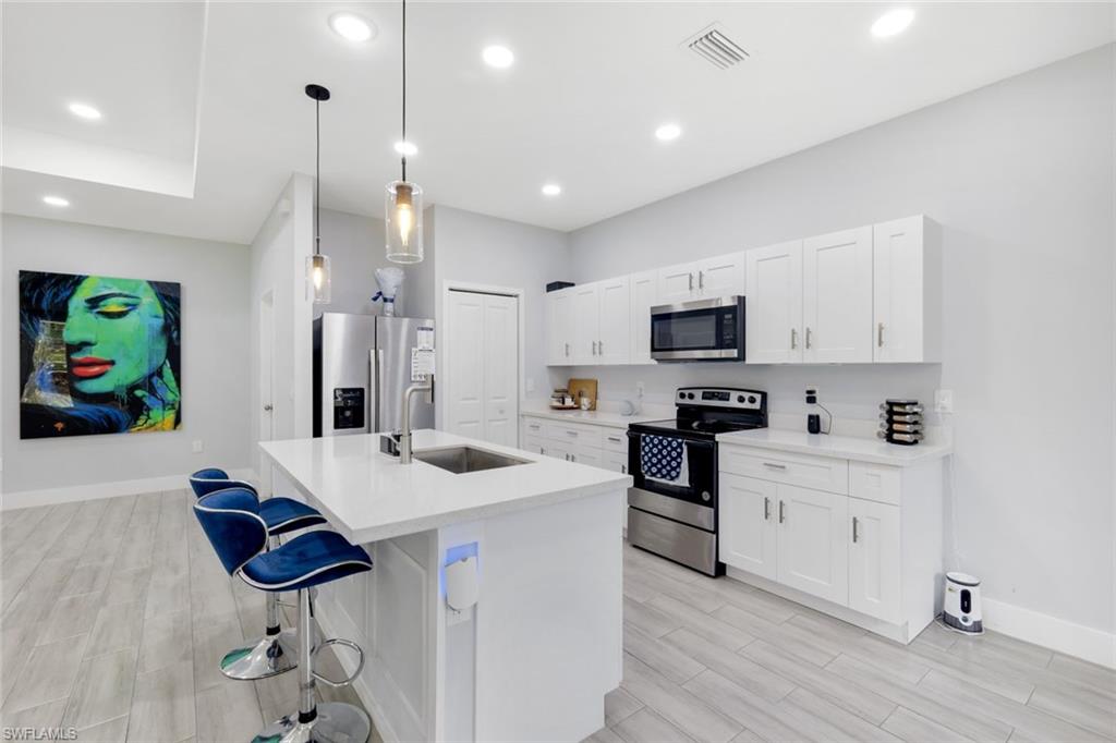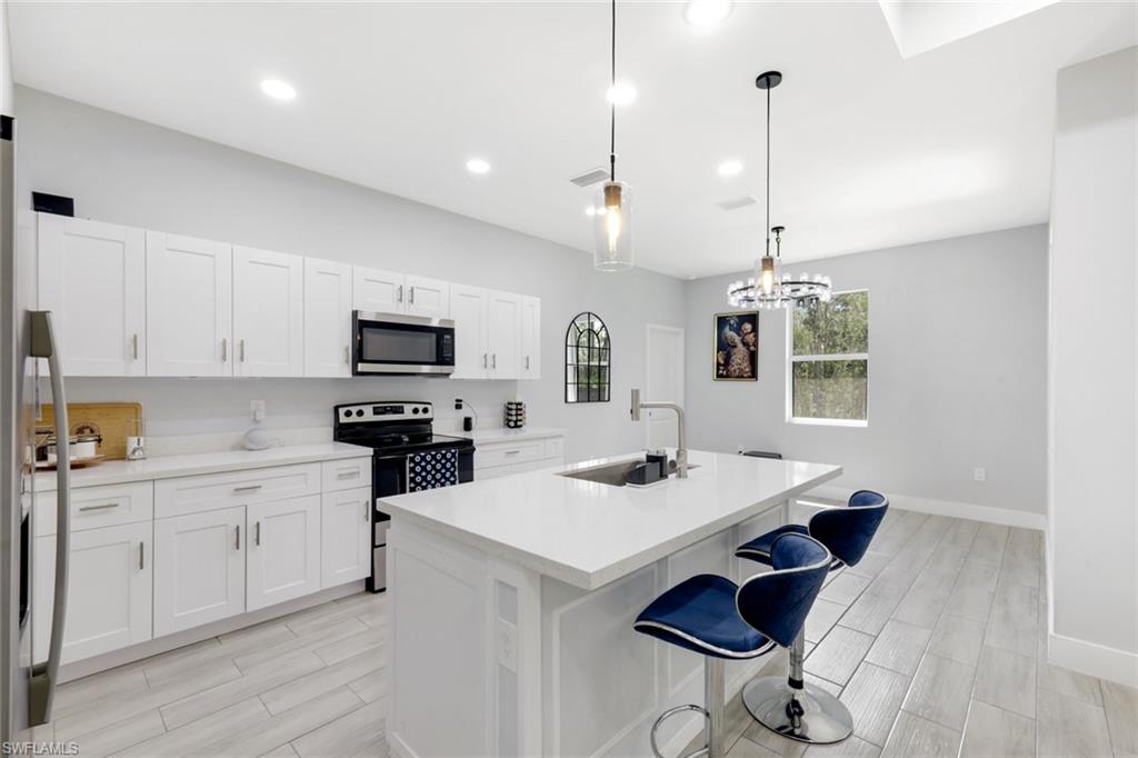 Beautifully designed 4BR/3BA home plus a spacious recreation room with its own private bath, ideal for guests or extended family. Features include impact windows, quartz countertops, wood-style porcelain tile flooring, and a paved driveway. Large lot offers space for a pool. Conveniently located near SR 82 with easy access to Fort Myers, shopping, and schools. Don’t miss this versatile home—schedule your showing today!