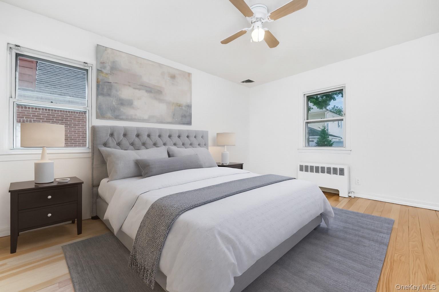 Affordable, refurbished, spotlessly immaculate, meticulously maintained, and lovingly cherished by the same family for over 60 years. This custom 4-bedroom, 1. 5-bathroom brick cape is situated in the desirable Hempstead Manor II enclave of the Village of Hempstead. Freshly and neutrally painted throughout, the home features sparkling natural hardwood flooring that brightens and unifies each space. Newer windows, 6 panel doors with crystal doorknobs, Leviton Decora receptacles, and new overhead lighting fixtures throughout. First Floor A bright, spacious living room with ample wall space and a windowed, hanging coat closet sets the tone. The formal dining room impresses with a duet of custom-built Queen Anne curio cabinets flanking the southern wall. The pristine, highly functional eat-in galley kitchen presents modernized, white, framed cabinetry with brushed nickel hardware, shining retro countertops, stainless sink, and a new, full suite of branded stainless appliances. The roomy primary bedroom offers double closets and a combo ceiling light/fan, while a second bedroom and a pure white full bathroom with updated lavatory and accessories complete this level. Second Floor A large entrance hall leads to two oversized bedrooms with abundant closet space and Lifeproof vinyl wood flooring, offering flexibility for family, guests, playroom, or a home office. Basement The expansive, full, open basement provides ample storage and features new Lifeproof vinyl wood flooring along with a half bath which features trendy geometric wallpaper with white half wall wainscot. Additional amenities include a utility/workroom with washer, dryer, sink, gas boiler, free-standing gas hot water heater, and a hanging wardrobe cabinet. Additional Features • Central AC for year-round comfort • Detached oversized one-car garage with low-maintenance concrete driveway • Ample off-street and on-street parking • Partially fenced backyard with propane grill included as a gift Location Perfectly positioned within proximity to Hofstra University’s back gate, Hempstead Turnpike, Southern State Parkway, Meadowbrook Parkway, Eisenhower Park, shopping, dining, and entertainment. Convenient for public transportation. Zoned for Uniondale Schools.