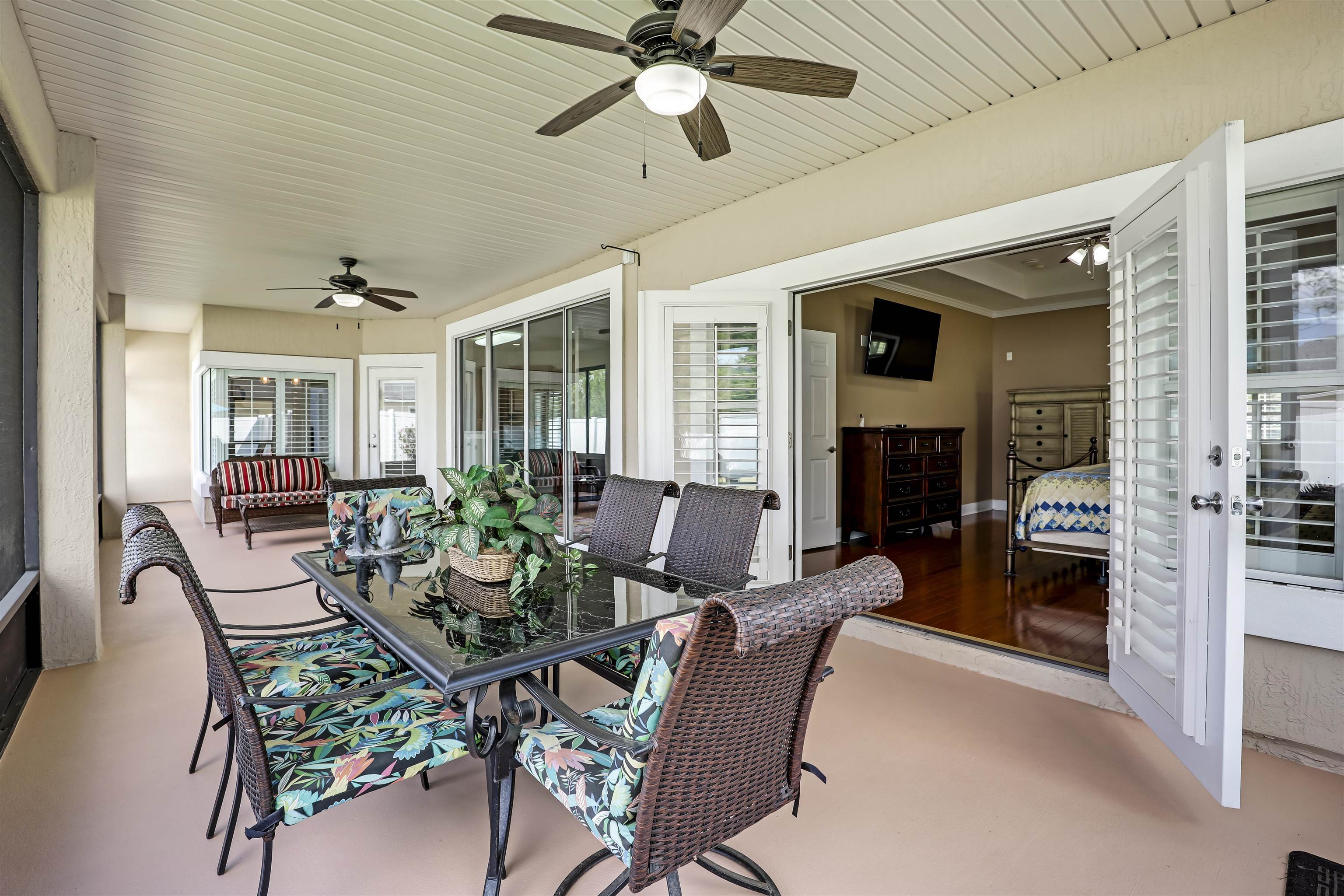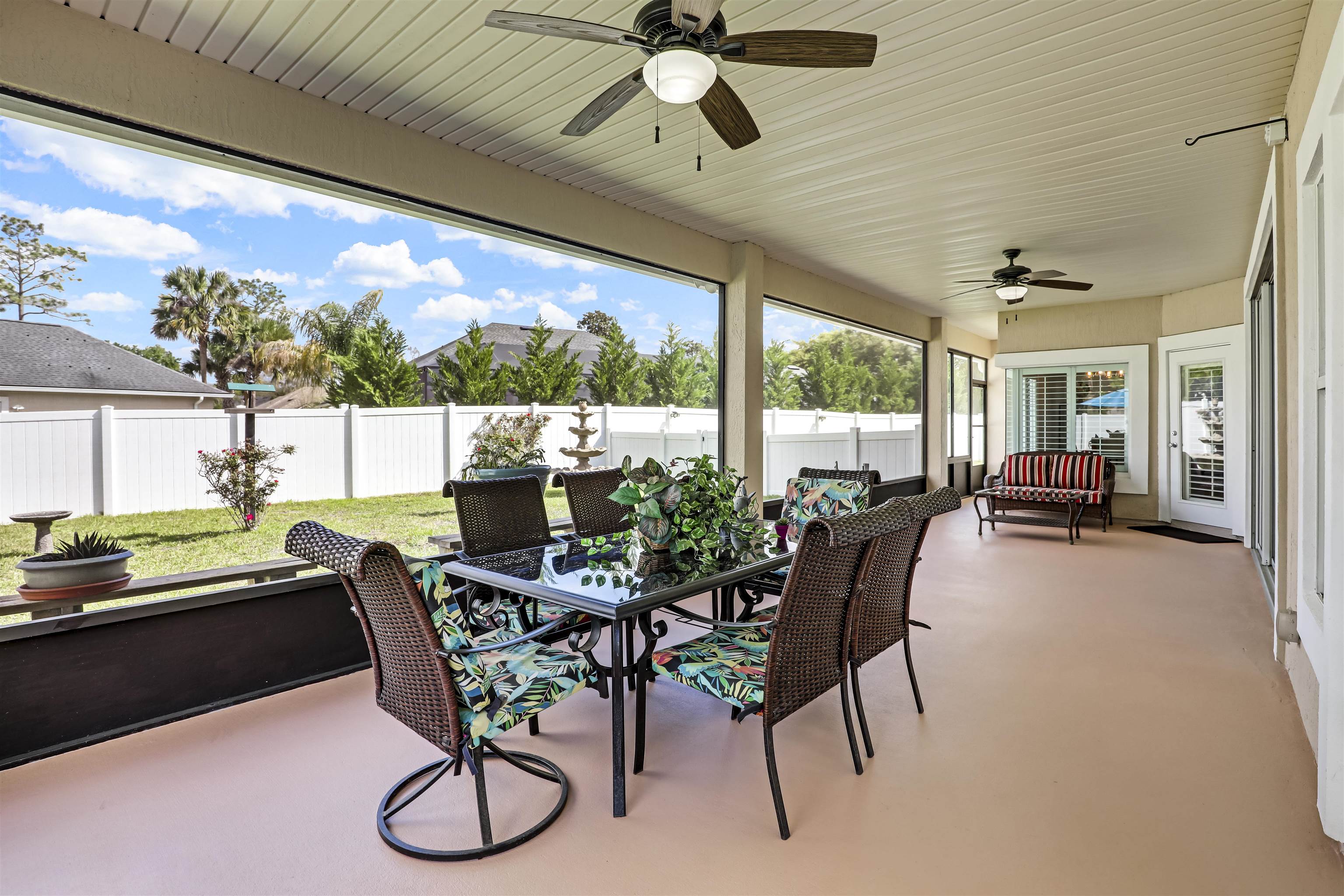 **GATED GOLF COMMUNITY**HUGE LOT**UPDATED** Discover elegance and charm with this 4 bedroom/3 bathroom home situated in the desirable golf community of Cimarrone. Enjoy the SPLIT BEDROOM FLOOR PLAN designed for privacy. The OPEN CONCEPT of the living areas is ideal for entertaining friends and family. All throughout the home, the windows let in tons of NATURAL LIGHT, creating an inviting space. The PLANTATION SHUTTERS offer a sense of coziness, and the REMOTE BLINDS on the doors are convenient for privacy. Enjoying preparing and making meals in the large kitchen equipped with a middle island, and a WALK IN PANTRY. The master en suite offers a WALK IN SHOWER as well as a tub, and two WALK IN CLOSETS. The master also has its own access to the lanai. The main living areas face the HUGE SCREENED-IN LANAI, offering convenient indoor-outdoor living. This home boasts two backyards that are PRIVACY FENCED. Don’t miss out on this amazing opportunity!