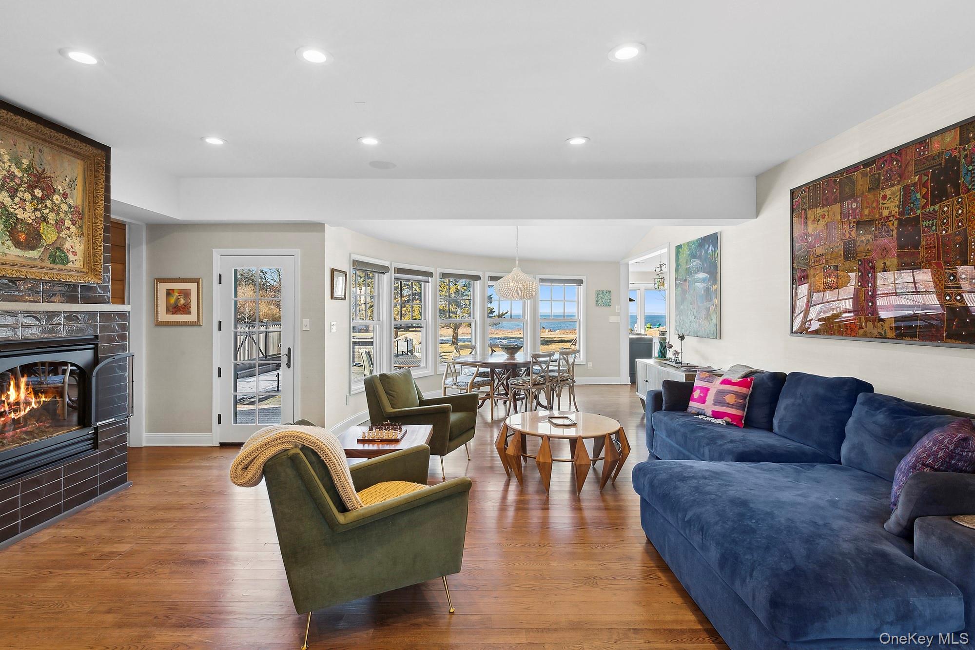 A breathtaking waterfront estate on Long Island Sound is being offered for the first time by its original owners. The coastal beauty of the North Fork stands out as one of the most sought-after and picturesque areas on the East End! Nestled on nearly 2 acres, this 4, 500 sq. ft. residence showcases exceptional views and over 200 feet of private waterfront. The spacious open floor plan features a junior primary ensuite on the first floor, complete with a separate private entrance and direct access to the backyard. The gourmet kitchen inspires culinary creativity with custom cabinetry, high-end appliances, and ample space for entertaining. Experience the joy of al fresco dining along the breezeway that leads to the inviting patio. The living room and dining room, enhanced by a central fireplace, bask in natural light. Upstairs, the primary bedroom offers a tranquil retreat, complete with a balcony and an ensuite bathroom that reveals breathtaking views. An oversized lounge, also with a balcony, effortlessly connects to the kitchen below via a private staircase, creating an ideal space for entertaining guests above. Additional bedrooms, a bathroom, and a bonus space with a terrace provide privacy and comfort for visitors. The large art studio upstairs, overlooks the outdoor custom kitchen, and dining area, stunning pool, spa, and shower inviting inspiration. The yard’s mature landscaping and expansive lawn create a welcoming atmosphere for unforgettable waterfront gatherings. This listing may include images that have been digitally altered or virtually staged. Original, unedited images are available upon request.