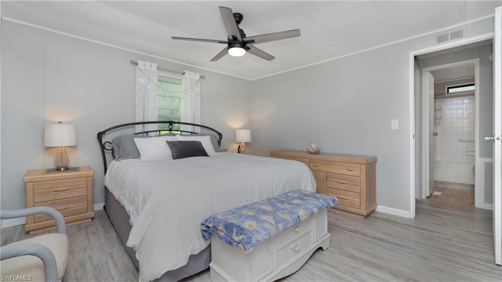 Beautifully updated home located at the end of the lane on a lovely canal providing a very peaceful setting. Enjoy two enclosed lanais, one on the front of the home and a second, more private space, overlooking the canal. This home has 2 roomy bedrooms each with large closets and 2 recently renovated bathrooms. The home boasts a beautifully updated kitchen and luxury vinyl flooring throughout. It also has newer windows and AC. The backyard is fenced and shielded from the neighbors by a hedge. The community is a fun and pet friendly 55+ neighborhood with many activities to keep you busy. There is pickleball, shuffleboard, water aerobics, game nights, as well as holiday parties and monthly brunches. They have a lovely heated community pool, a spacious clubhouse, and room for your boat or RV in the community storage lot. You own the land and the community fees are a very low $125/mth. Located just 12 miles to both downtown Naples or Marco Island, don’t wait to start enjoying your sun-soaked Florida lifestyle.