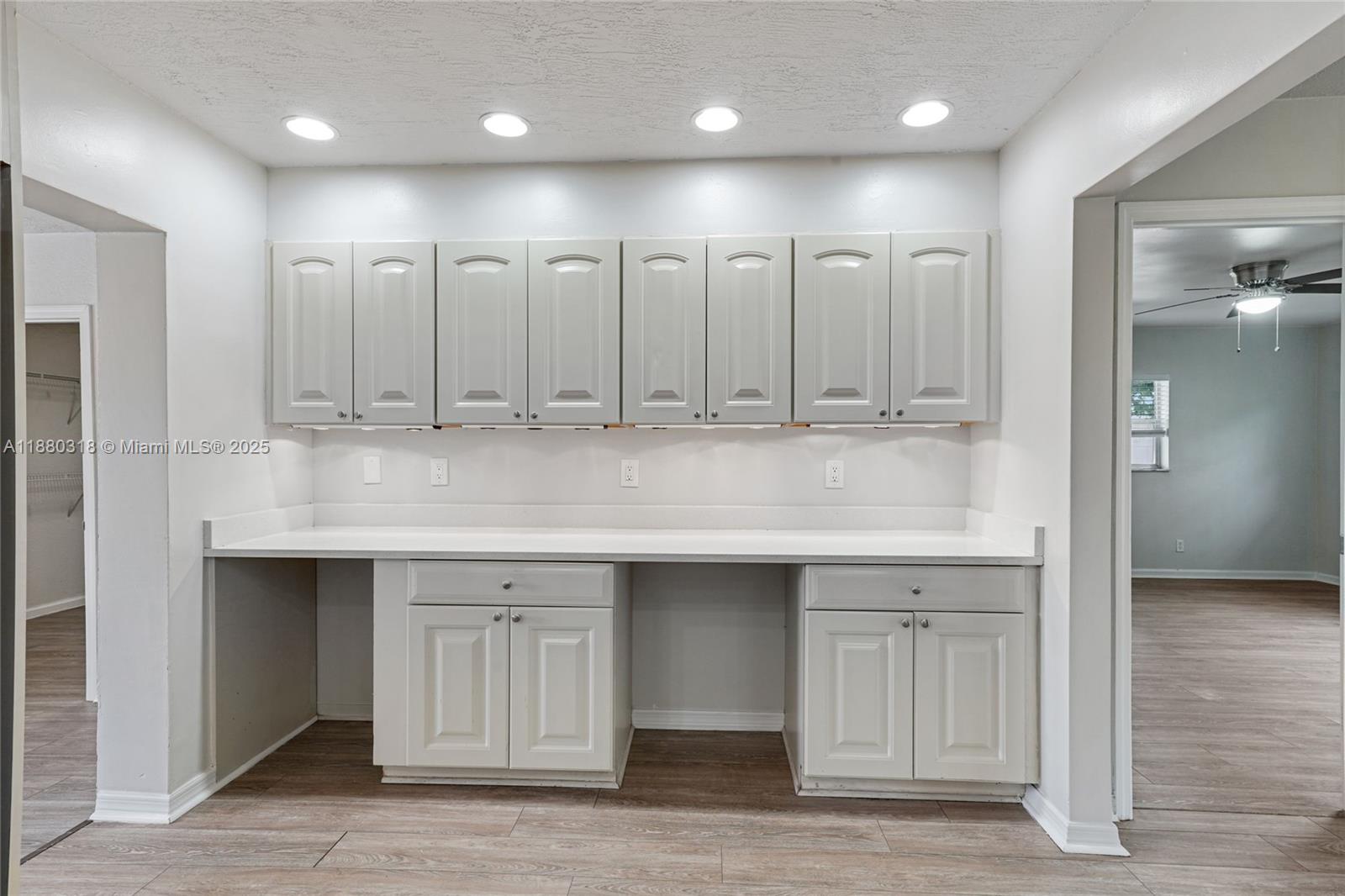 This 5-bedroom, 3-bath single-family home offers 2, 350 sq. ft. of comfortable living space. Features include recessed lighting, ceiling fans throughout, a family room, and a mix of laminate and tile floors. The open kitchen features a large cooking island with a hood, wall oven unit, abundant cabinet storage, and a layout perfect for gatherings. The home also offers a convenient cabana bath with outdoor access. Additional highlights include a utility closet and a fenced pool, ideal for relaxation and entertaining.