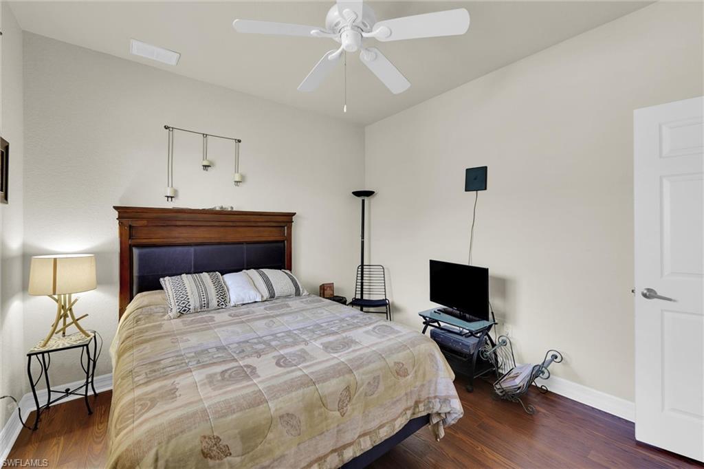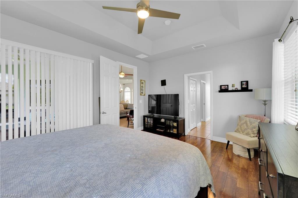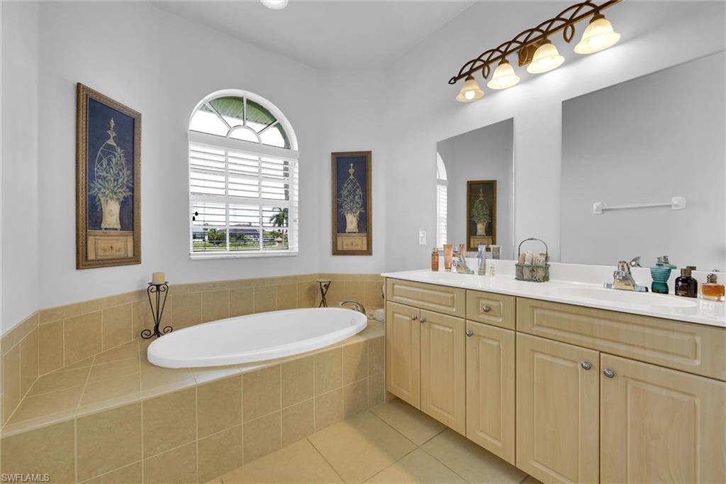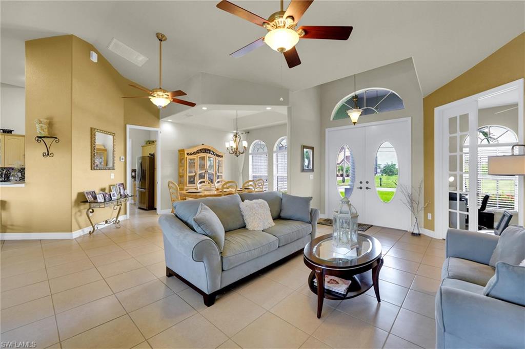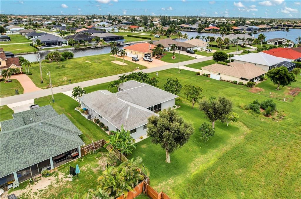 Welcome to this stunning 3-bedroom, plus den, custom-built home in Cape Coral's highly sought-after Burnt Store Road corridor, featuring 2, 096 sqft of spacious living space. The owner's suite boasts luxurious features, including high cathedral ceilings, double walk-in closets, a relaxing soaker tub, a separate shower, and a stylish dual sink vanity. The impressive open-concept living space features a modern kitchen with breakfast bar seating and spotless Corian countertops, complemented by top-grade stainless steel appliances. The home also showcases wood flooring and tile throughout, ceiling fans for optimal airflow, a separate laundry room with ample cabinets, and an enclosed lanai for relaxation and enjoying the beautiful Florida sunshine. Situated on a spacious 0. 23-acre lot with mature fruit trees, including bananas, mangos, and avocados, and extra room for a pool. Recent upgrades include a new roof (2019), A/C (2022), water heater (2022), exterior paint, irrigation system, and hurricane storm shutters. Notably, the city utilities water conversion has been completed. Located in an area with long-term demand and no HOA, this property benefits from exciting development prospects from the 7 Island project, nearby restaurants, shopping, walkable parks, boat ramps, excellent fishing spots, and access to open Gulf Coast waters. Enjoy easy access to neighboring cities like Punta Gorda and Matlacha, or take day trips to Sarasota, Tampa, and Orlando. With new infrastructure development underway and growing demand, this property presents a savvy investment opportunity for buyers looking to capitalize before prices rise. Plus, the home is available for purchase with negotiable furnishings or vacant, making it an attractive option for those seeking a seamless transition.