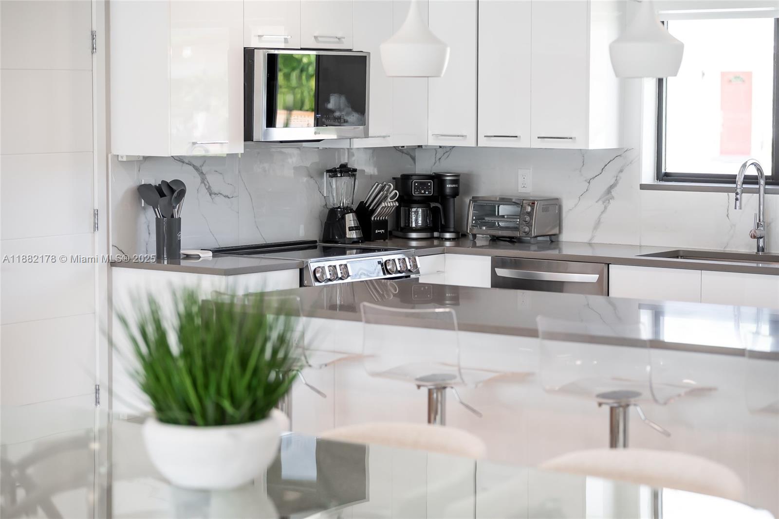 Tranquility meets modern! Waterfront stunner with views & a backyard that will make you never want to leave! Super spacious 4 bedroom, 3 bathroom residence with a game room featuring 2159 interior sq/ft plus a 1 car garage. Incredible modern kitchen with a huge serving island with barstools backed with amazing water views. Kitchen is fully equipped for all your cooking needs. Master bedroom features a king bed, large custom walk in closet, & a modern bathroom with dual sinks. The front bedroom can function as a second master bedroom with an on suite bathroom & queen bed. The third bedroom features a queen bed & the hallway bedroom features 2 twin beds. Blackout blinds in all bedrooms, outdoor gas grill, & the pool is heated. Gated community with prime location near the Aventura mall.