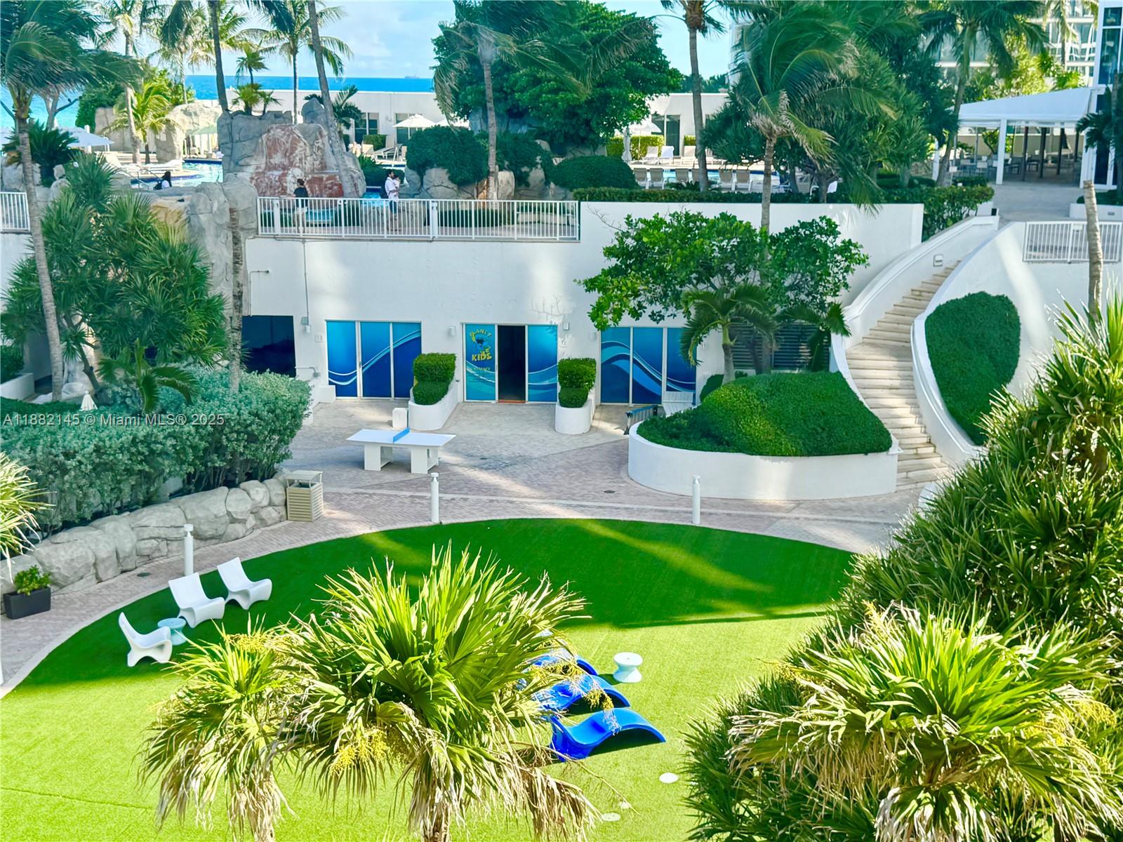 Oceanfront Trump Palace a beachfront resort in Sunny Isles Beach, 2/2. 5 offers ocean and pool view. Porcelain floor. Ocean, beach, tennis court, dog park, gated entry with a 24-hour attendant; a two-story lobby, two lagoon pools Jacuzzies, 8, 000-square-foot spa - fitness center with saunas, steam rooms, massage room, classes. Kids room, mini business center, coffee: ) Professional Concierge Service, Valet parking. Oceanfront oasis, complete with its own private and pristine beach and grotto-style pool Beach service - chairs, towels. Trump International Hotel is next door with a few restaurants. Publix, school, shops and more just across the road. Maintenance $2, 237/month.