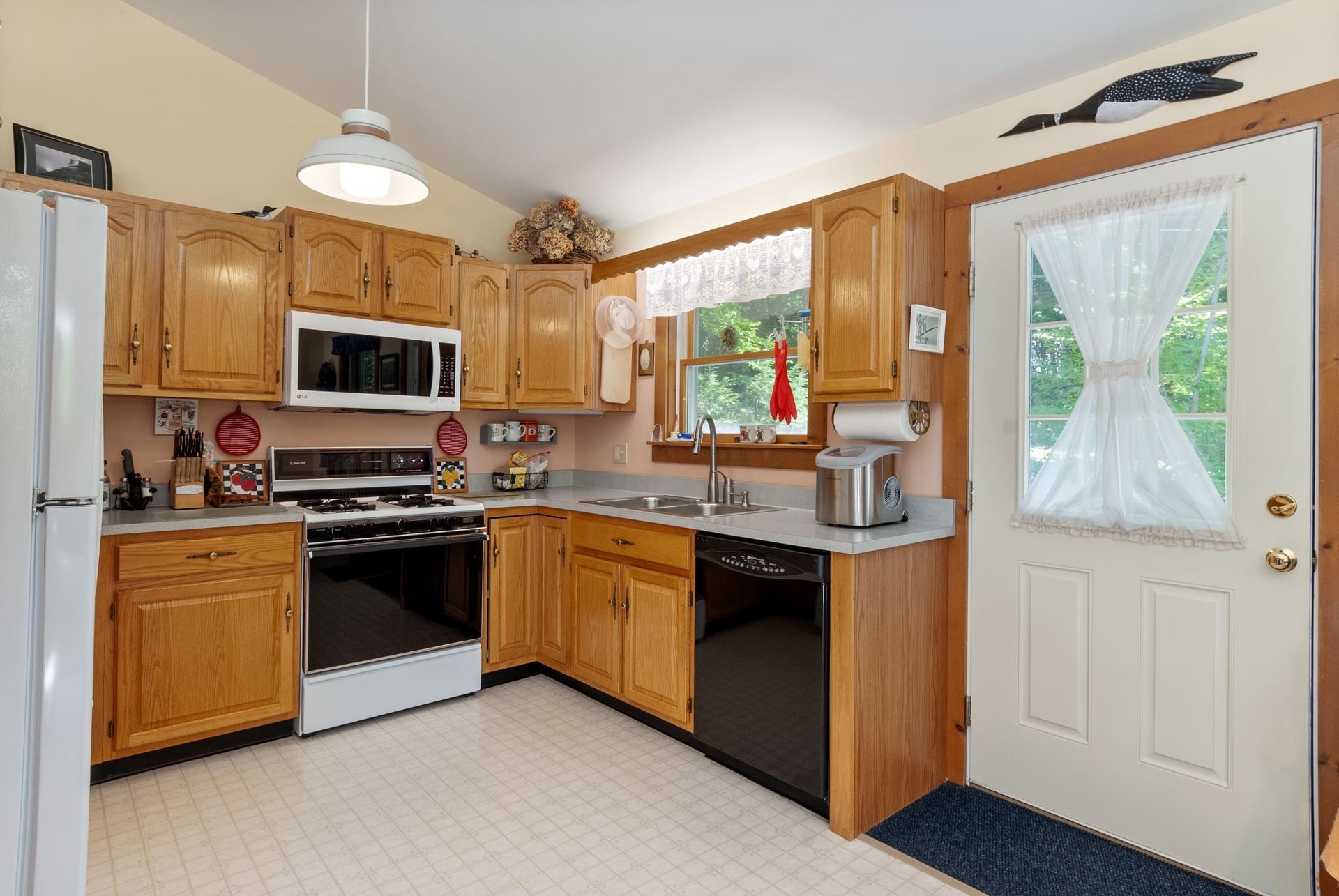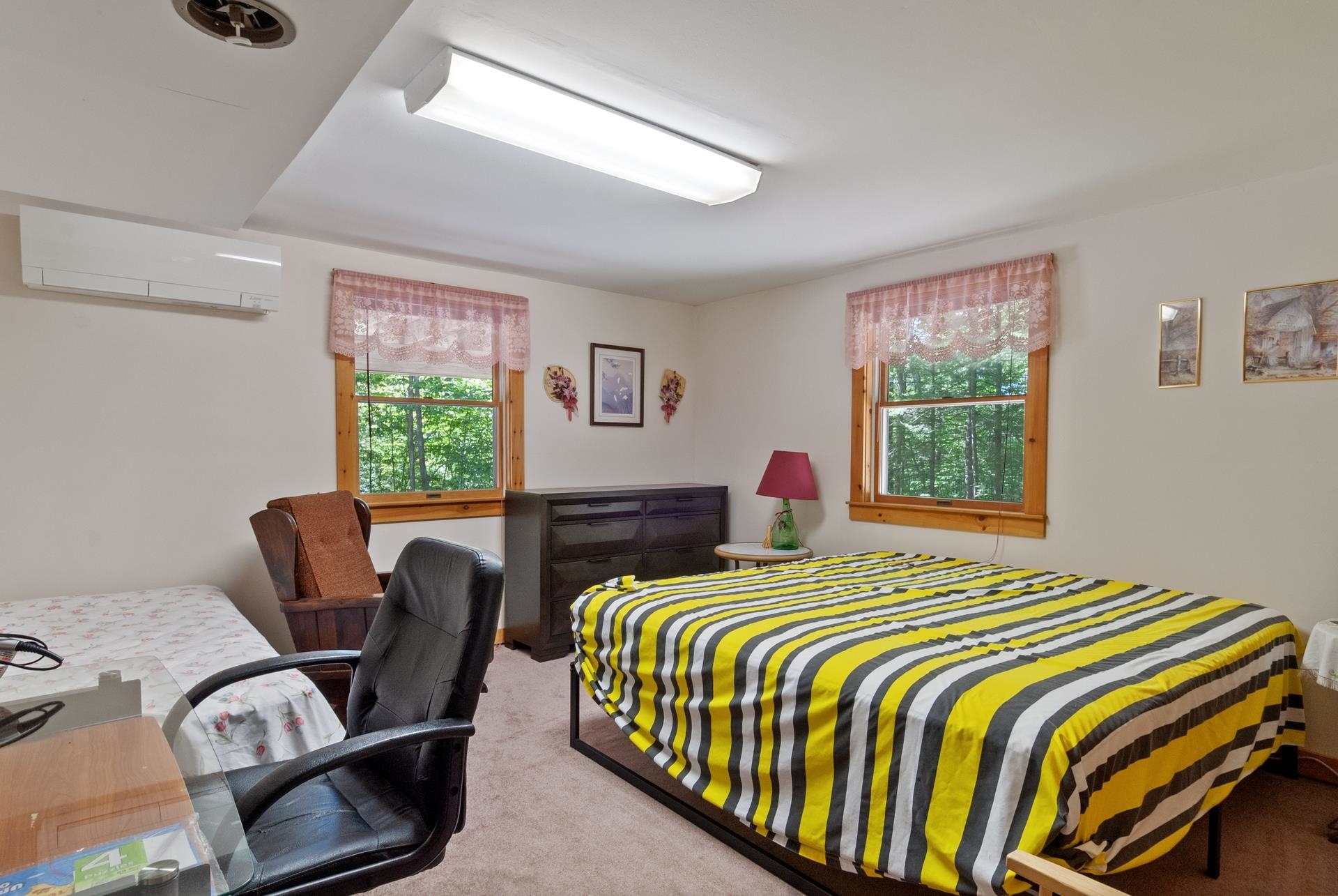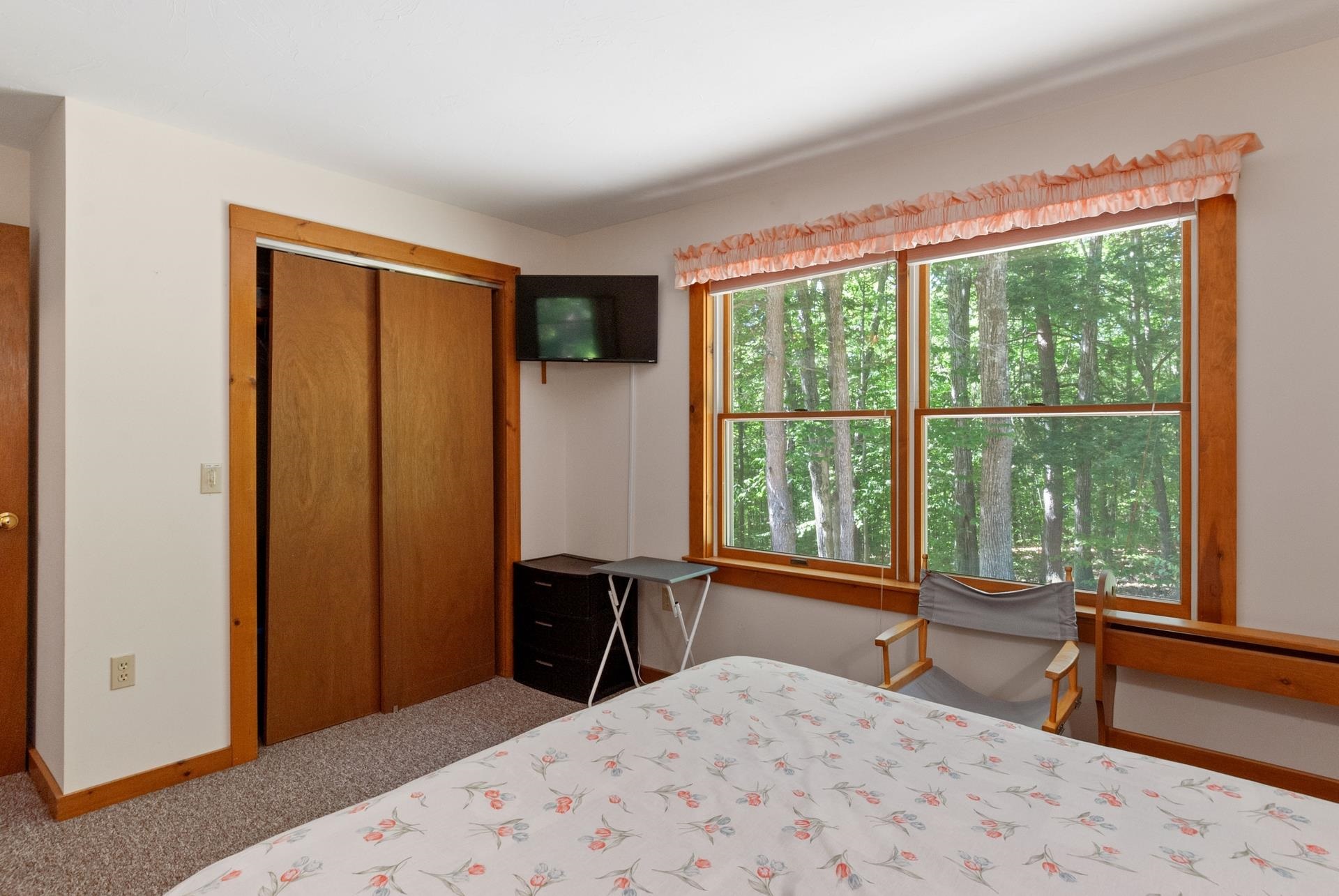 This Gunstock Acres property in Gilford, NH provides access to Lake Winnipesaukee and includes 3 bedrooms and 2 bathrooms. The home features a large deck, mini split heating and air conditioning systems, expansive windows, a wood stove, and a garage for storage suited to year-round recreational activities. The residence borders acres of conservation land, which provides privacy and a scenic environment. Residents have access to Gunstock Acres amenities such as a sandy beach with bathroom and changing facilities, a sunning dock, a 42-mooring field (with a waiting list) including a loading/unloading dock, dinghy and kayak storage racks, a picnic area with tables and charcoal grills, as well as tennis courts, a basketball court. Additional access is available to the Gilford Town Beach and attractions in the Lakes Region, including opportunities for skiing, hiking, boating, restaurants, and shopping. This water-access property supports participation in the recreational activities available in Gilford and the surrounding Lakes Region. Four Seasons of Fun !!!
