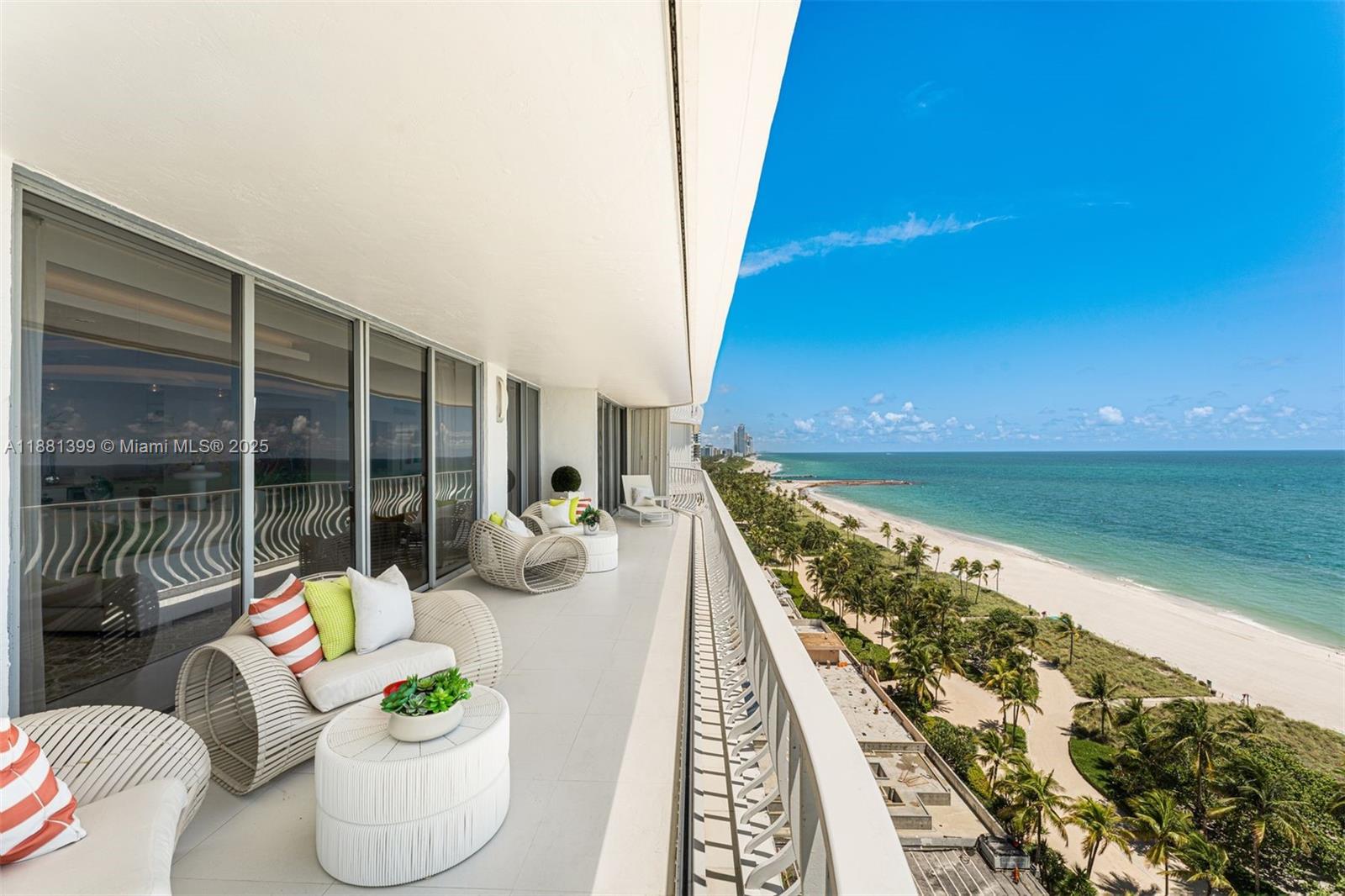 Elevated on the fourteenth floor of Bal Harbour 101, this southeast corner residence presents commanding views of the ocean. The open layout, deliberately curated for living and dining, features walls of glass and a private terrace suitable for leisure. The kitchen is a gourmet affair with premium appliances. The generous primary suite offers dual walk-in closets and a spa-like bath. The building provides the usual full-service amenities, concierge, a pool with cabanas, tennis, and a fitness center, with direct beach access. Located in Bal Harbour, it offers immediate access to the shopping, dining, and exclusive lifestyle to which one can become accustomed to.