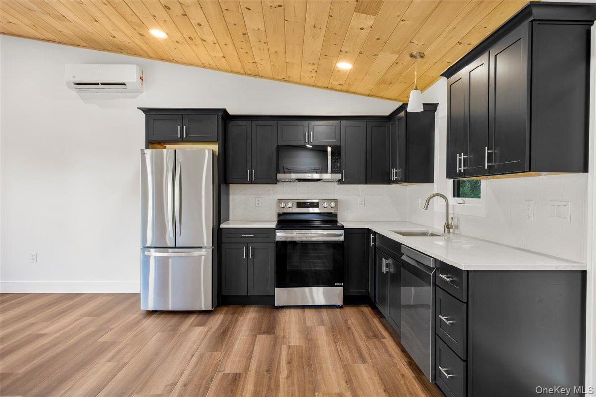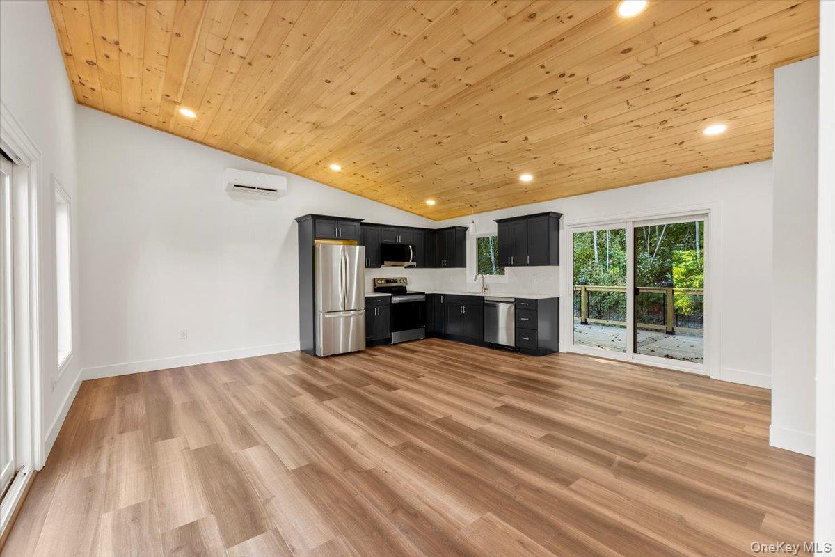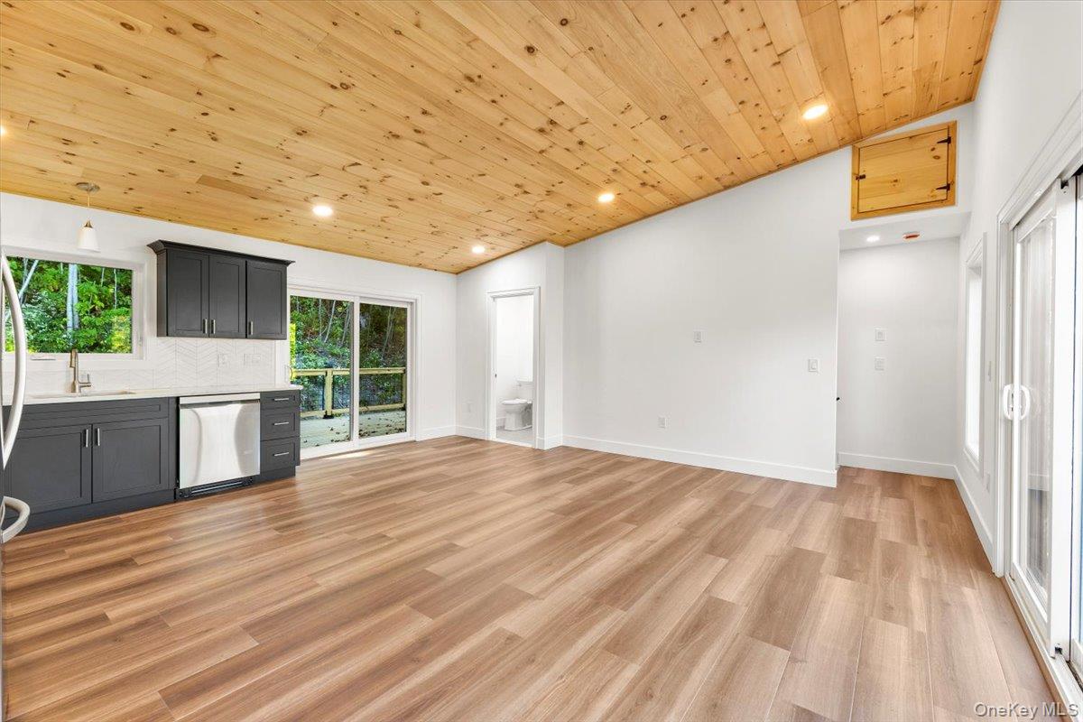 Perched along a quiet country road, this completely renovated contemporary home offers a unique layout that blends comfort, privacy, and stunning Hudson Valley surroundings. The main living area, located on the second floor, features an open-concept design with kitchen, dining, and living spaces flowing together seamlessly. A half bath adds convenience, while sliding doors lead to a spacious back deck that feels worlds away—secluded in nature and perfect for outdoor dining or relaxing. At the front of the home, a balcony captures peaceful country views. On the first floor, you'll find the private en suite bedroom retreat, complete with a tiled walk-in shower and full bath. The finished walkout basement is where you'll find the 2nd bedroom and could also be used a studio, office, gym, or guest area. This level also includes a half bath, laundry, and mechanicals, making it as functional as it is versatile. All of this is just minutes to the Village of Catskill, Hudson River waterfront, and an easy drive to Hudson, Saugerties, and Woodstock—offering endless options for dining, shopping, art, and outdoor recreation in the Catskills. Whether for full-time living or a weekend escape, 711 Vedder Mountain Road delivers a perfect balance of contemporary style and Hudson Valley tranquility.