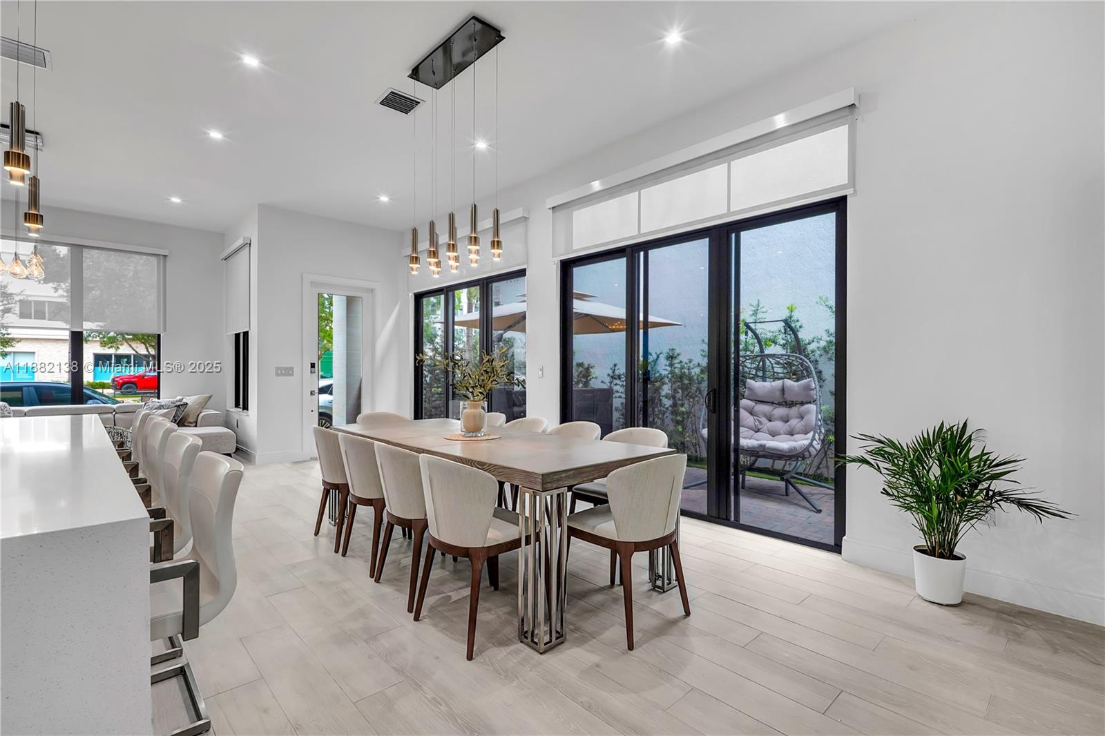Experience luxury living in the heart of Downtown Doral with this stunning residence featuring 3 spacious bedrooms, each with its own en-suite bathroom, plus an elegant guest powder room. The open-concept living and dining area seamlessly connects to a designer kitchen, complete with top-of-the-line built-in appliances that blend perfectly with the modern cabinetry. Floor-to-ceiling windows with automated blinds fill the home with natural light, highlighting the sleek minimalist finishes throughout. Step outside to a private boutique-style patio, ideal for entertaining or relaxing in style. A rare opportunity to own a contemporary home that combines elegance, comfort, and sophistication in one of Miami’s most sought-after communities.