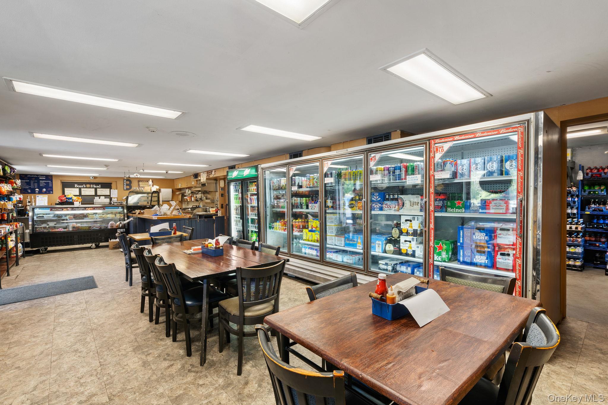 Here’s your chance to own a thriving deli and convenience store that locals know and love, along with the building and an income-producing apartment — all in one unbeatable package! Perfectly positioned on heavily traveled Burlingham Road, less than one mile to Route 52 and under 10 minutes to the Hamlet of Pine Bush, this property offers excellent exposure and nonstop traffic. The building makes a statement with its covered porch, and clear roadside signage, while the inside is set up for success. The deli features a spacious customer area with multiple dining tables for eat-in service, a full line of glass-door coolers, display cases, and food prep stations, and ample shelving for grocery and convenience items. Behind the scenes, the property is equipped with a fully functional kitchen, complete with stainless steel prep tables, a gas range with overhead hood, deep stainless sinks, double refrigerators, and extensive shelving and storage for dry goods and supplies. This area is designed to handle daily food prep with ease, making it ideal for deli operations or expansion into catering and events. A walk-in cooler, freezers, and additional storage provide even more support, and there is also a dedicated office space for management, as well as a bathroom conveniently located off the storage area. Additionally featuring a whole building generator powered by propane, great for those unexpected power outages. Generator feeds the deli and upstairs apartment without any stress. Above the business, the one-bedroom apartment offers its own private exterior entrance and deck, along with hardwood floors and a kitchen/dining area combo, providing comfortable living quarters and steady rental income with room to increase. The property spans 1. 8 acres, including a large paved lot with parking for 25+ vehicles, an open field, picnic/entertaining area perfect for events, and a separate one-car garage for storage. With its warm, welcoming atmosphere, proven community reputation, and multiple income streams, this is a turn-key investment package with endless potential for an owner-operator or investor ready to grow, expand, or simply enjoy the returns.