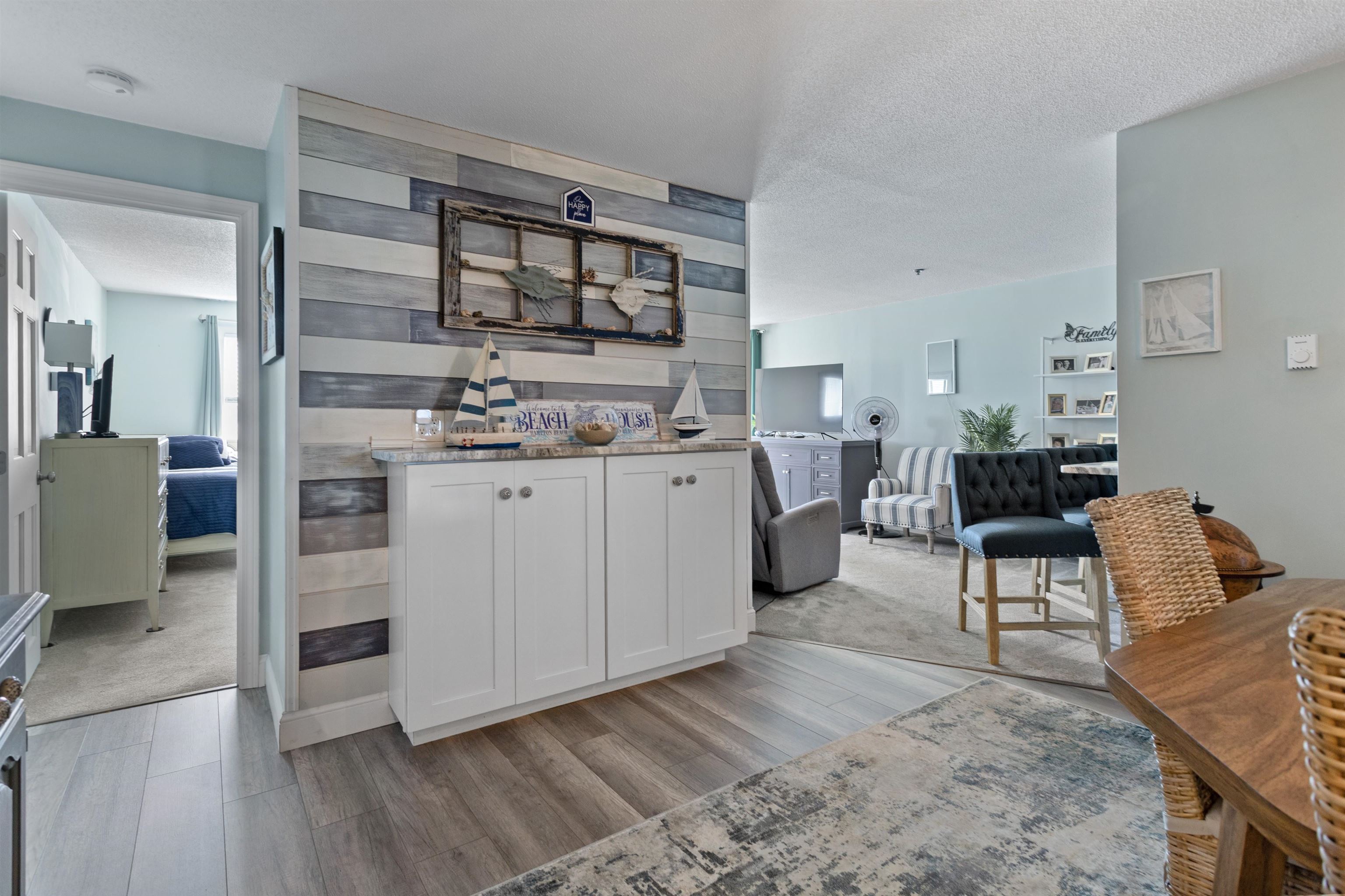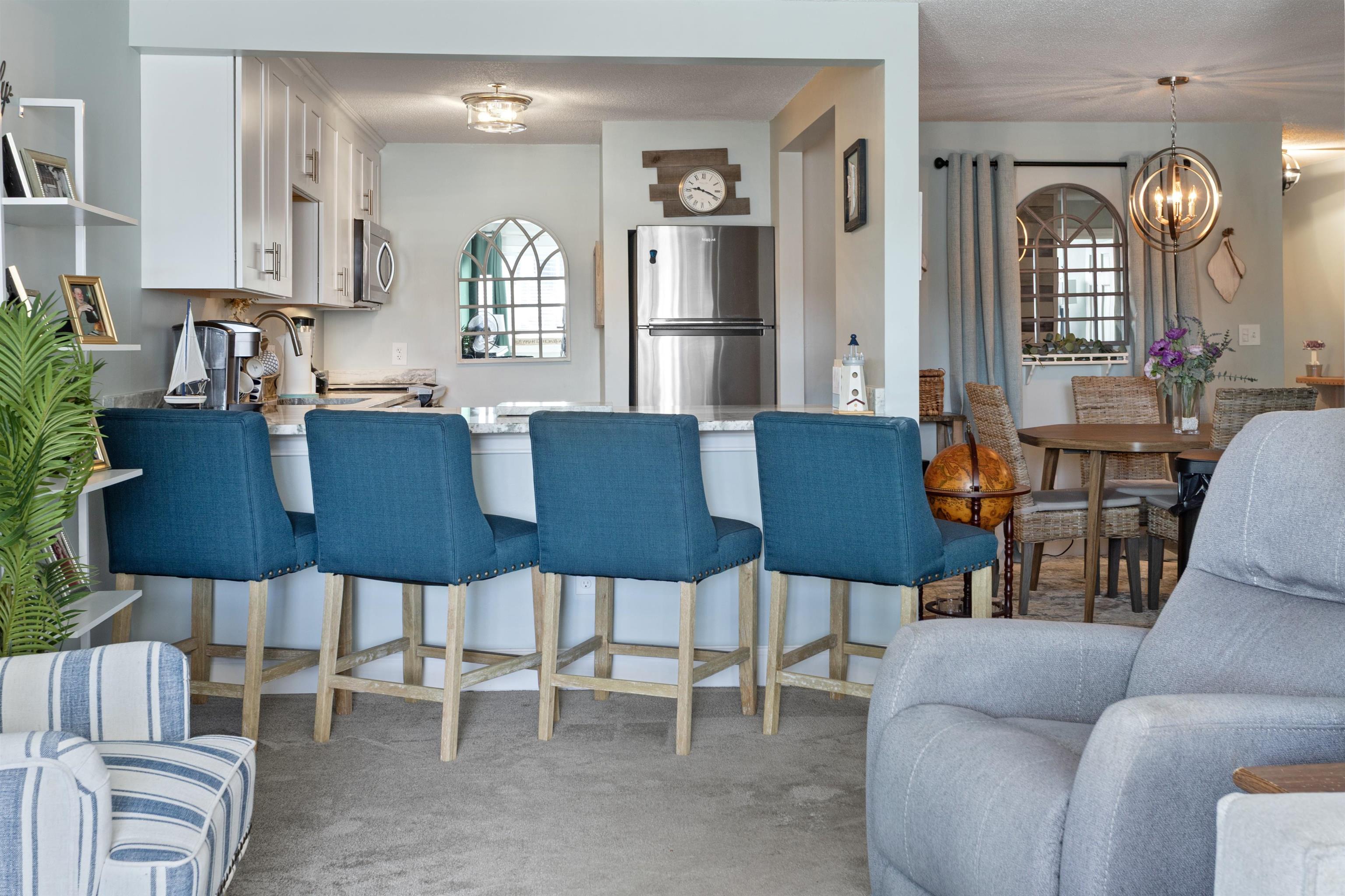 Here is your opportunity to purchase this fully furnished, turn-key, one level condominium with ocean views and located directly opposite from the ocean and beach. Recent building rehab features all new balconys, railings, roof, front entry and updated thermopane windows, sliders and air conditioning units (3). This like new home has one of the largest floorplans in the building with a VERY rare third bedroom or den feature. Primary suite with updated custom vanity with marble top. Guest hall full bath with new vanity. Stunning, epicurean-inspired custom kitchen with newer stainless steel appliances, granite counters and a breakfast bar for four. Formal dining area and over-sized living room. Rare condominium with heated inground salt water pool, separate bicycle room, assigned storage and a common party room with bath and kitchenette. This all one level home is accessed by an elevator to all levels and features two deeded parking spaces. Common porches (4) make viewing fireworks easy and allows you to take in the views. This property has never been in better condition and is in move-in condition. Weekly rentals are allowed at this association. This is a NO PET association.