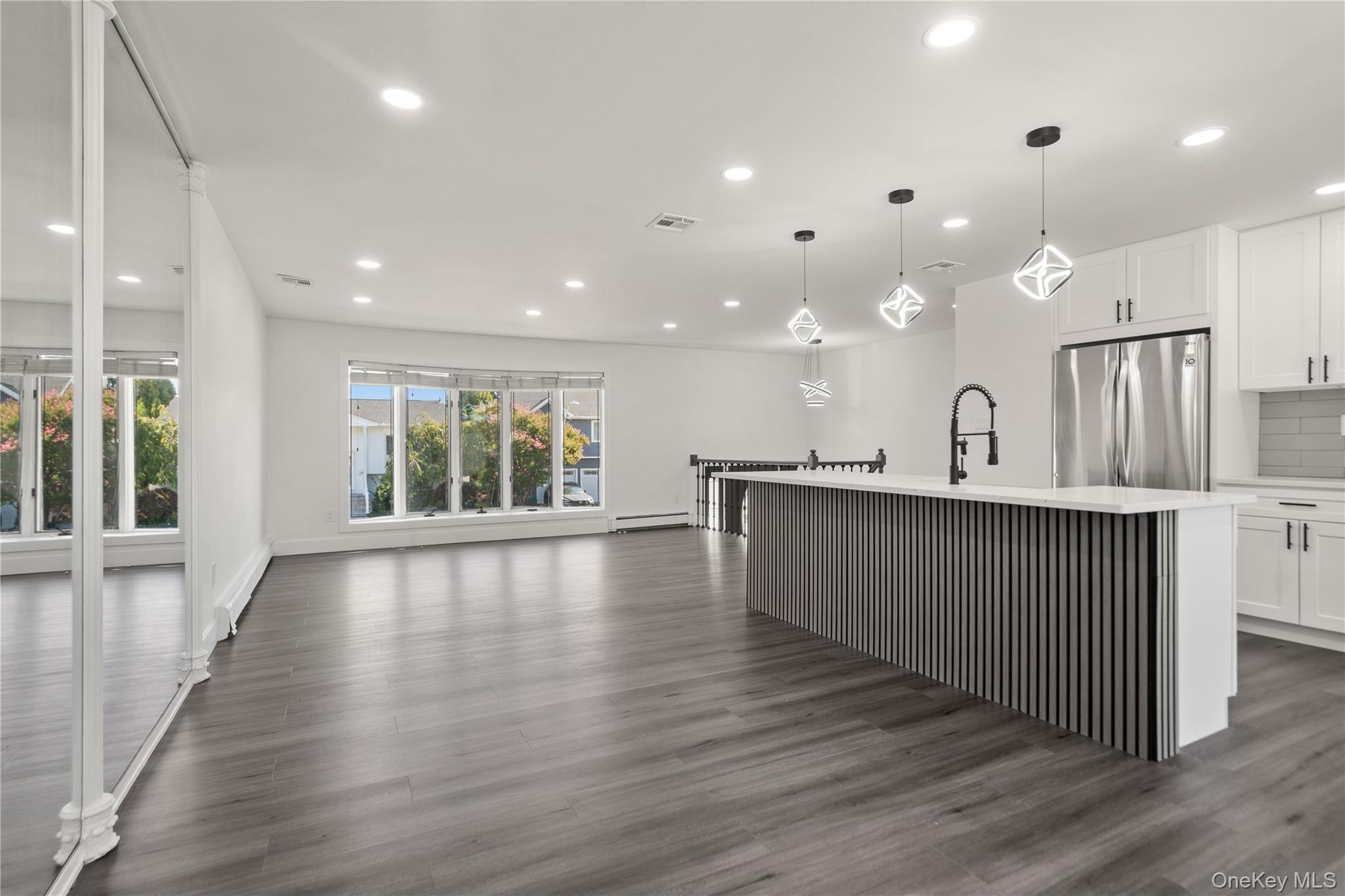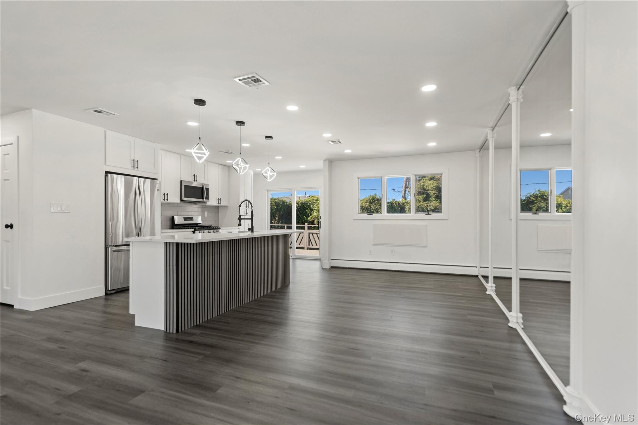 Welcome to this move in ready renovated High Ranch in a desirable neighborhood. Featuring 4 bedrooms and 3 full baths, this home offers an open concept living, dining area, and an eat in kitchen with quartz countertops, new cabinets, and stainless steel appliances with access to the deck. Upper Level includes two bedrooms plus a primary suite with walk-in closet and spa like bath with rainfall and handheld shower. Lower level features a bedroom, family room, office, laundry hookups, and a one car garage & access to the backyard. Additional upgrades include a tankless water heater. Book your showing today!